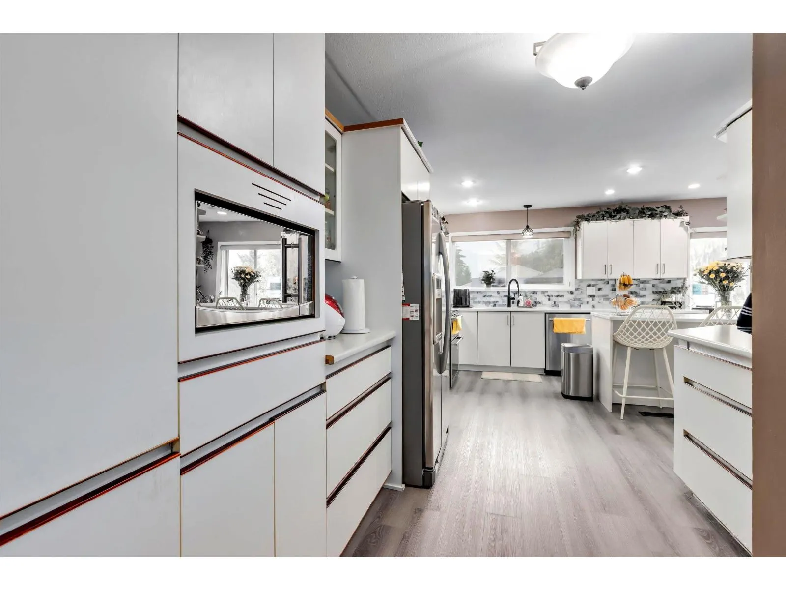 Spacious 7 bedroom, 3 bathroom family home offering approx. 3,000 sq. ft. of flexible living space in a quiet, family friendly Surrey neighbourhood. Ideal for large or multi generational households, the home is within walking distance to parks, schools, shopping and transit, including Bear Creek Park and Green Timbers. Features include a large private fenced yard, abundant parking, and attached and detached garages. Split entry design with bright upper level living room with fireplace, dining area, kitchen with island and balcony access. Lower level includes additional bedrooms, den, second kitchen, living area, laundry, and garage access. Minimum 1 year lease. One pet may be considered. No smoking. Renters insurance required. (id:27476)