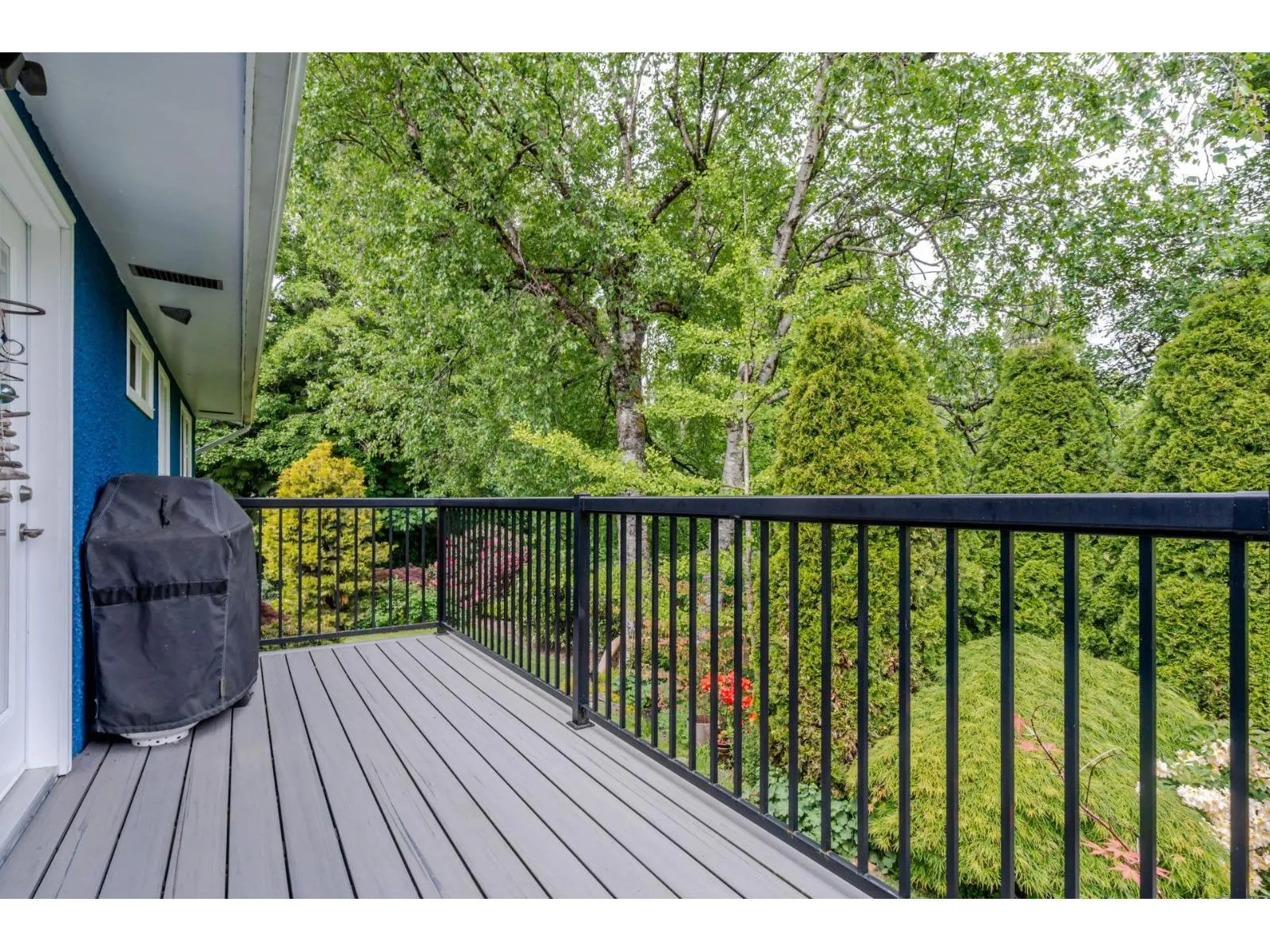 Charming, Updated Family Home Backing onto Greenbelt in Royal Heights Welcome to 9756 Crown Crescent, a beautifully maintained home on a quiet cul-de-sac in Surrey's desirable Royal Heights neighbourhood. Backing onto a peaceful greenbelt, this property features a mature garden cultivated for over 35 years, ideal for relaxing or entertaining. Conveniently located with easy access to Highway 17, transit, parks, schools, and shopping. This spacious 4-bedroom, 3-bathroom home offers 2,143 sq. ft. of bright living space with an open-concept main floor, modern kitchen with KitchenAid appliances, hardwood floors, gas fireplaces, and renovated bathrooms. Enjoy year-round outdoor living on the brand-new two-level Trex deck and covered patio overlooking lush greenery. (id:27476)