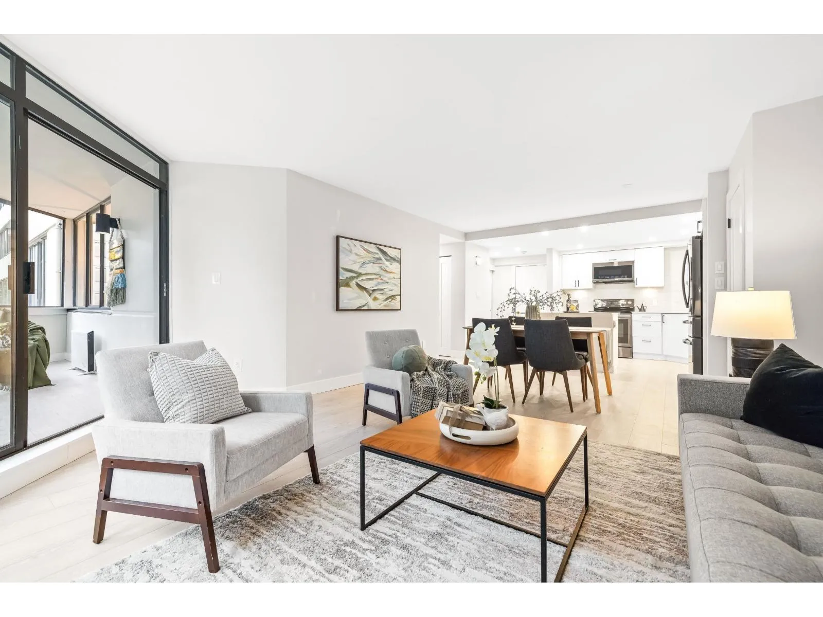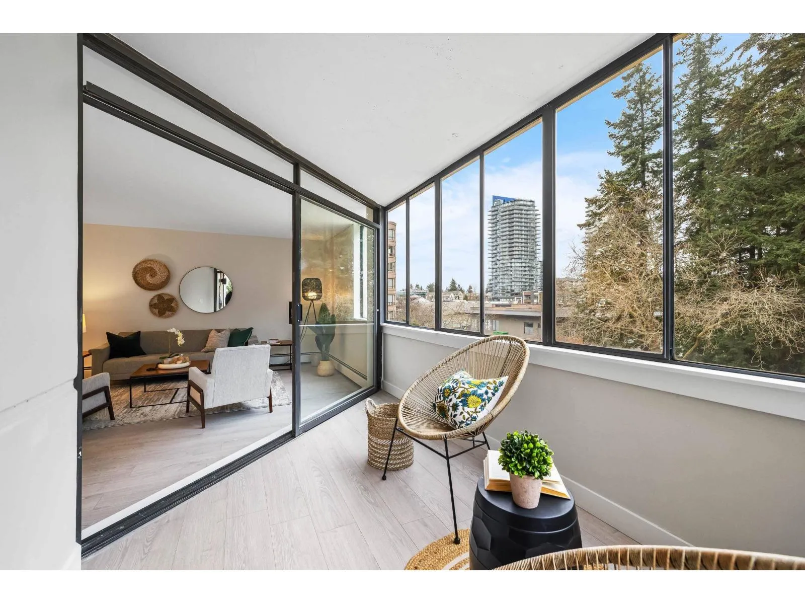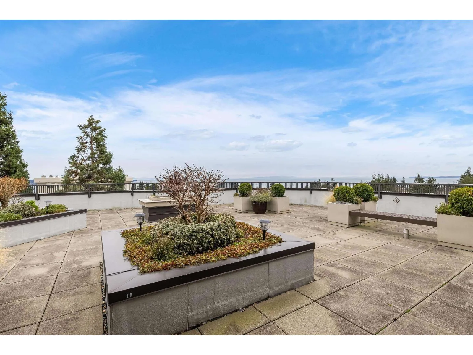Welcome to White Rock Square! This beautifully renovated 1-bed, 1-bath condo offers 940+ sq. ft. of stylish, modern living space in the heart of downtown White Rock! The spacious primary bedroom boasts a luxurious ensuite, while the custom kitchen features a sit-up bar and full pantry. Relax and enjoy your bright solarium with serene treed views of Bryant Park. Incredible amenities include a rooftop patio with breathtaking ocean and Gulf Island vistas, a fireside lounge, billiards room, and sauna. Keep your car at home - steps from shopping, dining, entertainment, transit, and the local farmers' market. Everything you need is within easy reach. No age restrictions. Strata fees cover heat and hot water. Includes 1 secure parking spot + storage locker. Sorry, no pets. (id:27476)