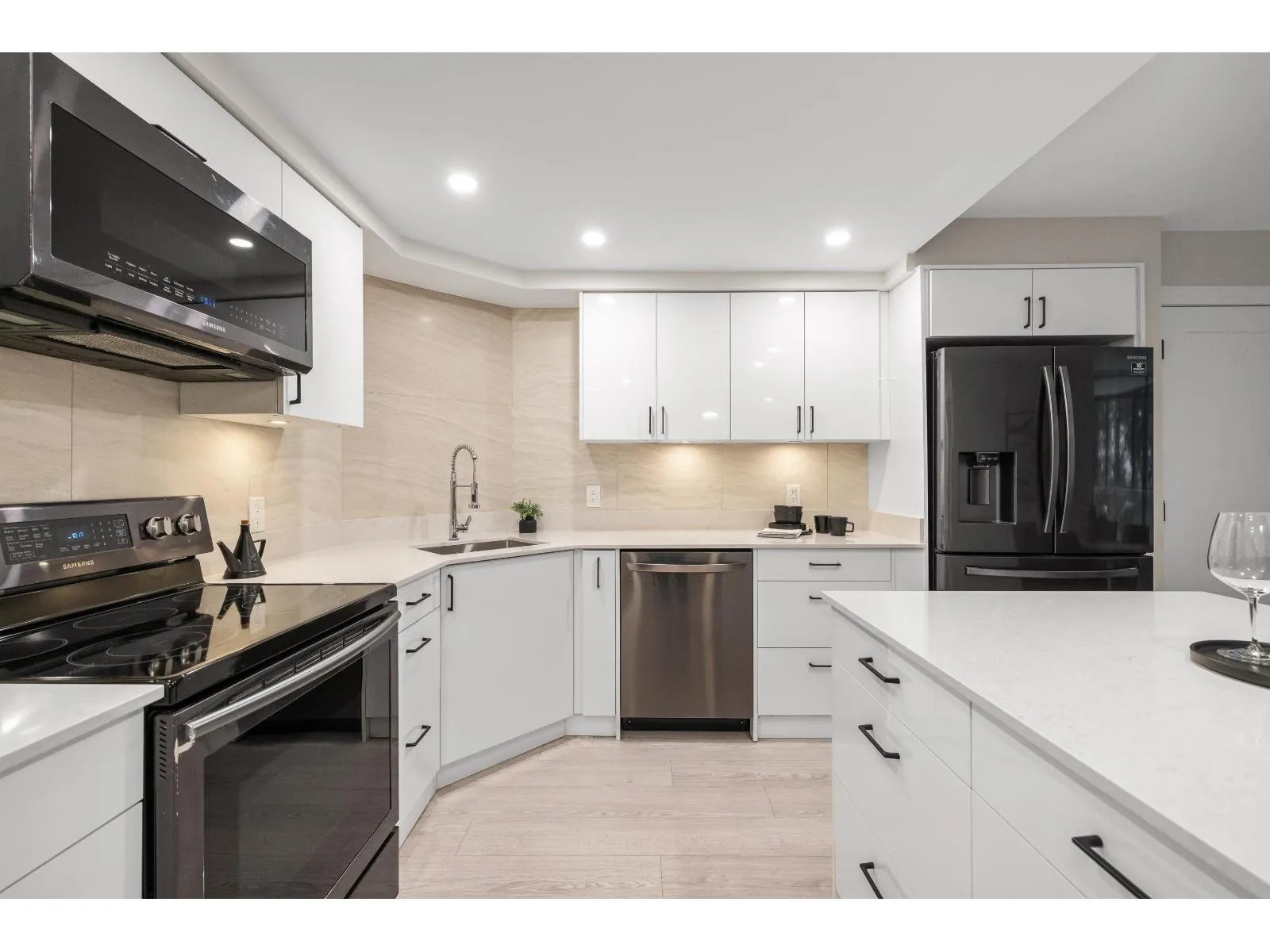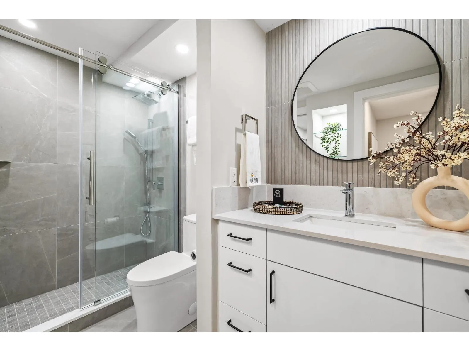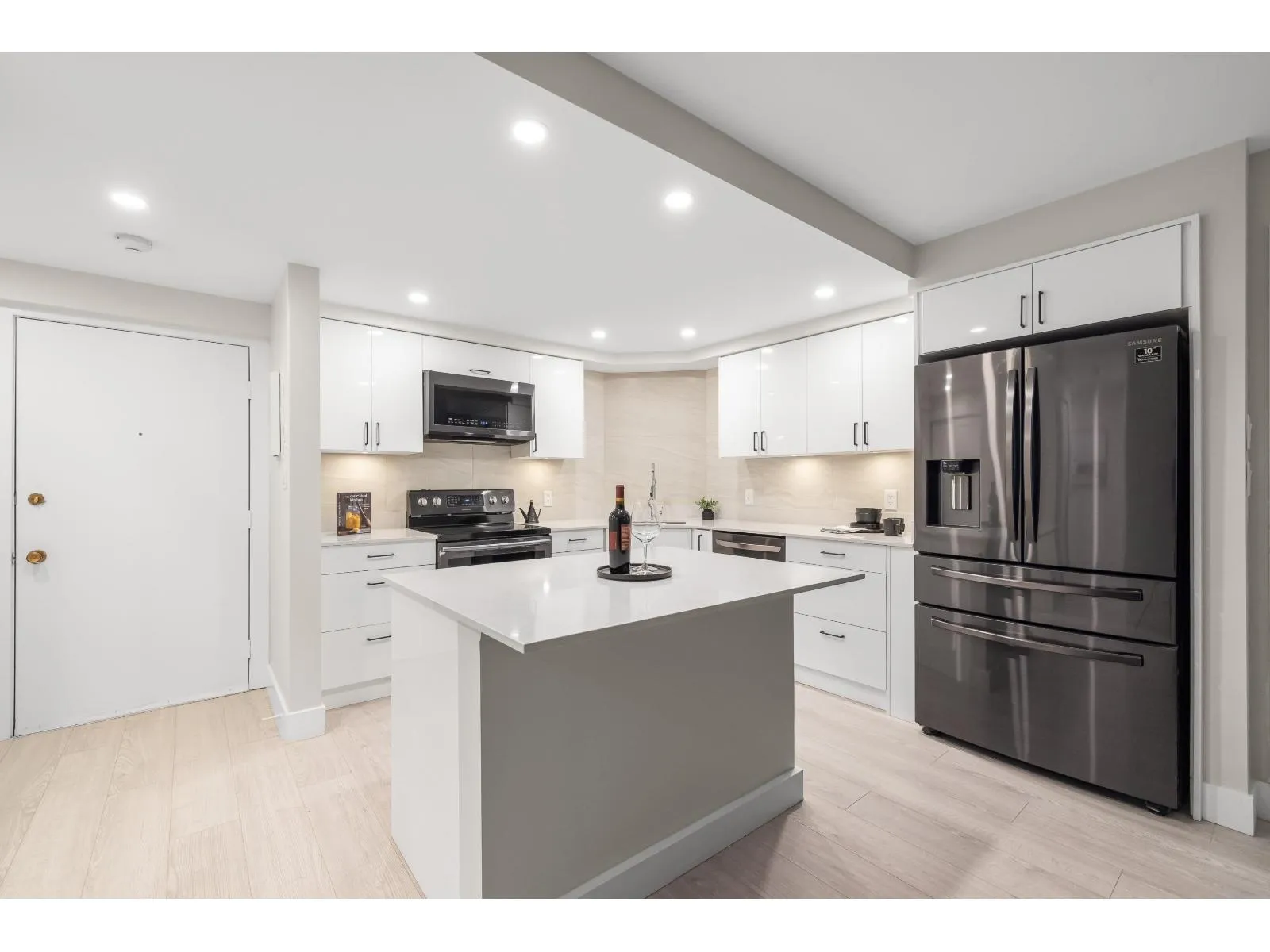 Welcome to White Rock Square! This beautifully renovated 1-bed, 1-bath condo offers 940+ sq. ft. of stylish, modern living space in the heart of downtown White Rock! The spacious primary bedroom boasts a luxurious ensuite, while the custom kitchen features a sit-up bar and full pantry. Relax and enjoy your bright solarium with serene treed views of Bryant Park. Incredible amenities include a rooftop patio with breathtaking ocean and Gulf Island vistas, a fireside lounge, billiards room, and sauna. Keep your car at home - steps from shopping, dining, entertainment, transit, and the local farmers' market. Everything you need is within easy reach. No age restrictions. Strata fees cover heat and hot water. Includes 1 secure parking spot + storage locker. Sorry, no pets. (id:27476)