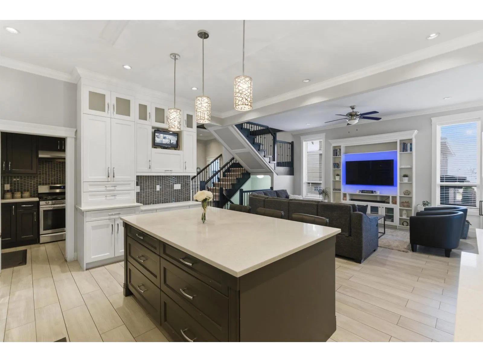 Beautiful family home located in excellent location. The upper floor features (4) bedrooms & (3) full bathrooms. Main floor also has a bedroom with full bathroom, perfect for guests or extended family. The main level showcases high ceilings, a bright living room with gas fireplace, formal dining area, and a chef-inspired kitchen with granite countertops, large island, premium stainless steel appliances, and a separate spice kitchen. The basement offers a 2-bedroom suite plus an additional bedroom with full bathroom and laundry for rental income. Prime location close to schools, transit, shopping, and major routes. A must-see home. (id:27476)