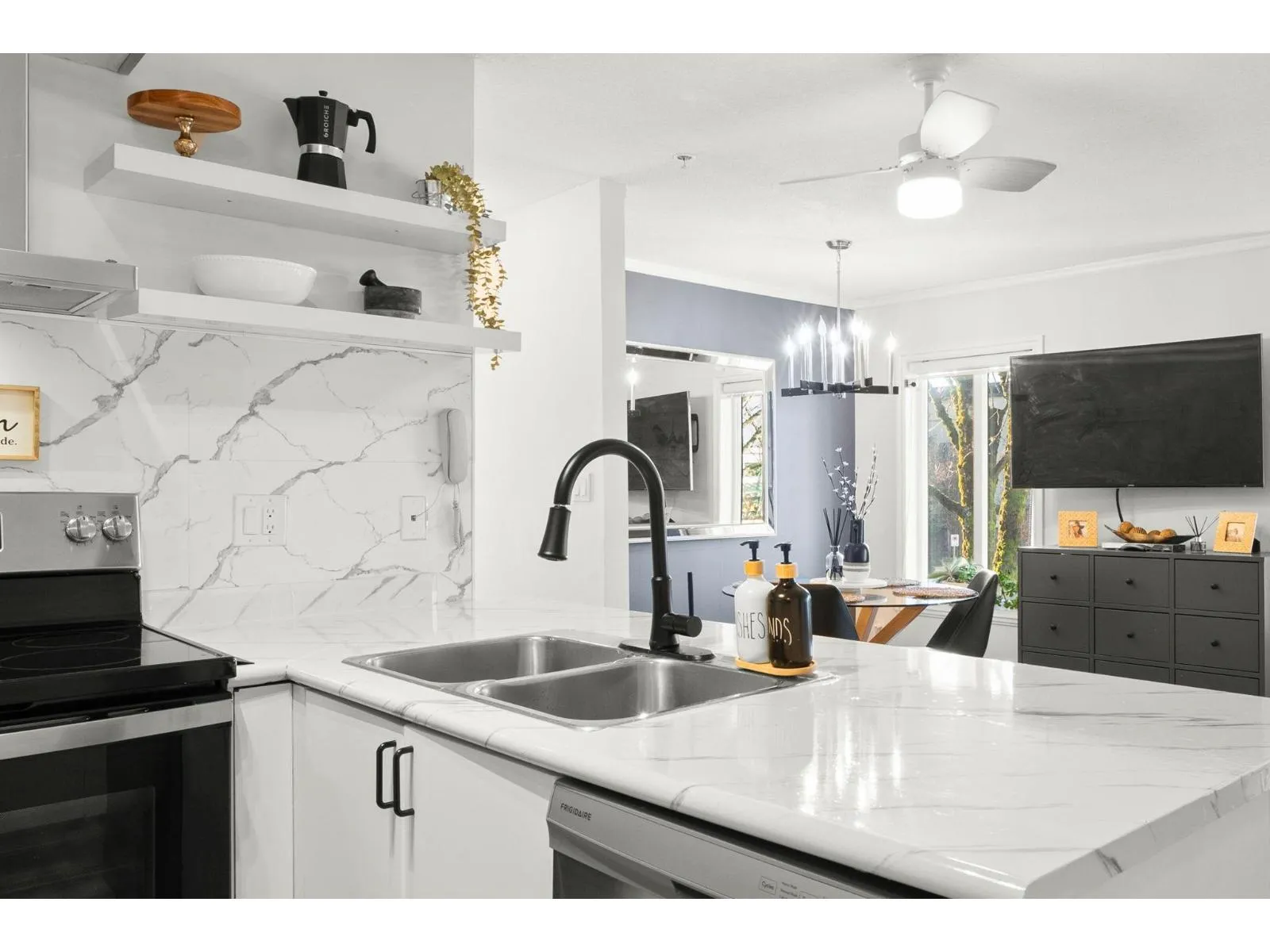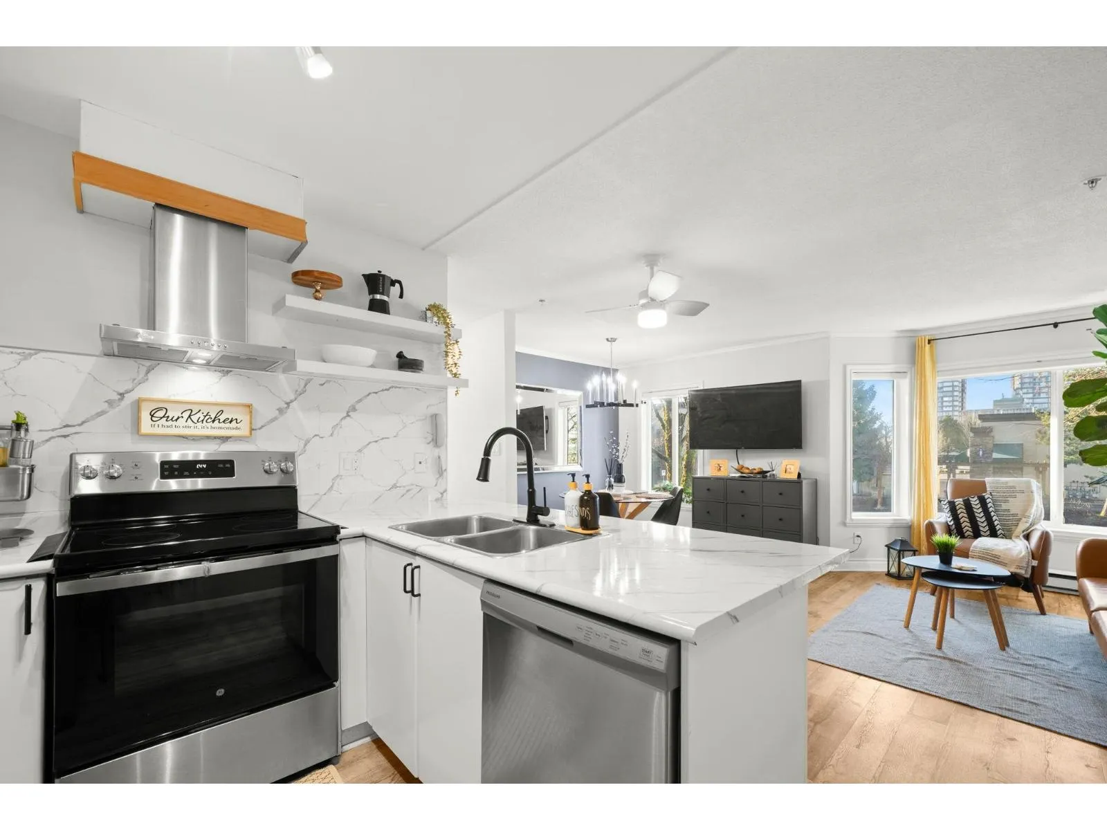 Welcome to the centrally located & well-maintained La Costa Green community! This tastefully updated, bright end/corner unit offers excellent convenience with Superstore, Fruiticana, Tim Hortons & The Keg all within walking distance. Bonus: bus stop 1 block away with direct access to Scott Rd SkyTrain in 5-10 minutes. Features include a spacious living room, a generous dining area with large windows, and an open-concept kitchen. Long foyer provides a convenient space to sit and remove shoes. Quiet corner location backing onto the courtyard with a good-sized patio off the 12' x 11' primary bedroom. Don't miss this well located, move in ready home (id:27476)
