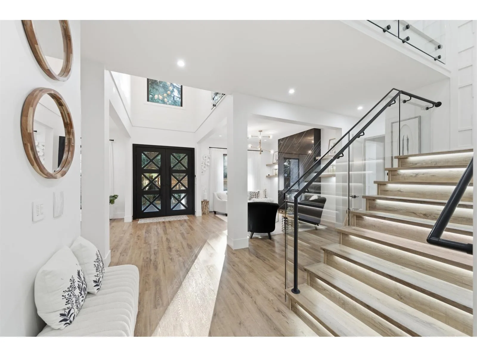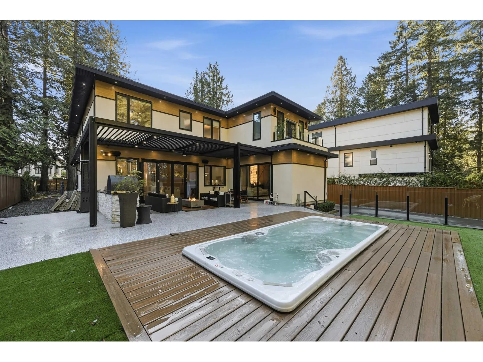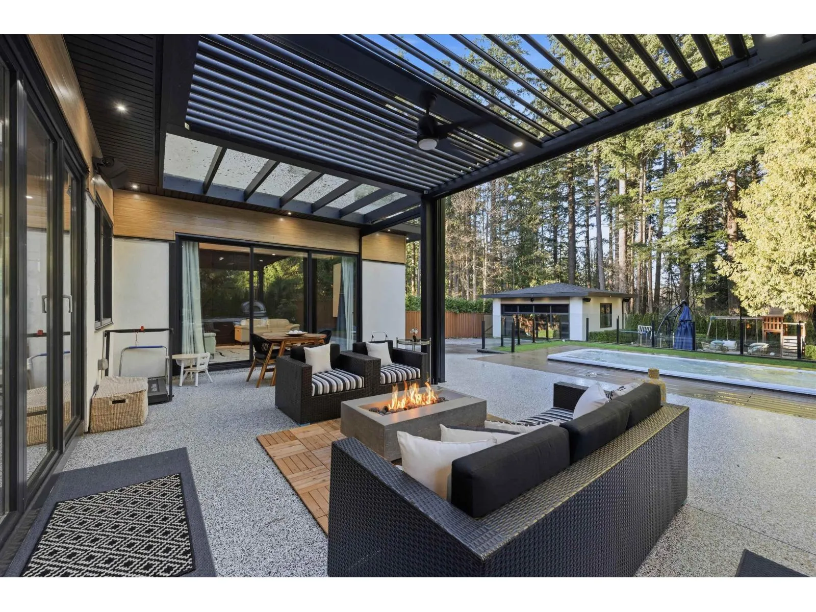 GATED ELGIN MASTERPIECE | BACKS TO CRESCENT PARK. This custom, like-new luxury estate offers ultimate privacy in one of South Surrey's most desirable pockets. Built for entertaining, the main level features a private theatre, bar, and chef's kitchen + spice kitchen with pro appliances. Enjoy true 365-day outdoor living with powered screens and a StruXure automated louvered patio, complete with a swim spa, pizza oven, and 2 gas fireplaces. Fully gated with smart-home automation and a backup generator. Upstairs includes a stunning primary suite with balcony & dream W/I closet, plus 3 large bedrooms with W/I closets and a built-in flex/workstation area with cabinetry . Main-floor guest ensuite. Steps to top schools and beach trails. (id:27476)