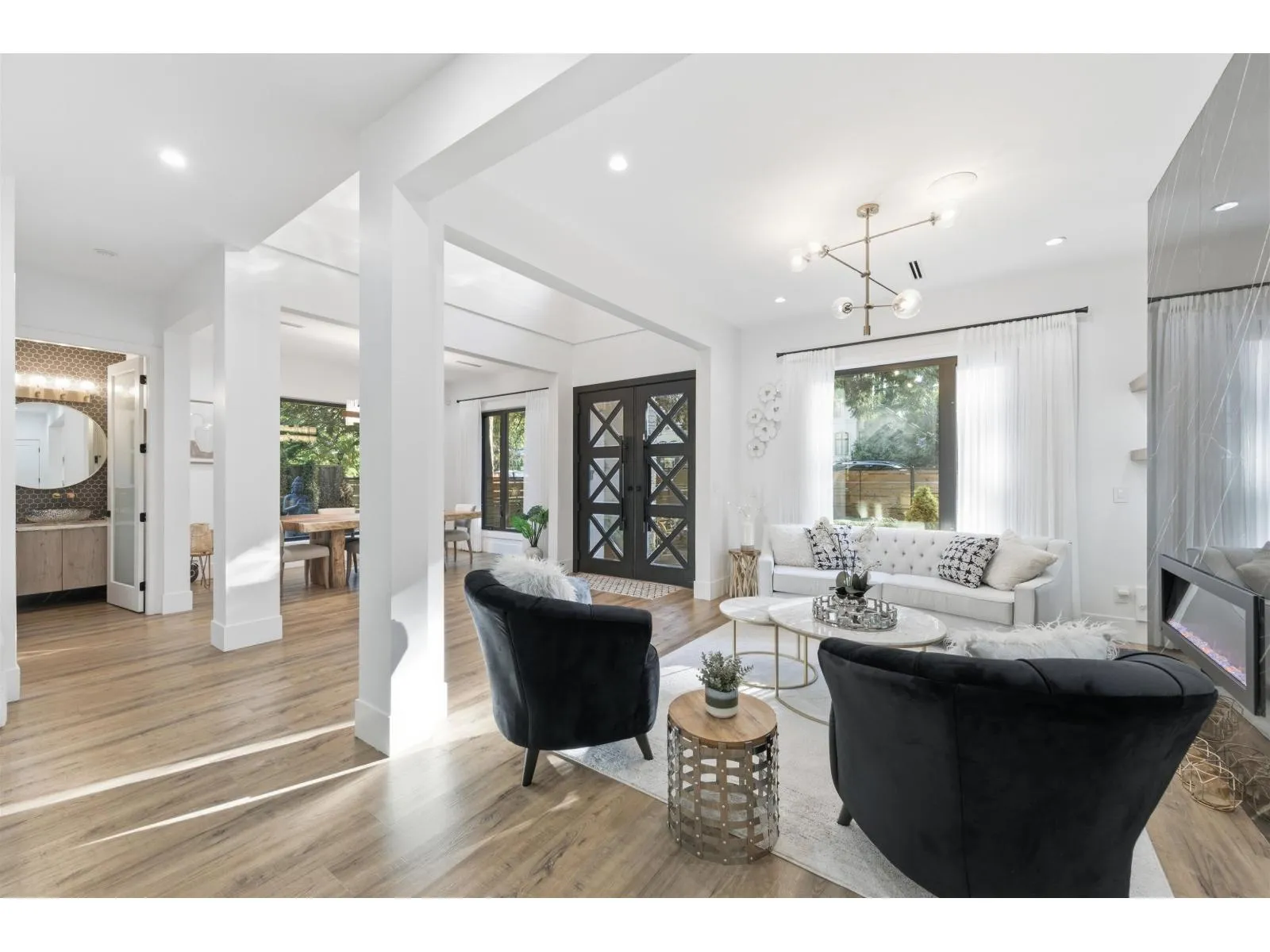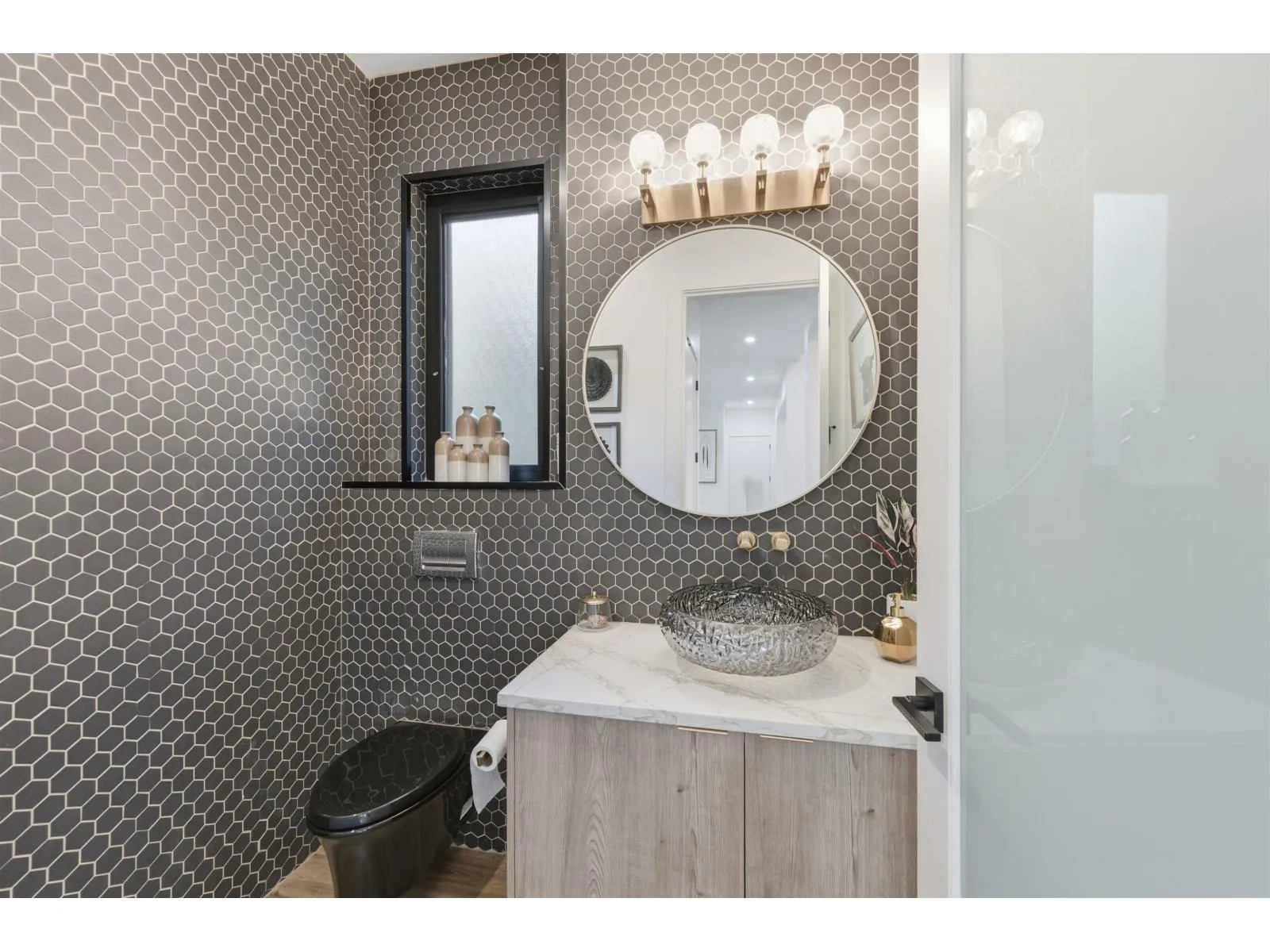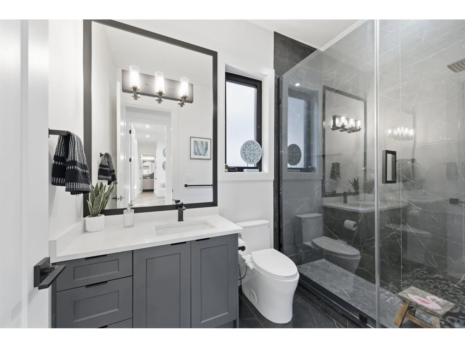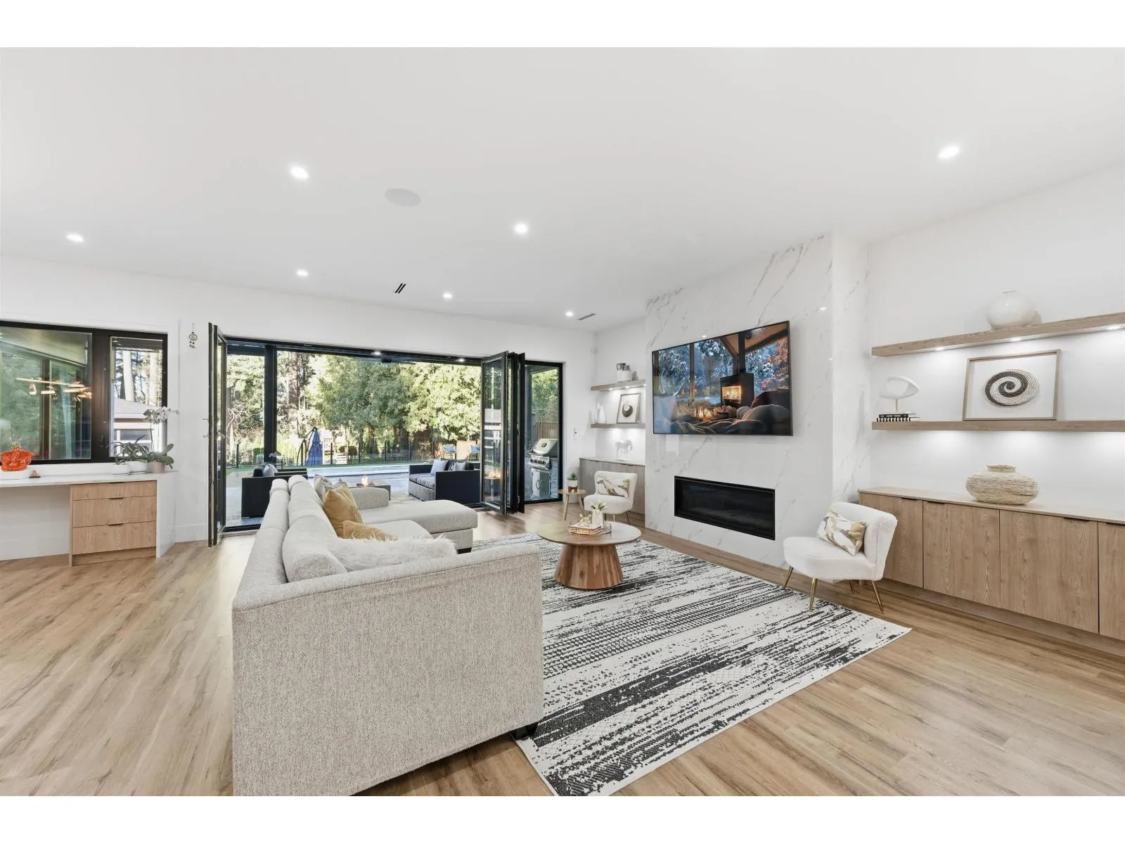 GATED ELGIN MASTERPIECE | BACKS TO CRESCENT PARK. This custom, like-new luxury estate offers ultimate privacy in one of South Surrey's most desirable pockets. Built for entertaining, the main level features a private theatre, bar, and chef's kitchen + spice kitchen with pro appliances. Enjoy true 365-day outdoor living with powered screens and a StruXure automated louvered patio, complete with a swim spa, pizza oven, and 2 gas fireplaces. Fully gated with smart-home automation and a backup generator. Upstairs includes a stunning primary suite with balcony & dream W/I closet, plus 3 large bedrooms with W/I closets and a built-in flex/workstation area with cabinetry . Main-floor guest ensuite. Steps to top schools and beach trails. (id:27476)