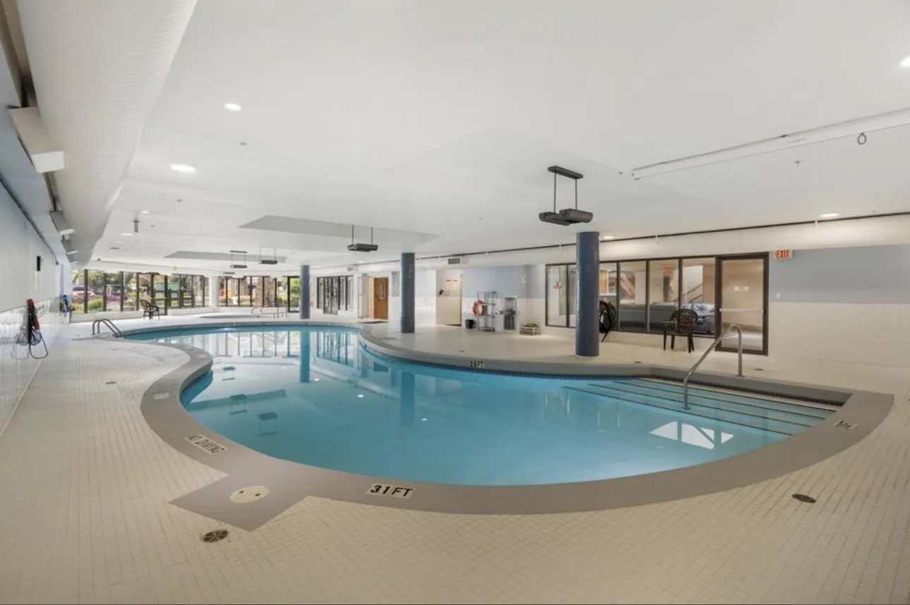 BRIGHT 1 BED + DEN | QUIET FOURTH FLOOR LIVING at Waterstone. This beautifully updated home features fresh paint, new blinds, and peaceful north-facing views overlooking the inner courtyard-zero traffic noise. The open layout offers a spacious den for work or nurseryEnjoy 9' ceilings, oversized windows, and access to Waterstone's famous 15,000+ sq ft of resort-style amenities: indoor pool, hot tub, full gym, theatre, fireside lounge & more. Close to shops, dining, and future SkyTrain. A standout home for first-time buyers or investors. (id:27476)