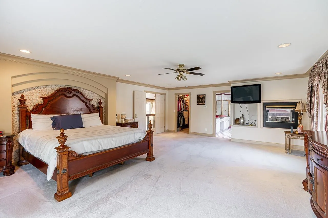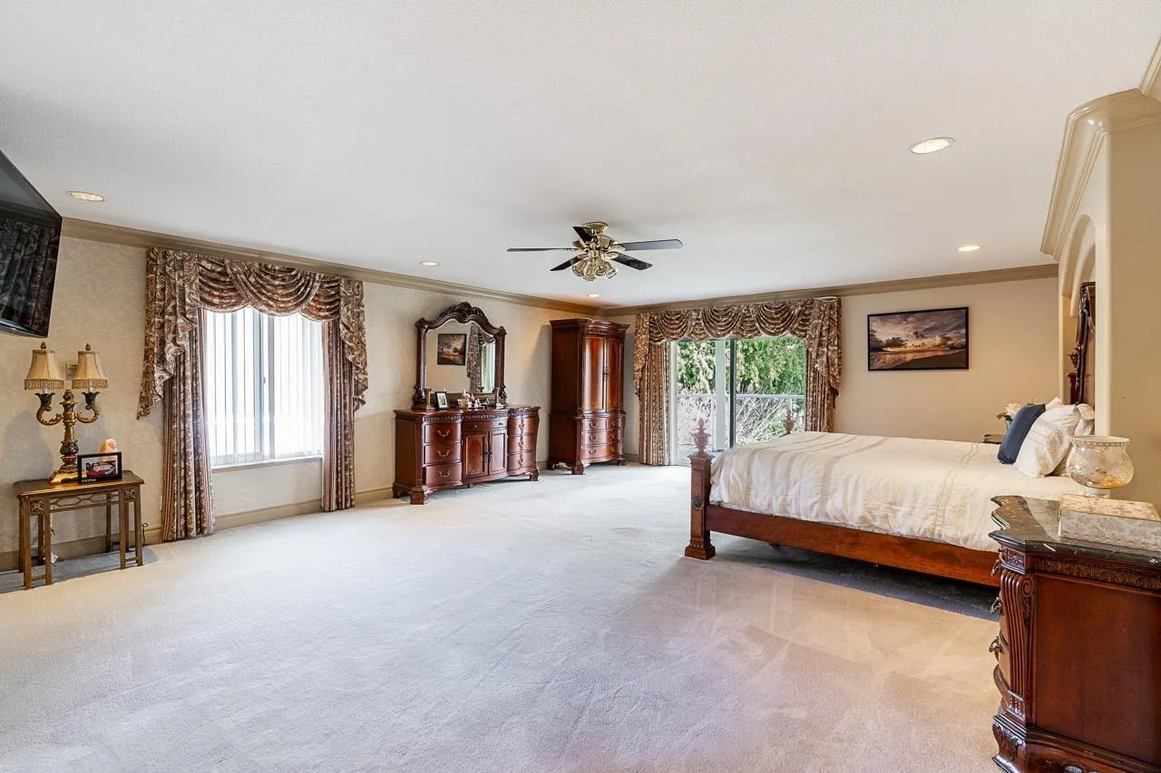 Exquisite home, 9 bdrm, 9 bath Dream home on a fully & professionally landscaped 1/2 acre property located in prestigious Panorama Ridge. Drive up a circular D/way past manicured lawns and landscaped gardens. Triple gar, oriented sideways to the street, gives the house a clean look. Through the double entry you are met with large granite laid foyer feat. Double curved, crossing, free standing staircase & a 4' wide chandelier. Formal living room & Dining room, large family rm, Den, guest room, chefs gourmet kitchen, part glasses in E/A & a full bar. Upstairs has 5 large bedrooms, 3 with ensuites. Master bedroom with gas Fireplaces & Large balcony. Basement has games room, c/w sauna, his & hers bath/change room and swimming pool. (id:27476)