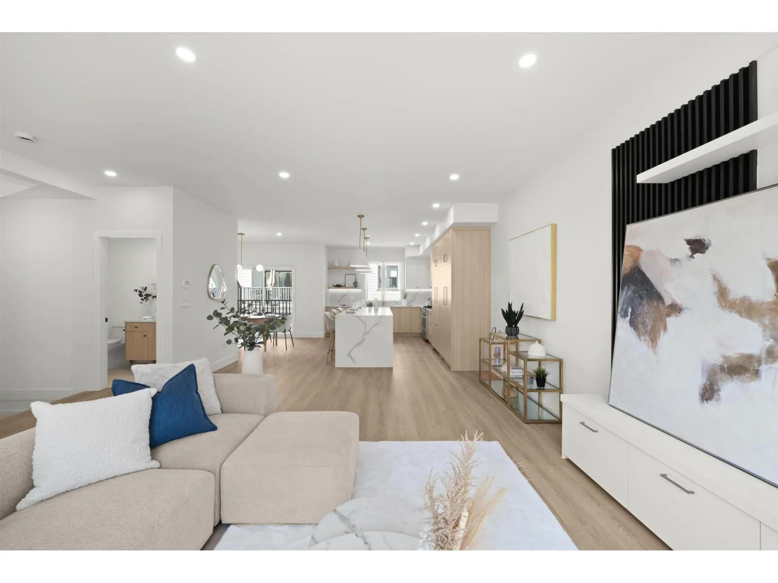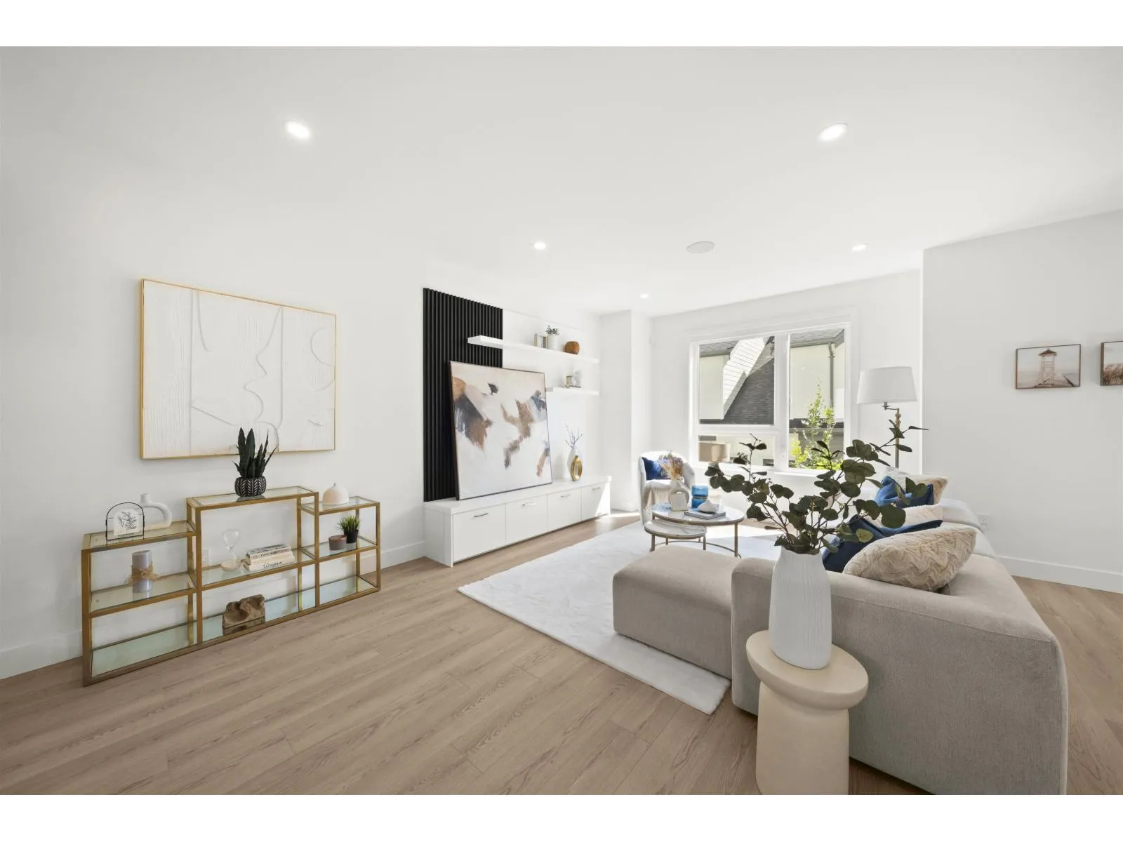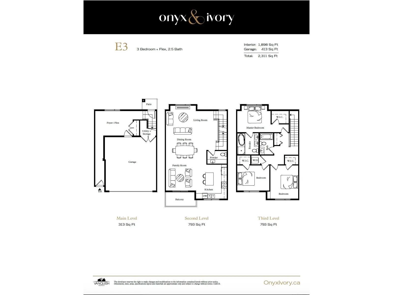 Spacious 3 bed + flex townhouse w/ all of the bells & whistles of a detached home! Dbl (side-by-side) garage, low strata fees. Onyx & Ivory: Set in a prestigious neighbourhood, surrounded by greenery. High-end finishes incl: European appliances, gas stove, large island w/ waterfall, quartz counters/backsplash, LED pot lights, designer light fixtures, built-in speakers & e-poxy in garage. Flex/office/rec room on lower level + a fenced yard. Open kitchen/living/dining & powder room on main level w/ balcony & bbq gas outlet. Primary bedrm w/ WIC & ensuite w/ duel vanities. 2 more good sized bedrms + bath & laundry upstairs. Wide-plank laminate up & down, forced air, hot water on demand, central A/C, & millwork incl. MOVE IN READY - 5% deposit only! Photos are of E2 Plan but the same colour scheme. SHOW HOME OPEN DAILY 12-5 (except Fridays). (id:27476)