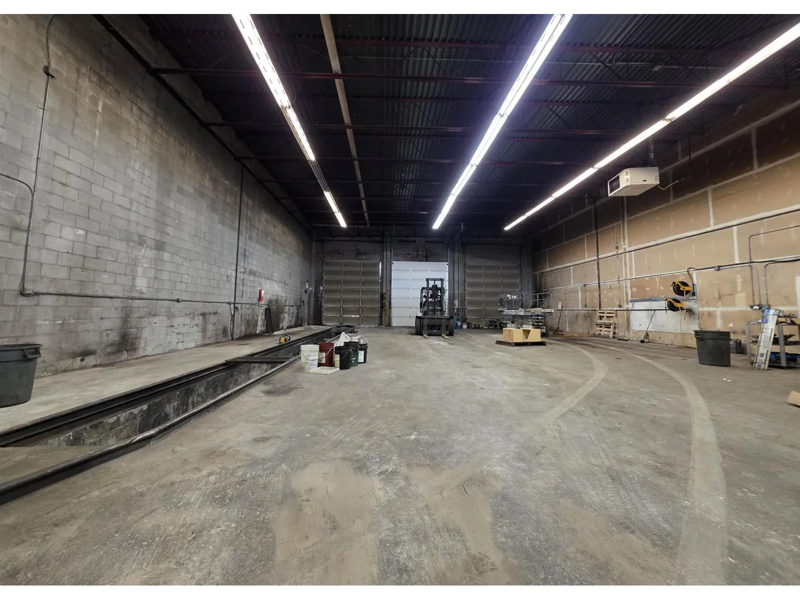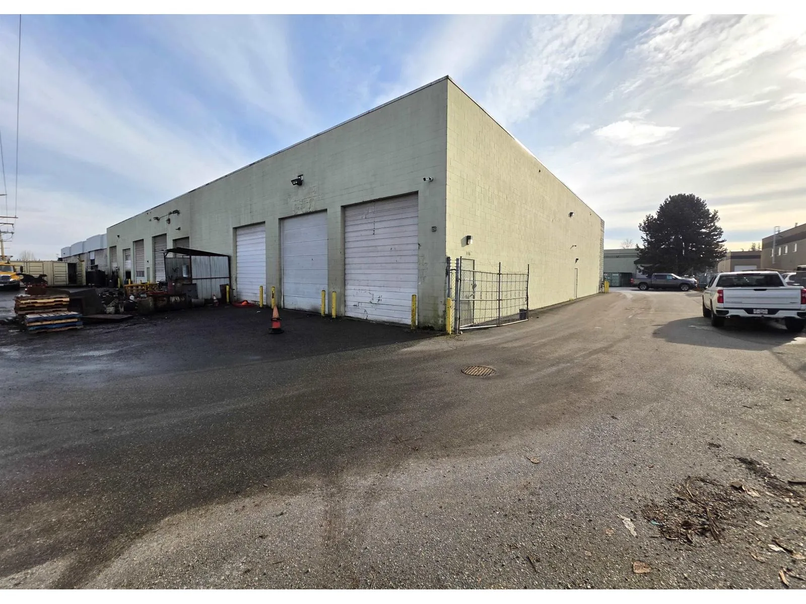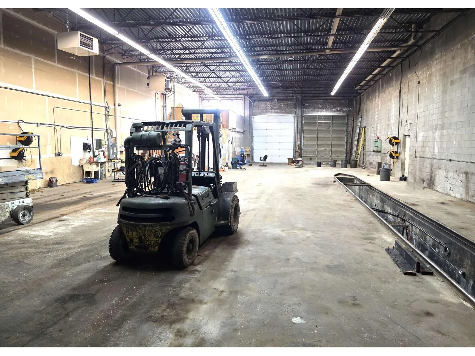 PORT KELLS 5,000 sq. ft. clear-span warehouse 20-foot ceiling, five bay doors including two fully drive-through bays with 14-foot-high doors. Bonus service pit 50' x 3'6" and 4' deep equipped with power and air supply. The unit is equipped with three-phase power (220V, 460V, 600V), two overhead gas heaters, and includes an air compressor. A mezzanine measuring approximately 27'6" x 15'6" provides additional functional space. Approximately 9,000 sq. ft. of open yard space offering excellent flexibility for storage, parking, or operational use. (id:27476)