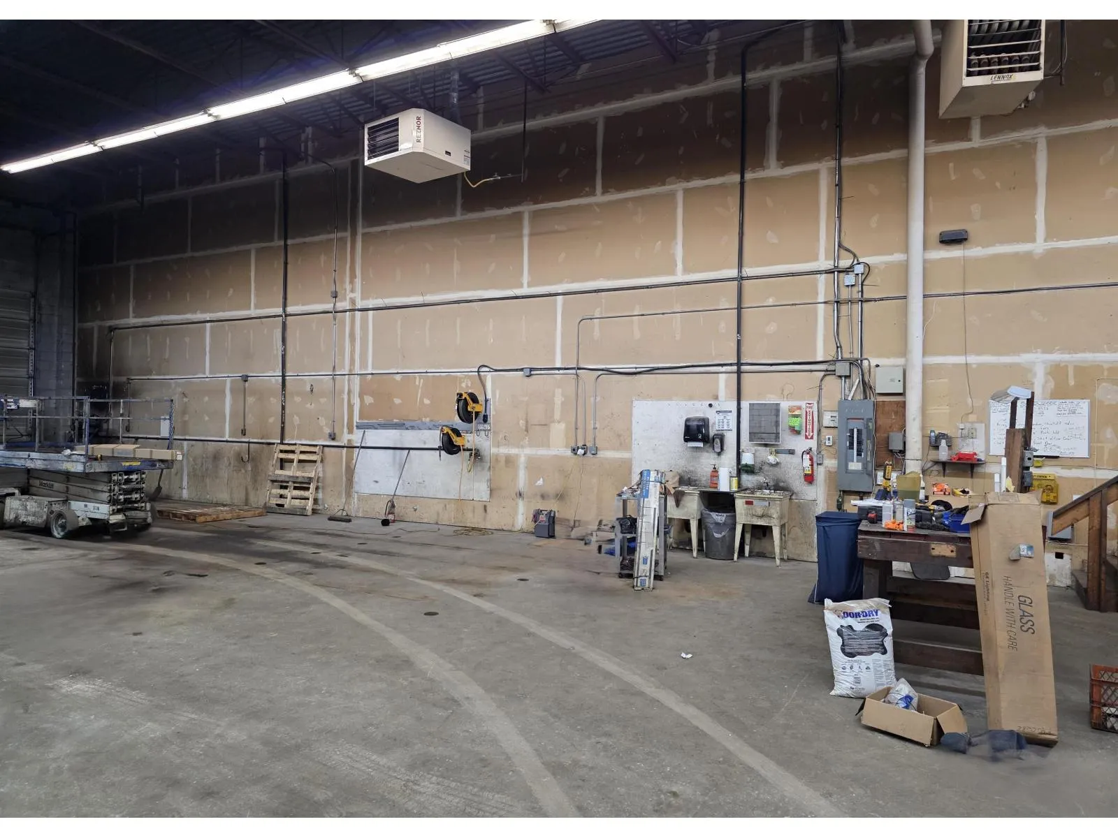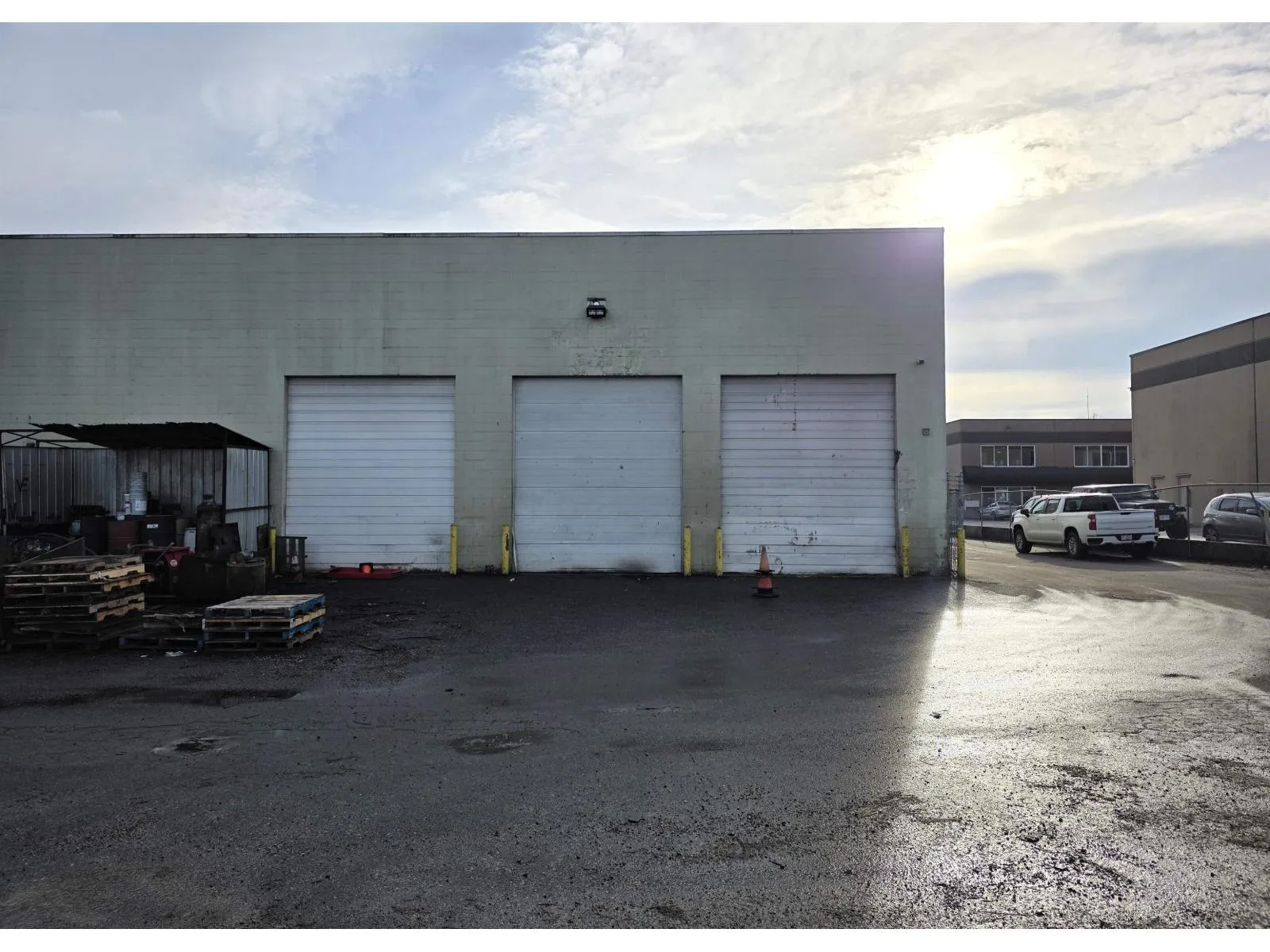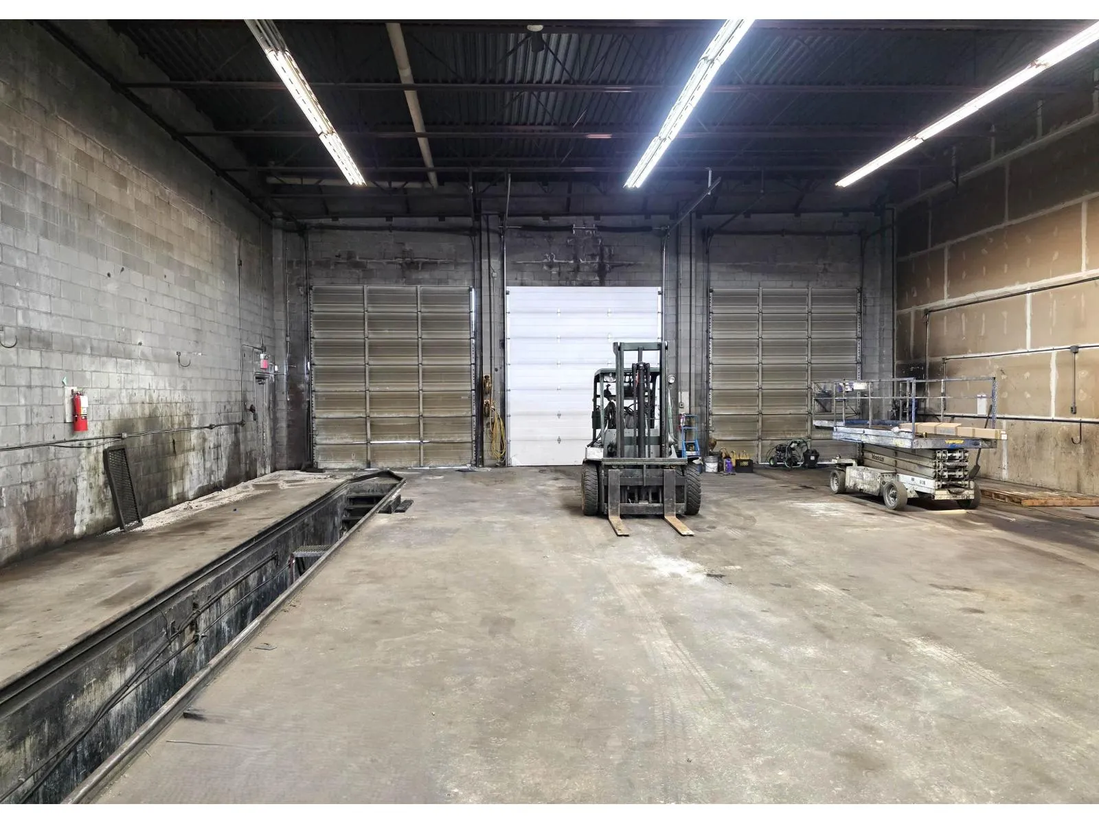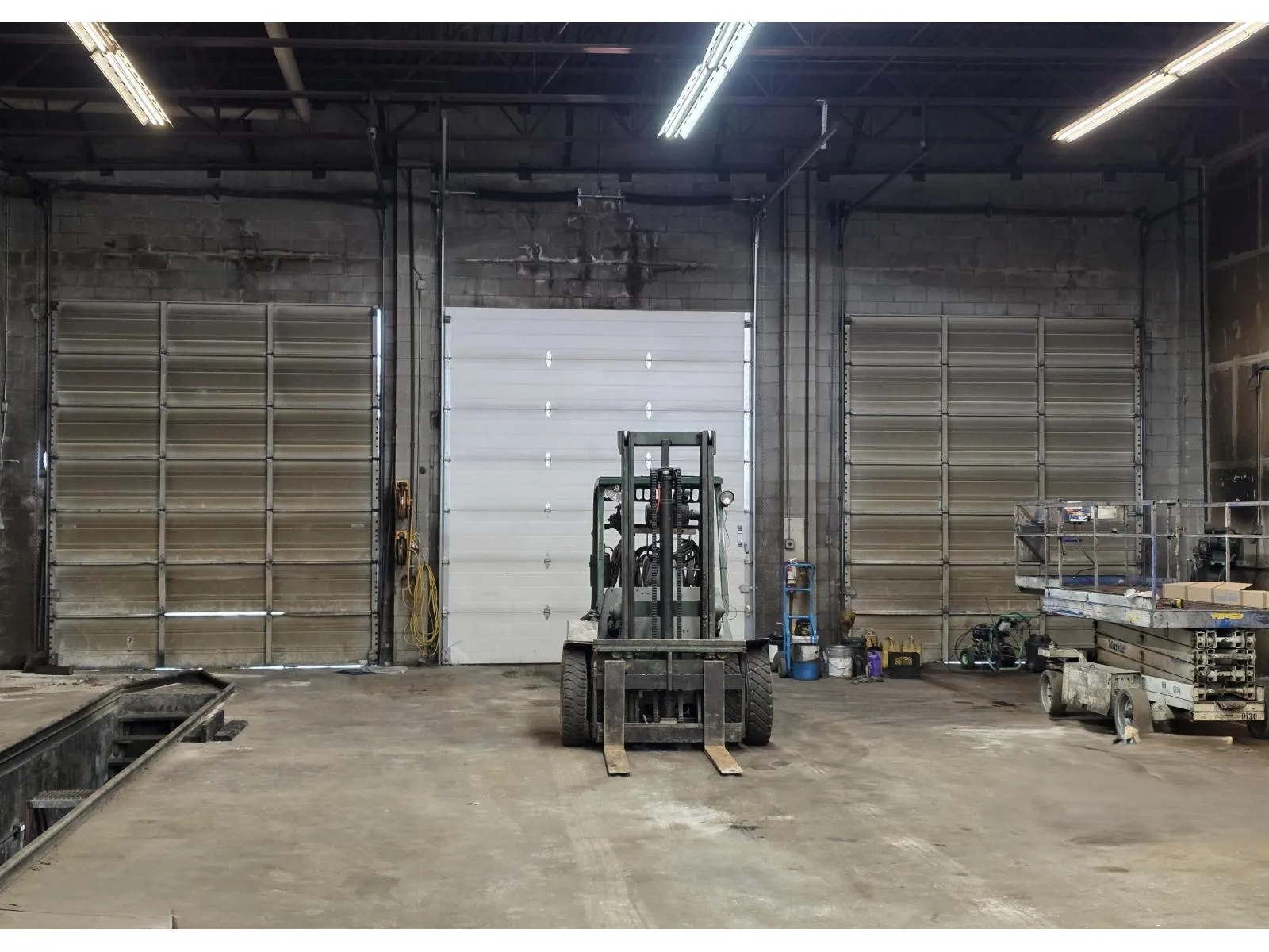 PORT KELLS 5,000 sq. ft. clear-span warehouse 20-foot ceiling, five bay doors including two fully drive-through bays with 14-foot-high doors. Bonus service pit 50' x 3'6" and 4' deep equipped with power and air supply. The unit is equipped with three-phase power (220V, 460V, 600V), two overhead gas heaters, and includes an air compressor. A mezzanine measuring approximately 27'6" x 15'6" provides additional functional space. Approximately 9,000 sq. ft. of open yard space offering excellent flexibility for storage, parking, or operational use. (id:27476)