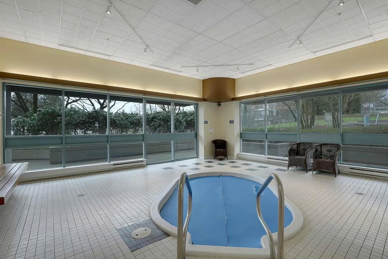Stunning 1-bedroom concrete condo on the 14th floor with a bright south-facing city view! This beautifully designed unit features a cozy gas-burning fireplace (included in the maintenance fee), creating a warm and inviting atmosphere. The building offers top-tier amenities, including an outdoor swimming pool, hot tub, billiards room, and clubhouse-perfect for relaxation and entertainment. Conveniently located near shops, transit, and dining, this home is ideal for urban living. Don't miss this opportunity! (id:27476)