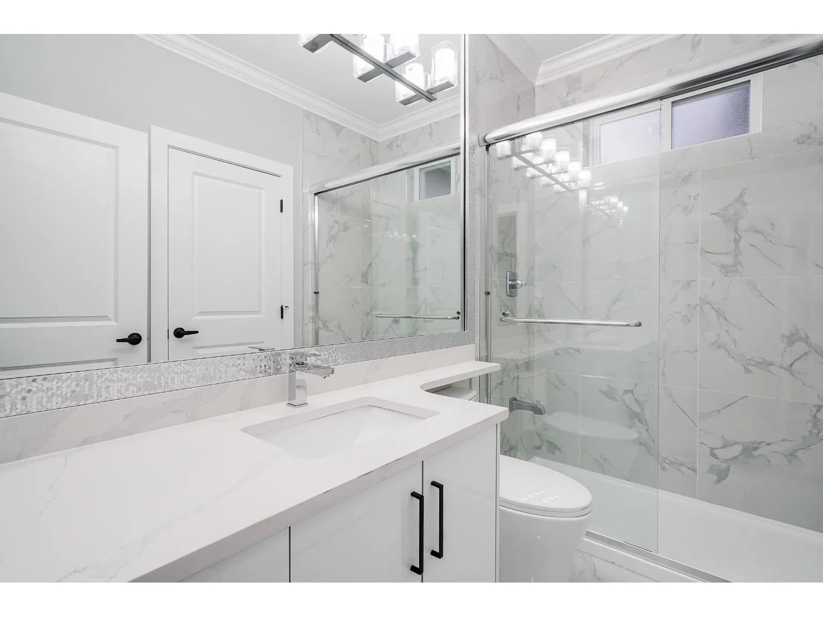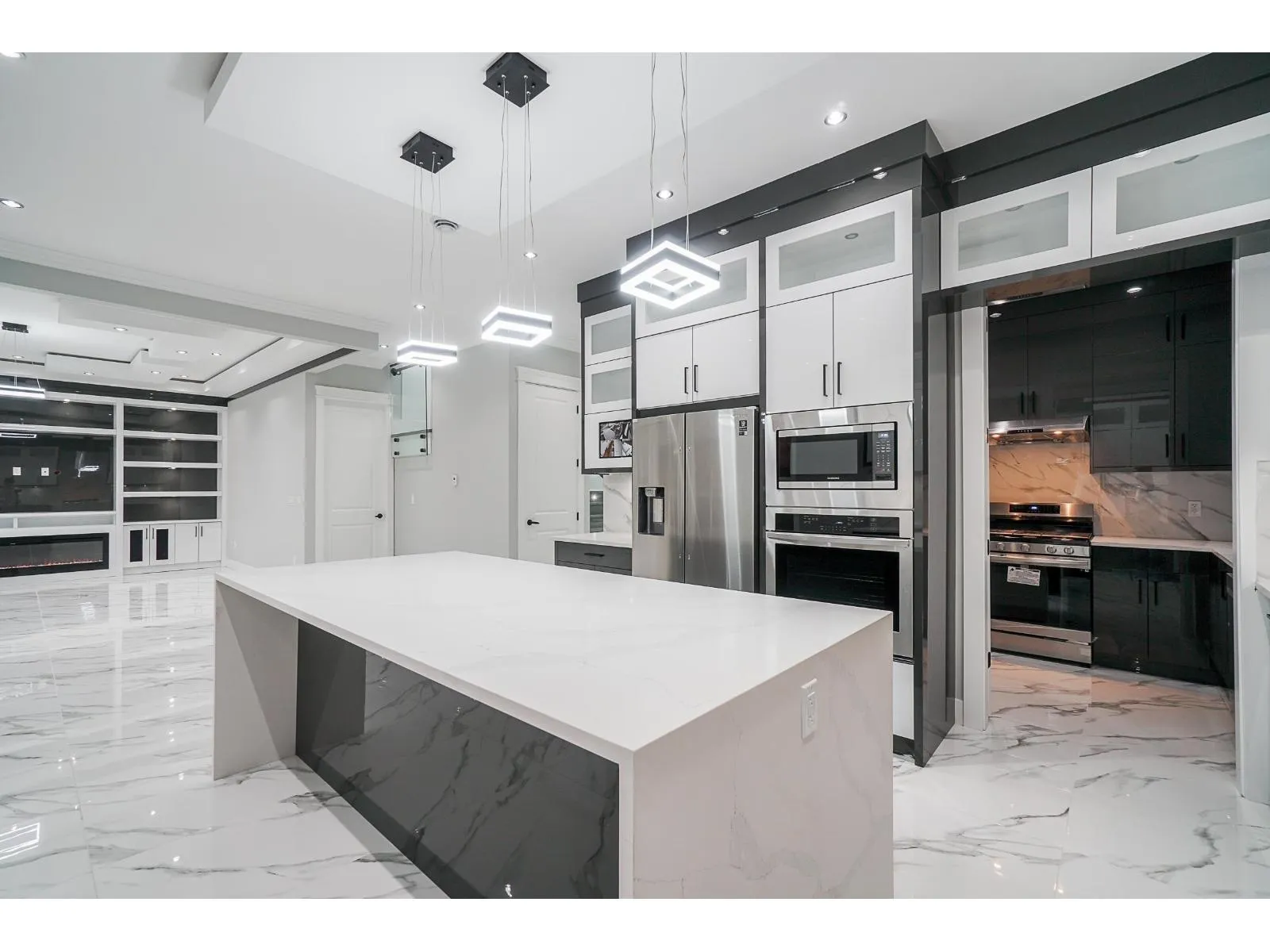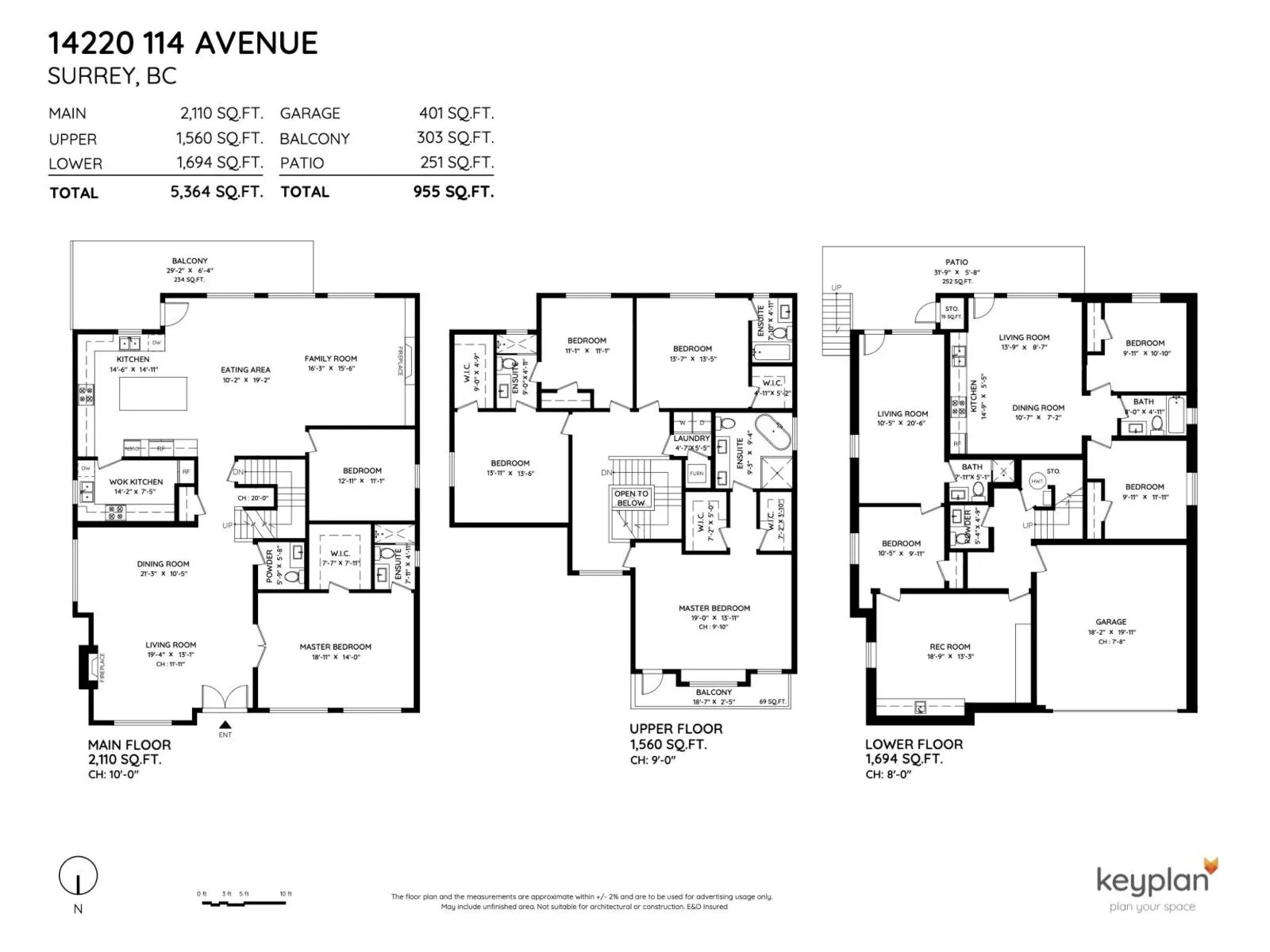 Built in 2021, this 3-level Bolivar Heights home has 9 Beds and 8 Baths on a 6,011sqft lot. Main floor features a large living and dining room, modern kitchen with waterfall island, an oversized spice kitchen, huge family room, and 2 BEDROOMS. Upper level has 4 bedrooms with ensuites and walk-in closets. Basement has large theatre room with bar, plus (2+1) rental suites. LIKE NEW home with A/C, HRV System. Quiet street with all new homes. Central location just minutes from Guildford Mall, King George Hub, all transit, schools, and amenities! (id:27476)