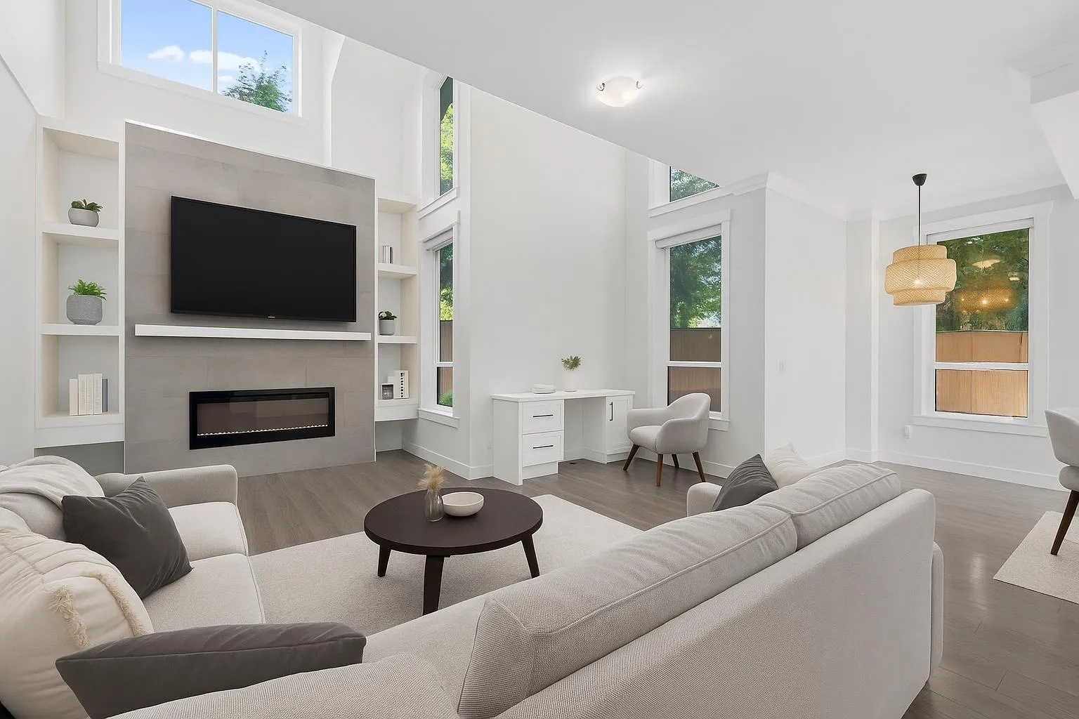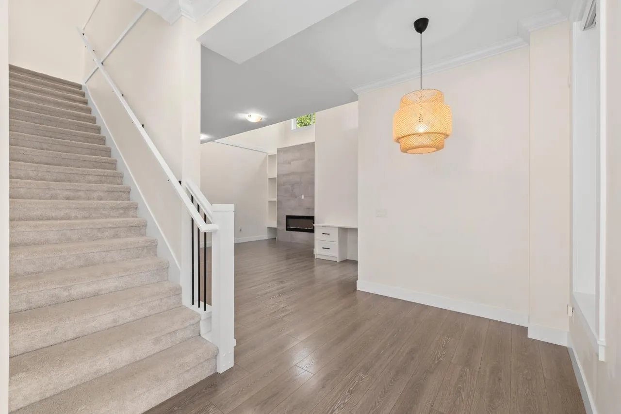 Welcome to Marca - an exclusive enclave of MEGA SIZED townhomes in the heart of South Surrey, where timeless architecture meets modern coastal elegance. This rare END unit & former SHOWHOME offers over 2,800 sq. ft. of thoughtfully designed living space in the most private location within the community. Featuring 4 spacious bedrooms-including a vaulted-ceiling primary retreat-a fully finished bsmnt w/ custom bar & a light-filled open-concept great room, this home is perfect for both entertaining and quiet moments. Enjoy a walk-out yard, upstairs patios, CENTRAL HEATING & A/C, a chefs kitchen w/ premium SS gas appliances, & a double side-by-side garage. Minutes to White Rock Beach, top schools, parks, shopping & transit-this MOVE-IN READY home combines privacy, sophistication & convenience. (id:27476)