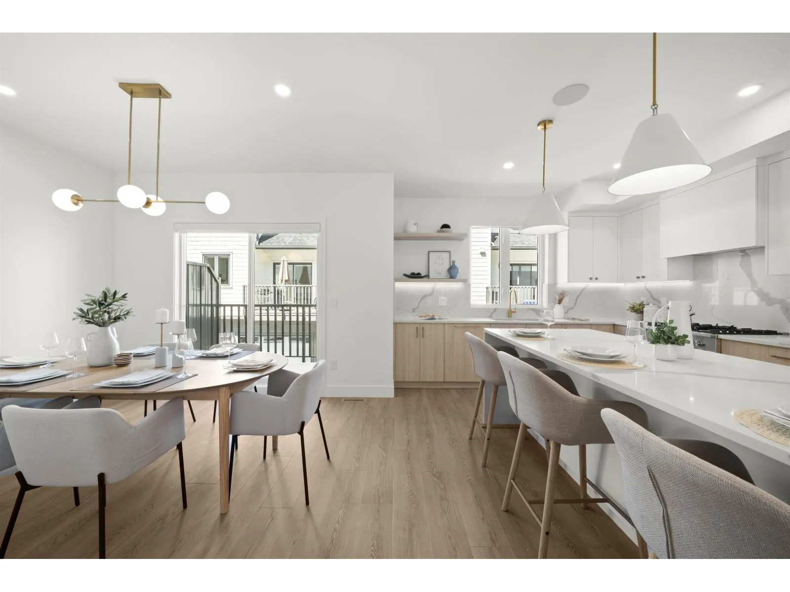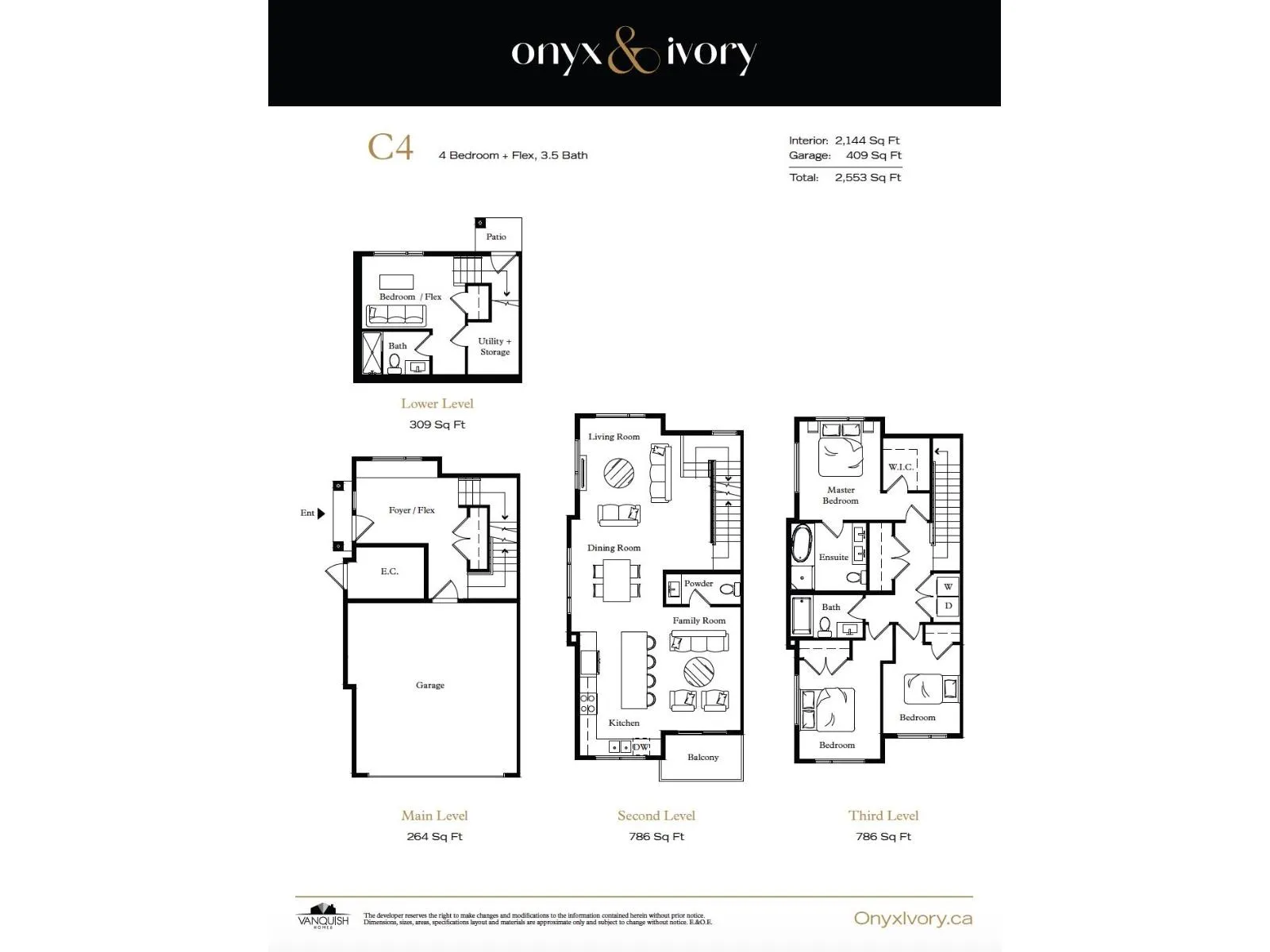 Onyx & Ivory: Set in a prestigious neighbourhood, surrounded by greenery. High-end finishes incl: European appliances, gas stove, large island w/ waterfall, quartz counters/backsplash, LED pot lights, designer light fixtures & e-poxy in garage. Spacious 4 bed + flex (C4 plan) townhouse w/ all of the bells & whistles of a detached home! Dbl garage, low strata fees. Bedrm + bath in bsmt, w/ a flex/office space above. Open kitchen/living/dining & powder room on main level w/ balcony & bbq gas outlet. Primary bedrm w/ WIC & ensuite w/ duel vanities. 2 more good sized bedrms + bath & laundry upstairs. Wide-plank laminate up & down, forced air, central A/C, & millwork incl. MOVE IN READY - 5% deposit only! Photos are of E2 Plan. #60 is in the 'Onyx' colour scheme. SHOW HOME OPEN SAT-THURS 12-5. (id:27476)