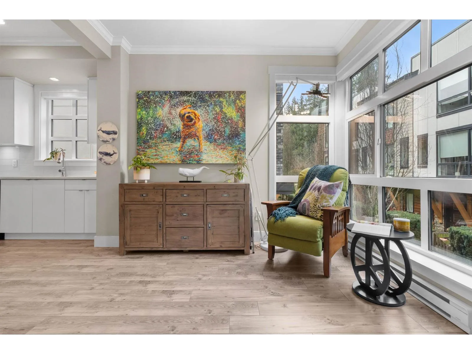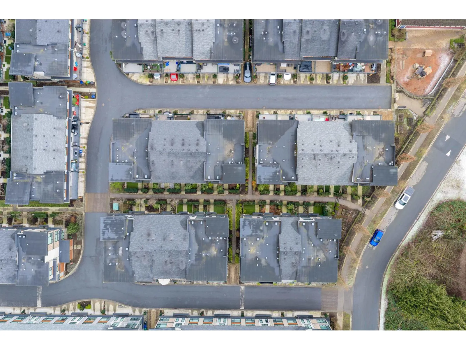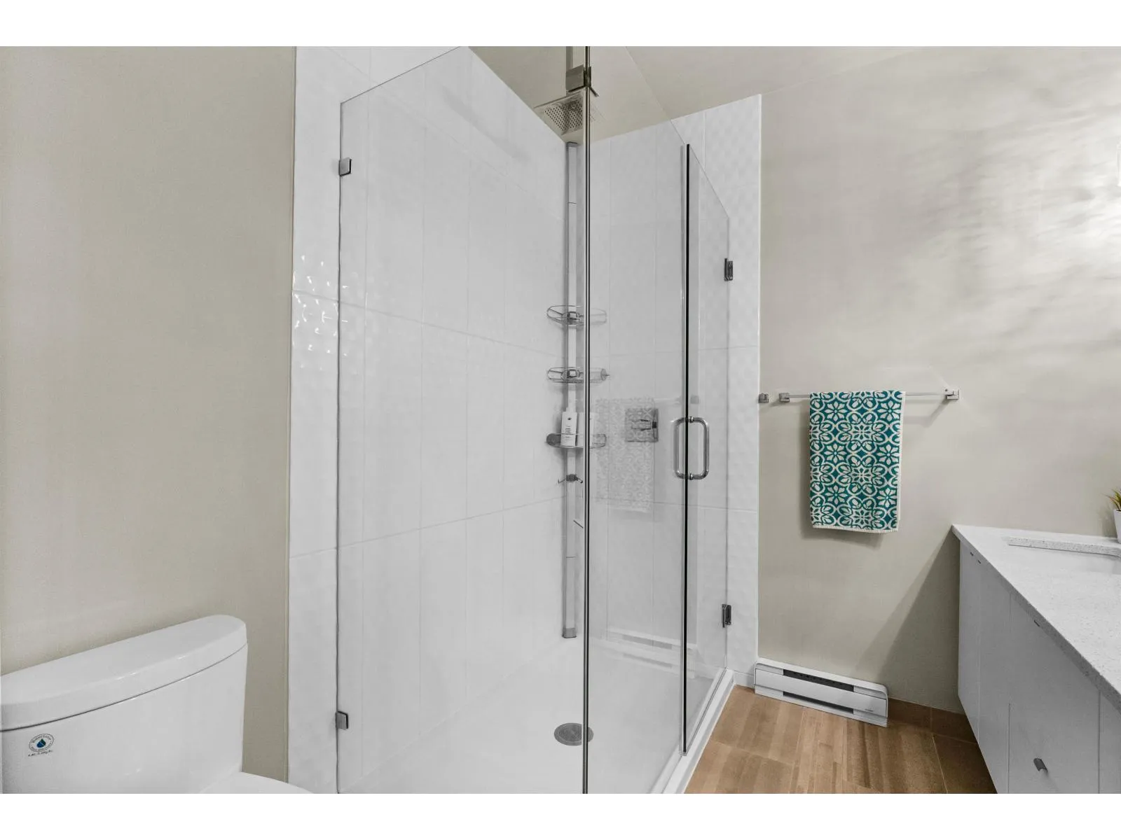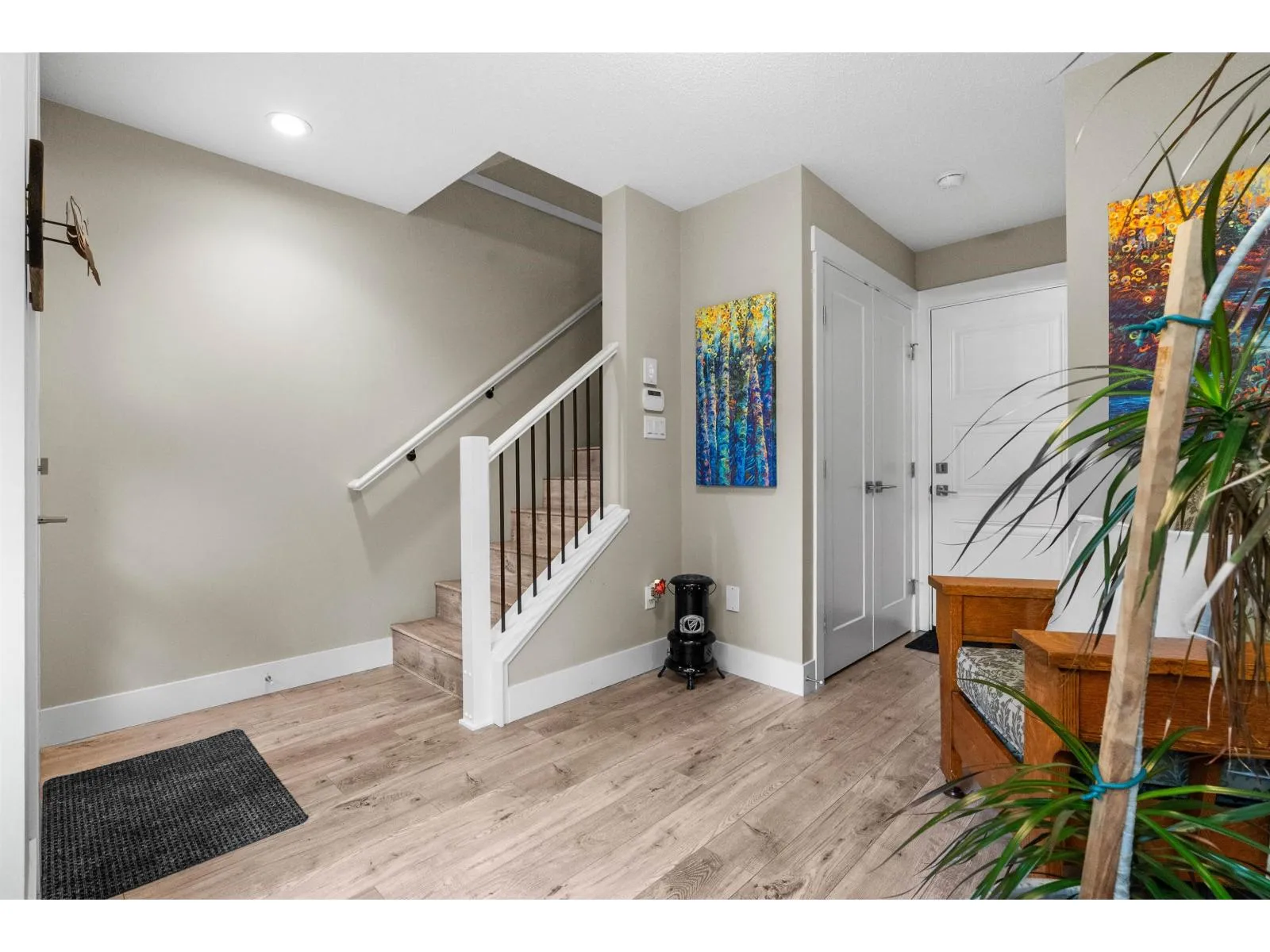 Beautifully maintained end unit at Harvest at Bose Ridge Farm in West Cloverdale! The open concept living space features a gourmet kitchen with quartz countertops, modern cabinetry, stainless steel appliances, gas cooktop, and a striking waterfall island, perfect for everyday living and entertaining. 9 foot ceilings and floor to ceiling windows create a bright, airy feel throughout. A versatile flex room/den welcomes you at the entry while the upstairs offers a generous primary bedroom and the second bedroom impresses with a dramatic 13 foot vaulted ceiling and stunning 10 foot windows. Two covered parking spaces and the garage is thoughtfully designed with loads of storage solutions. Plus, 18 acres of walking trails, athletic park & elementary school all at your doorstep! (id:27476)