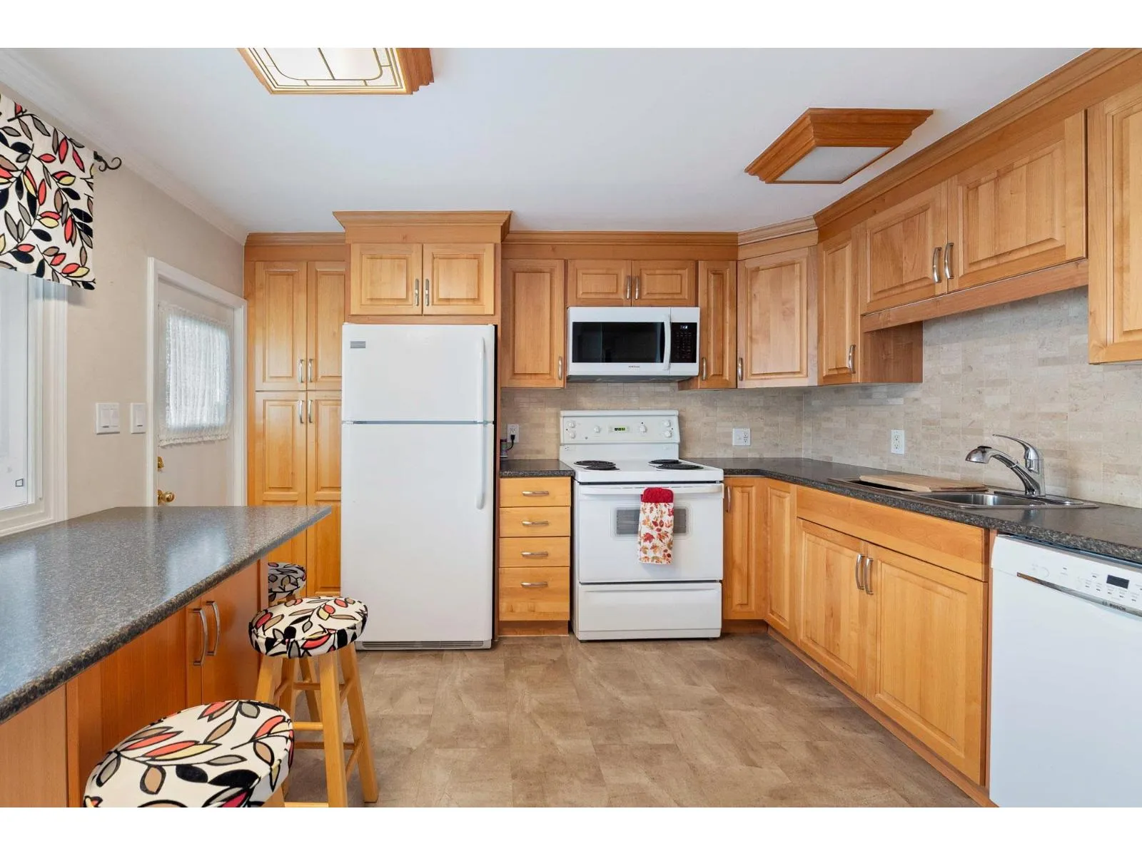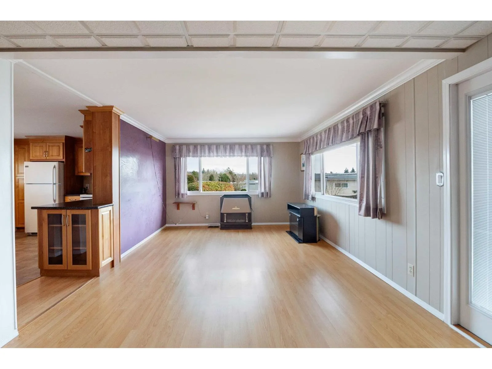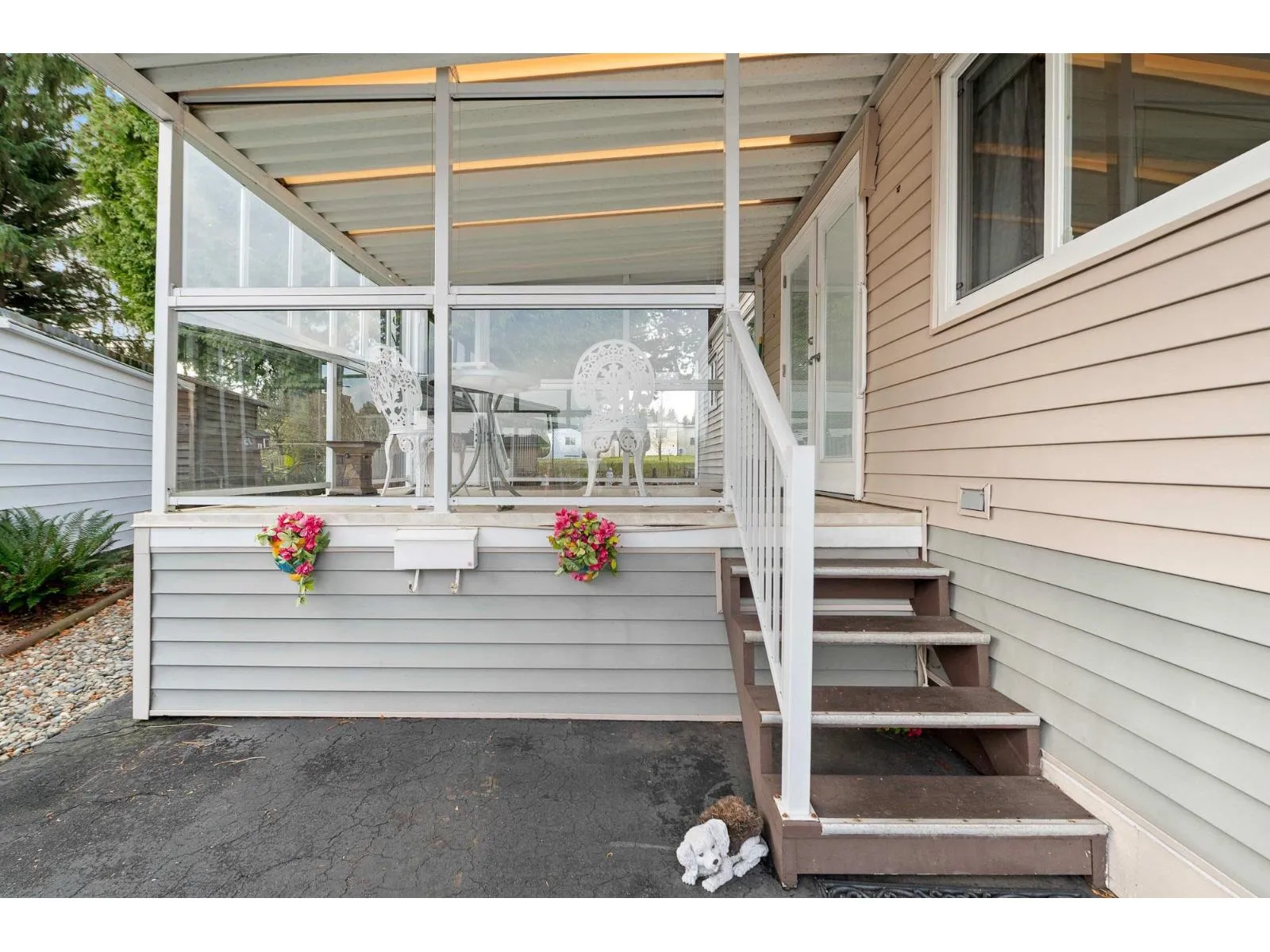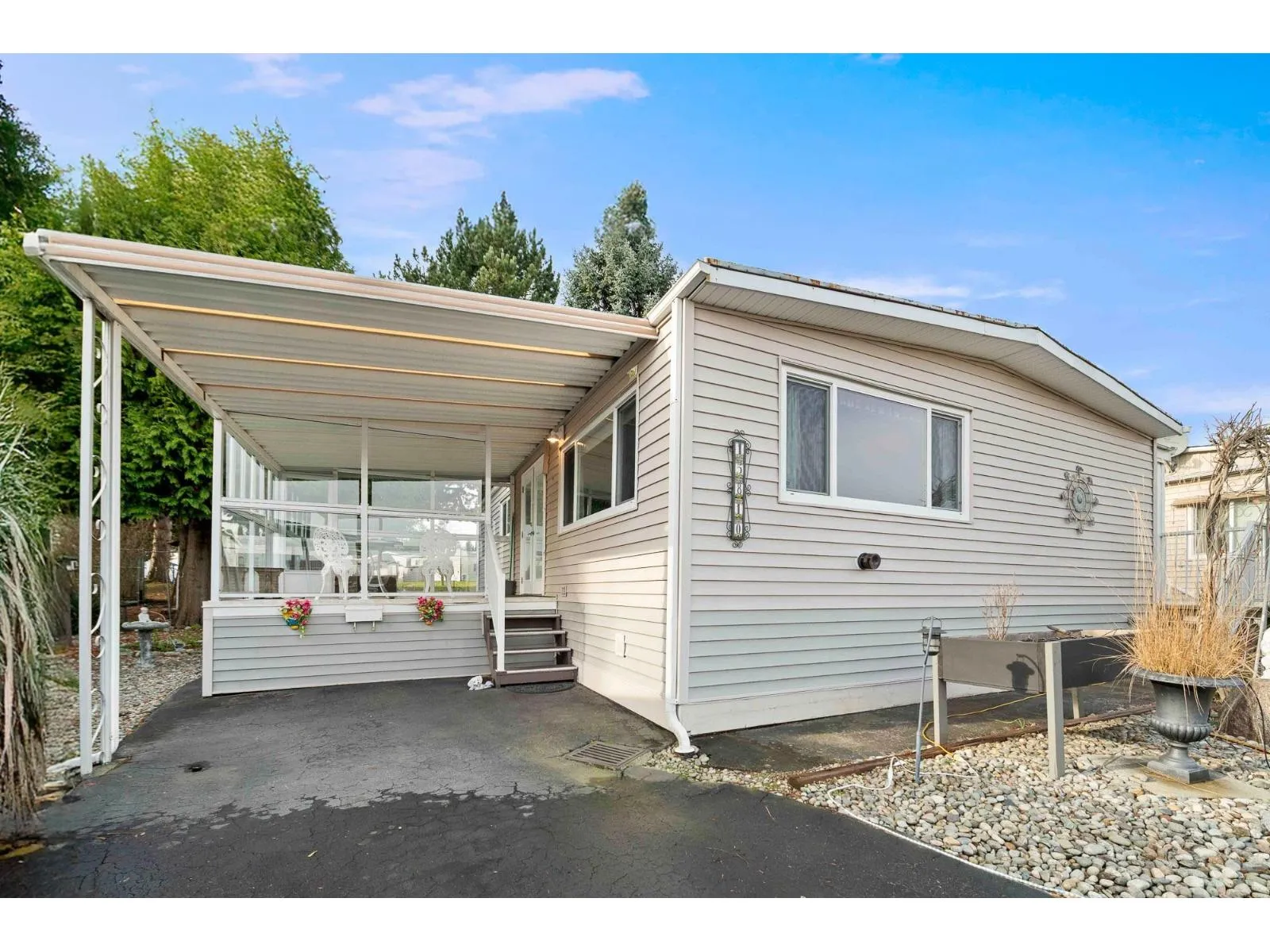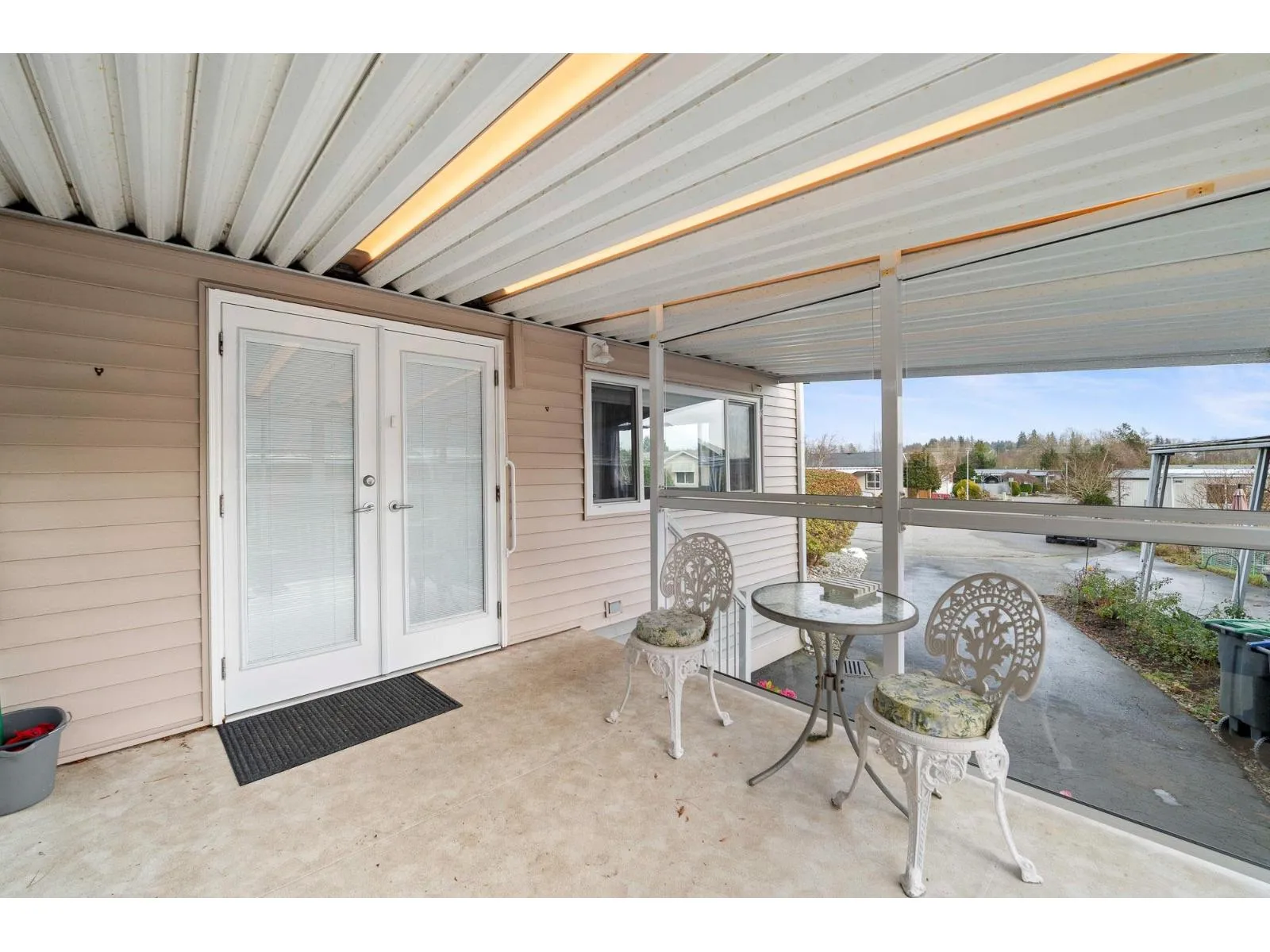 Welcome to Cranley Place, a well-maintained 50+ community with no high pad fees or strata fees a rare opportunity where you own the land. This bright two bedroom double wide home features a spacious open-concept layout, perfect for comfortable living and entertaining. Set on a generous 5,850 sq. ft. lot, the home backs onto a completely private green space, offering exceptional privacy and room to garden or relax outdoors. Enjoy the large covered patio that opens directly to the backyard, ideal for outdoor living year-round. There's ample parking with a long driveway, plus a storage shed for added convenience. Residents also have access to a clubhouse and RV parking. The community is pet-friendly and ideally located just steps from transit, shopping, and recreation. (id:27476)