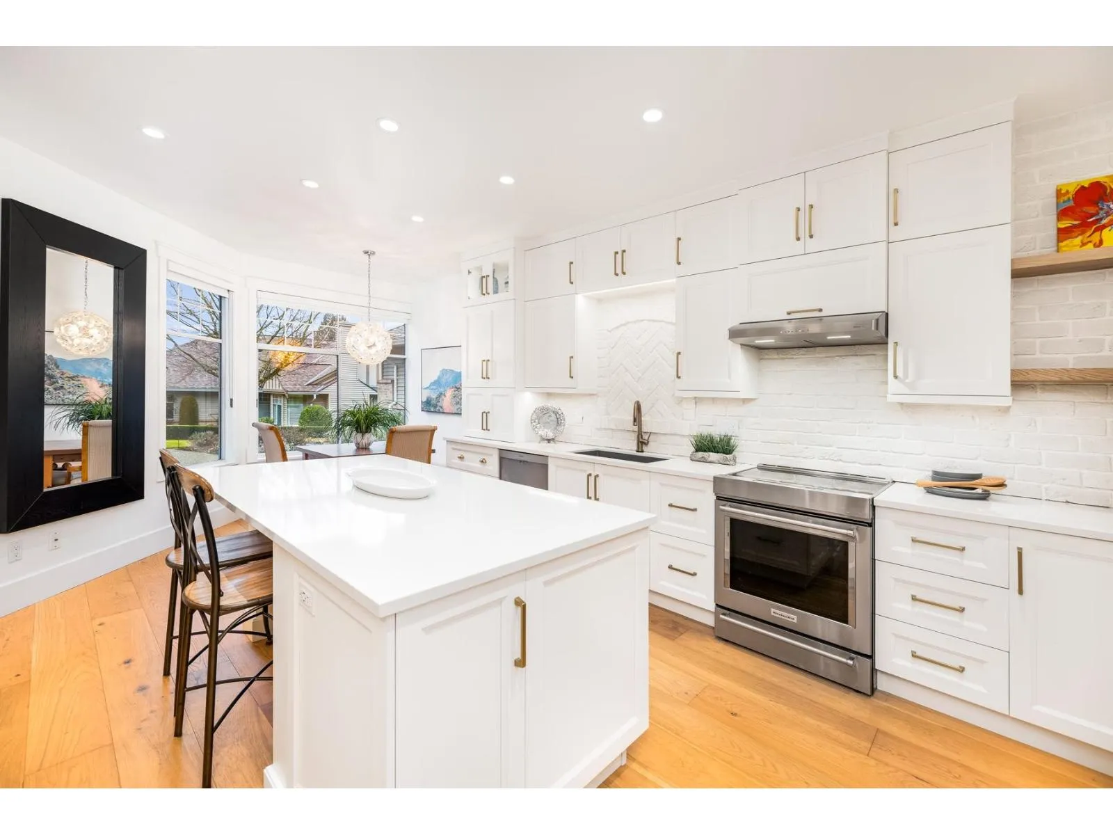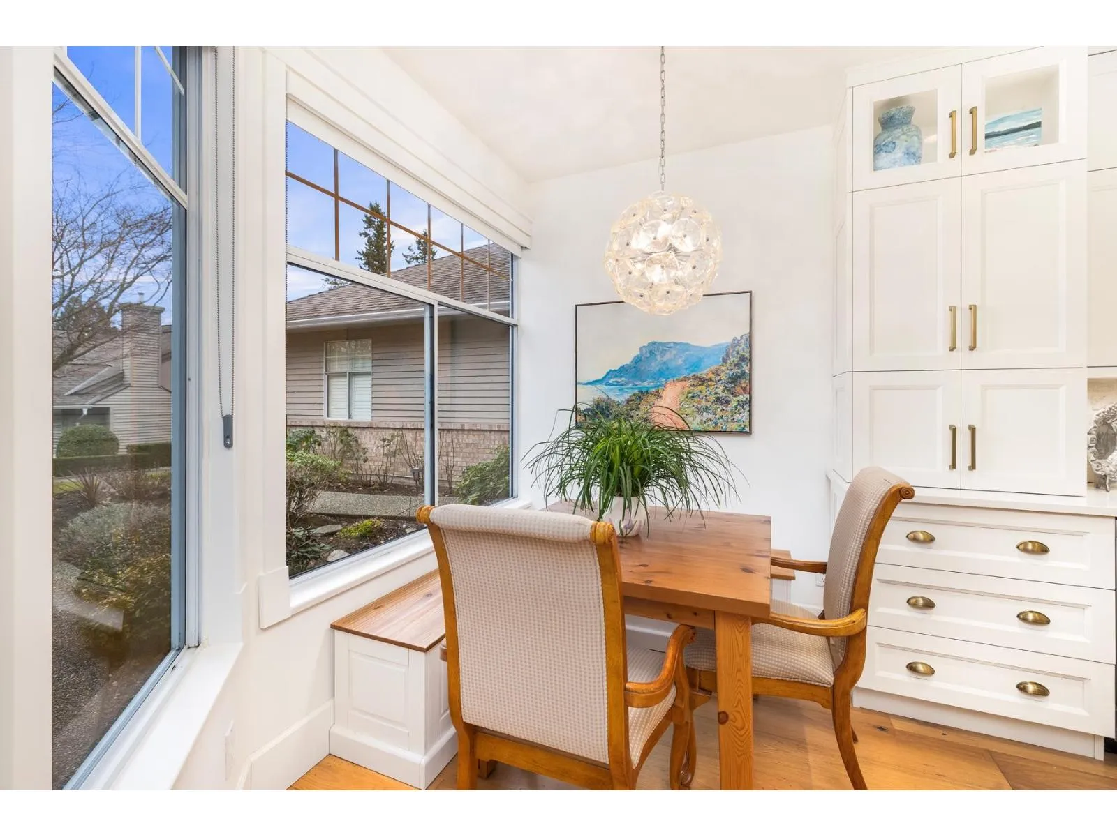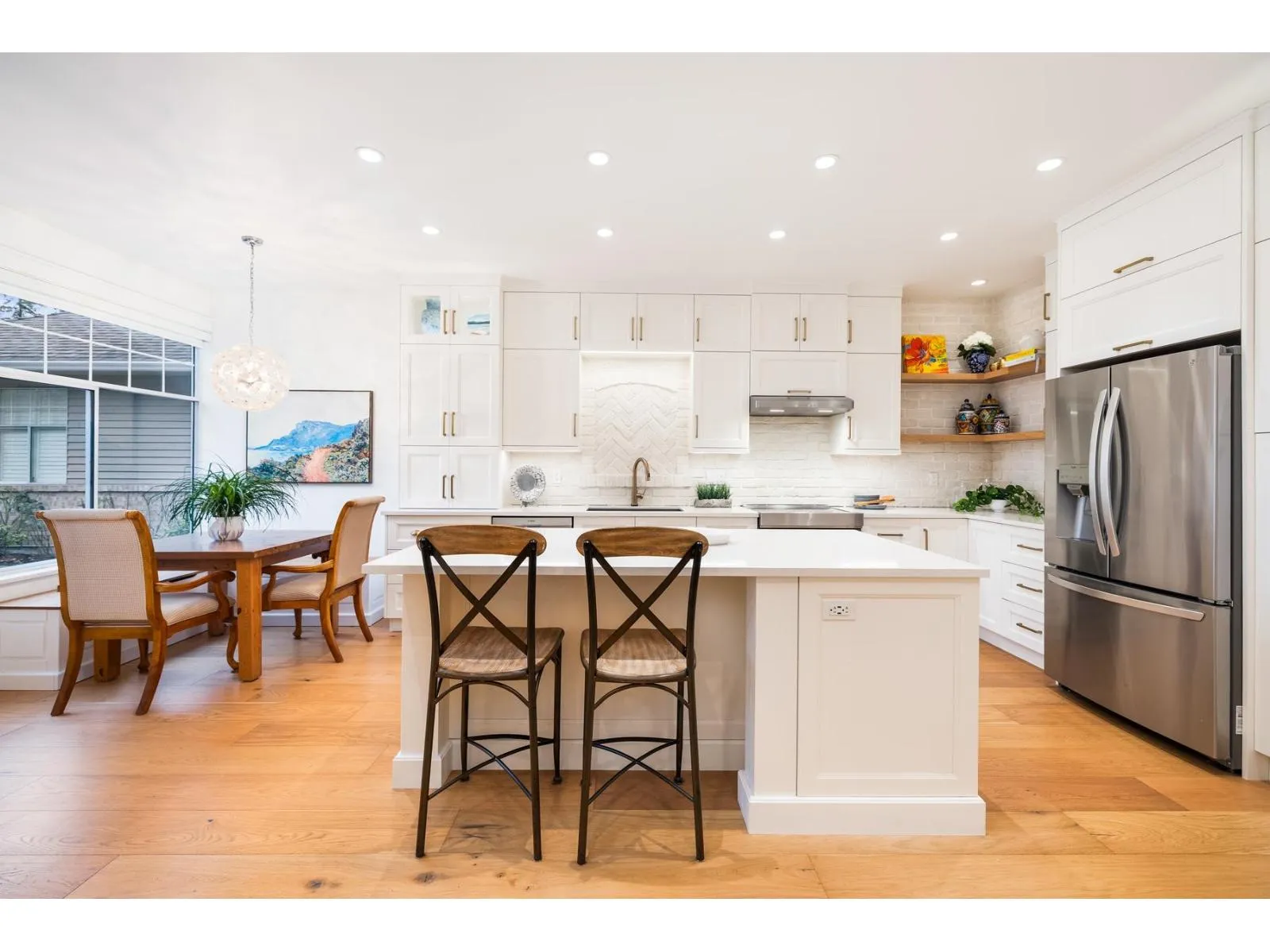 Bishop's Green is THE ultimate in the 55+ resort like community. This beautiful 2 BR + Den, 2 Full Bath, one level home has been FULLY RENO'D to high end, quality European standards & is fully accessible. The spectacular Chef's Kiss kitchen boasts solid wood cabinets w/ custom built ins, bev station, induction range, white brick backsplash w/ herringbone centre, quartz countertops & oversized island. Spa-like ensuite w/ curbless Carrara marble trim shower. Primary BR, den & vaulted Great Room/Dining w/ flr to ceil fireplace look out expansive windows to south facing private, treed backyard w/ 400SF flagstone patio. Clubhouse w/ pool, hot tub, guest suite, gym, workshop & full time caretaker. Nestled along the mature trees of Semiahmoo Trail w/ direct access & walkable to the shops & services at Southpoint & Peninsula Village. OPEN HOUSE SUNDAY FEB 22 2-4PM (id:27476)