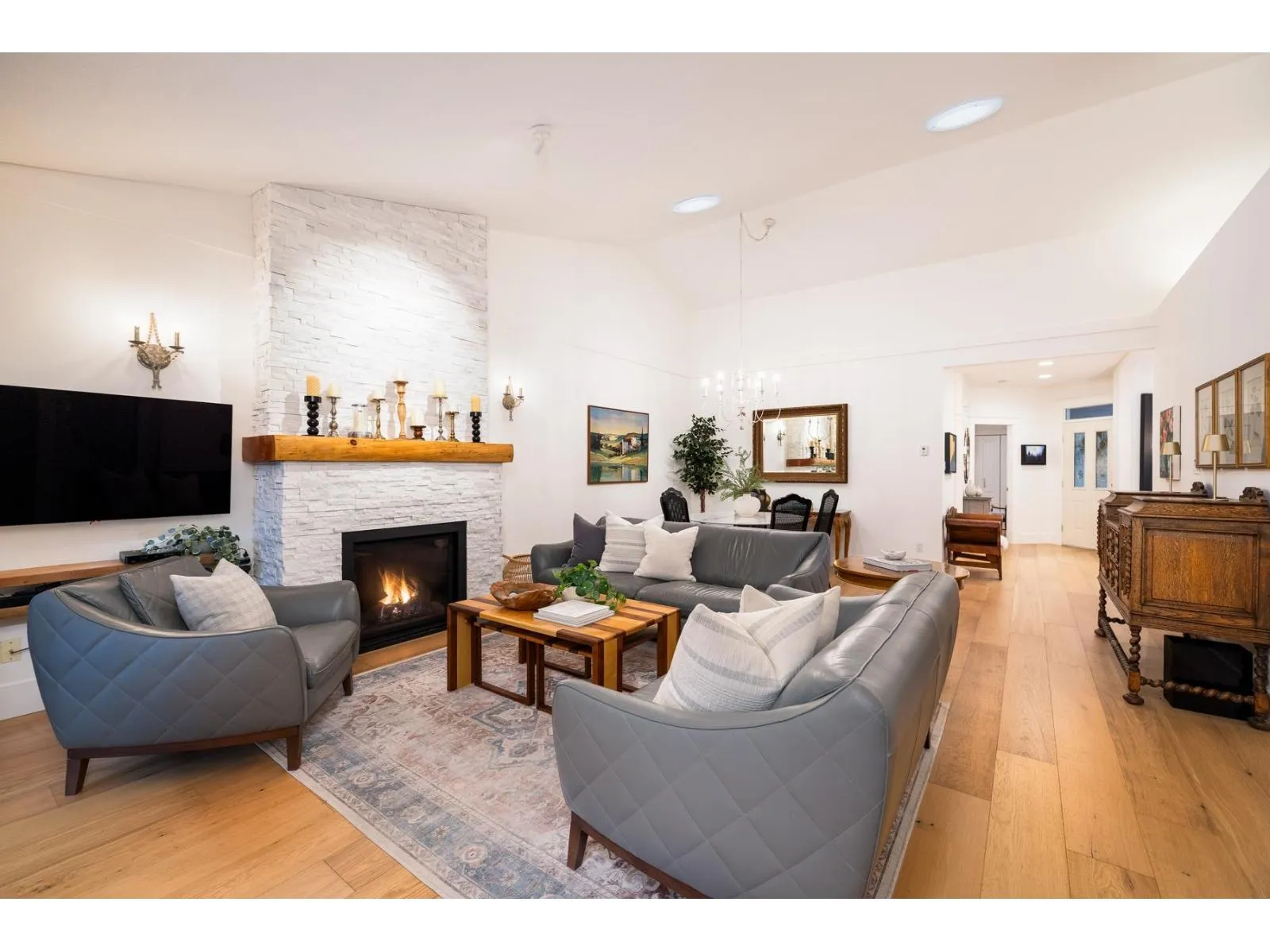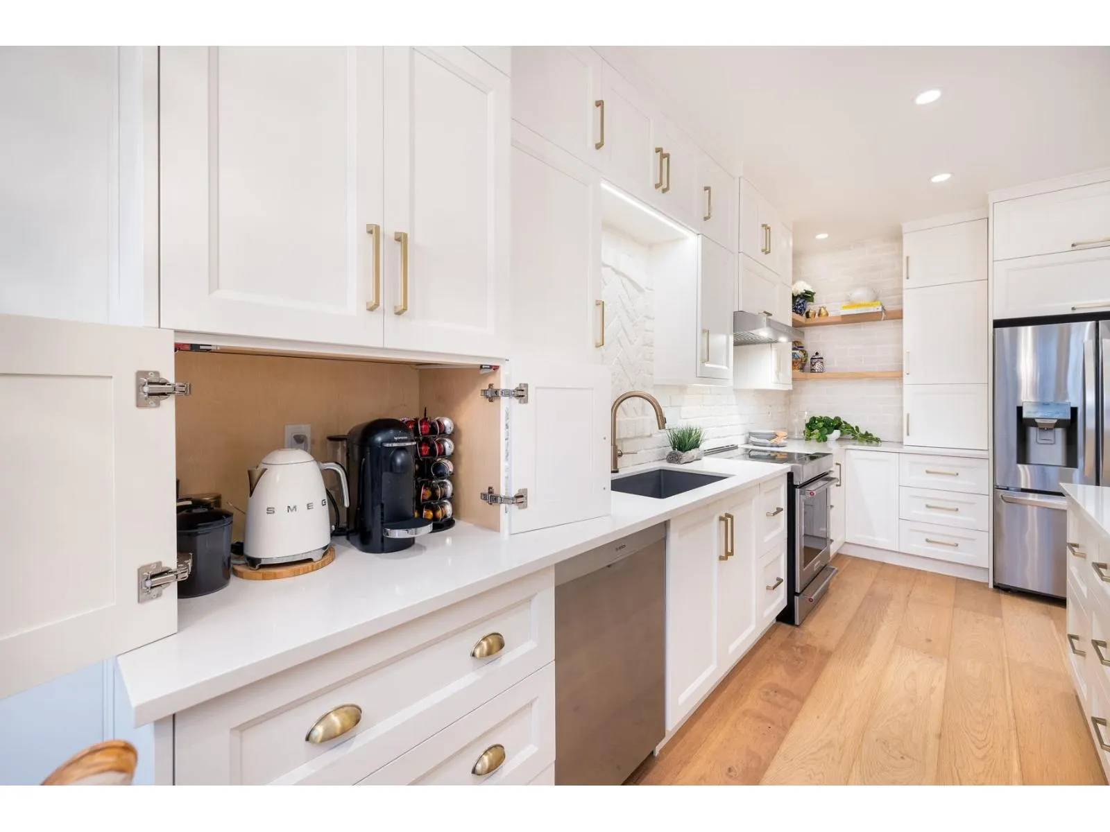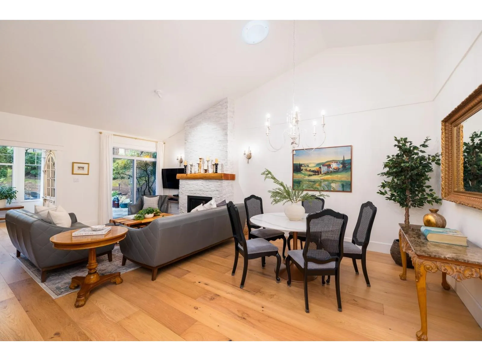 Bishop's Green is THE ultimate in the 55+ resort like community. This beautiful 2 BR + Den, 2 Full Bath, one level home has been FULLY RENO'D to high end, quality European standards & is fully accessible. The spectacular Chef's Kiss kitchen boasts solid wood cabinets w/ custom built ins, bev station, induction range, white brick backsplash w/ herringbone centre, quartz countertops & oversized island. Spa-like ensuite w/ curbless Carrara marble trim shower. Primary BR, den & vaulted Great Room/Dining w/ flr to ceil fireplace look out expansive windows to south facing private, treed backyard w/ 400SF flagstone patio. Clubhouse w/ pool, hot tub, guest suite, gym, workshop & full time caretaker. Nestled along the mature trees of Semiahmoo Trail w/ direct access & walkable to the shops & services at Southpoint & Peninsula Village. OPEN HOUSE SUNDAY FEB 22 2-4PM (id:27476)
