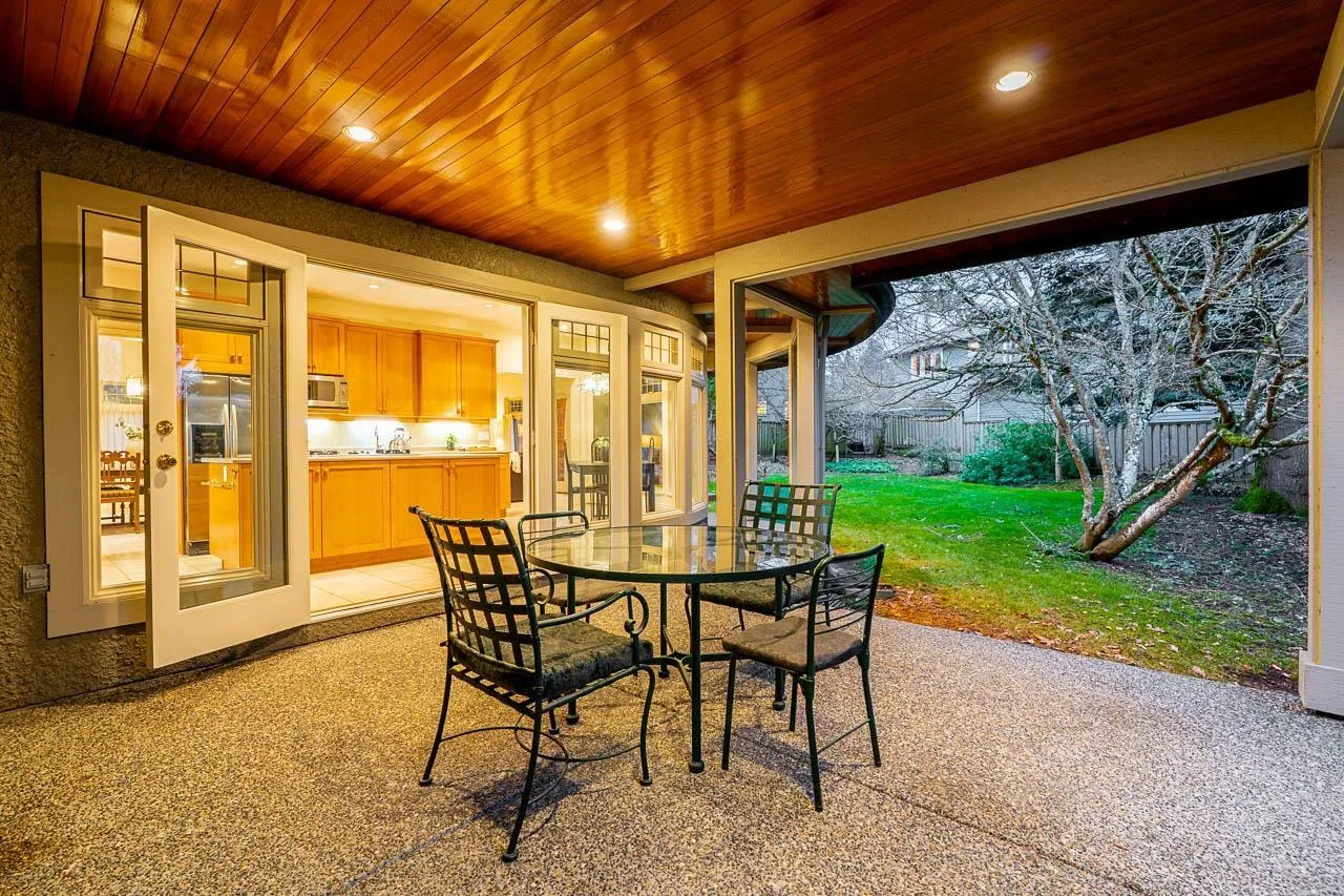 Your dream home has arrived. This stunning residence looks and feels like your very own castle. From the exposed aggregate driveway and striking turret to the elegant round foyer, every detail impresses. The chef inspired kitchen opens to a beautiful curved glass eating area and flows seamlessly to the backyard with a covered exposed aggregate patio, surrounded by professionally designed landscaping featuring apple trees, Stuartia and Japanese gingko. Upstairs you will find an extra large, private primary suite with a five piece ensuite and its own balcony, plus two additional bedrooms and a spacious office or family room. Set in a walkable neighbourhood where you can access everything you need, with school catchments for Ecole Ocean Cliff and Elgin Park Secondary, and just steps to parks, shopping and Ocean Park amenities. (id:27476)
