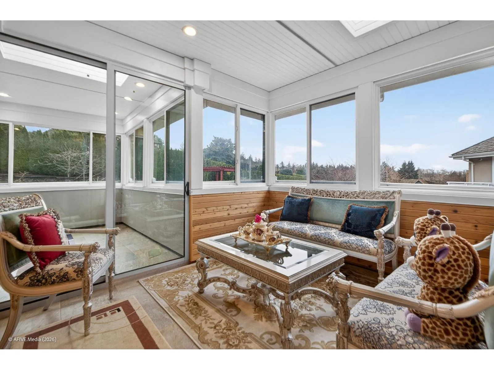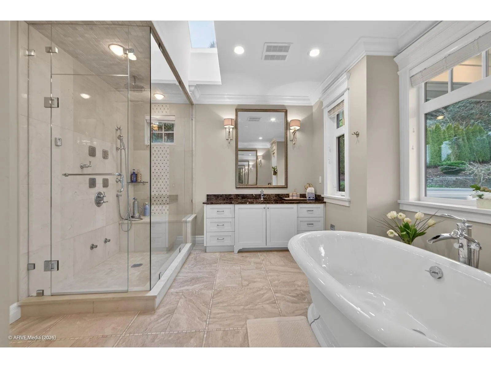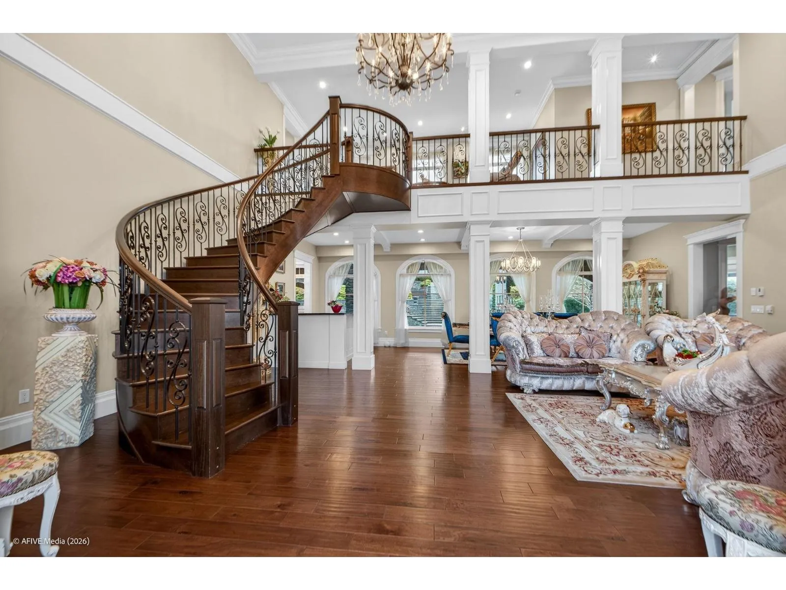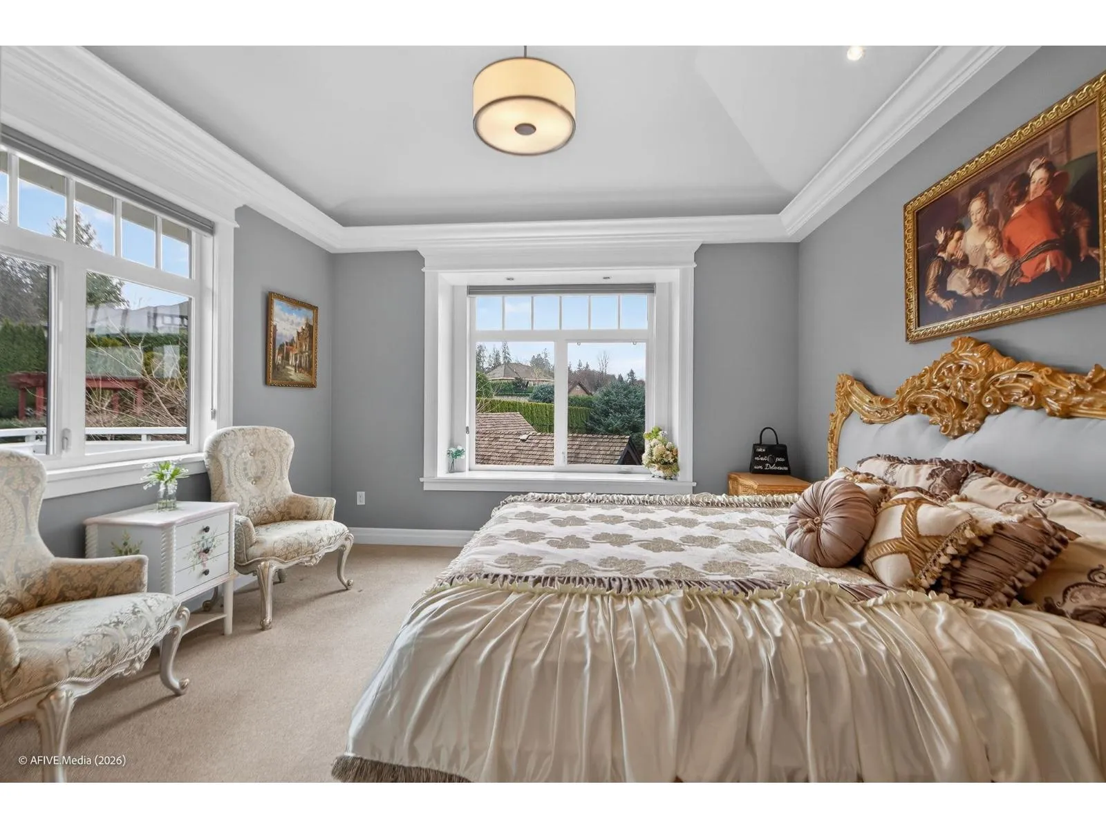 South Surrey Estate perched on a 31,624 sq.ft. south-facing lot at the top of a quiet cul-de-sac. Enjoy unobstructed panoramic mountain views of Seymour, Grouse & Cypress. Impressive 8,103 sq.ft. residence offering 7 bedrooms & 7 bathrooms, plus a 596 sq.ft. 2-bed & 1-bath coach house above a detached 4-car garage. Thoughtfully designed with a wok kitchen, bedroom on the main floor, luxurious primary ensuite plus dressing room, sauna, wine cellar & media room. Bonus 618 sq.ft. open attic area, ideal for a game room or your fashion display. Expansive yard with ample space for boat & RV parking, beautifully maintained landscaping. Walking distance to Southridge private school, Morgan Creek Golf Course & shops. (id:27476)