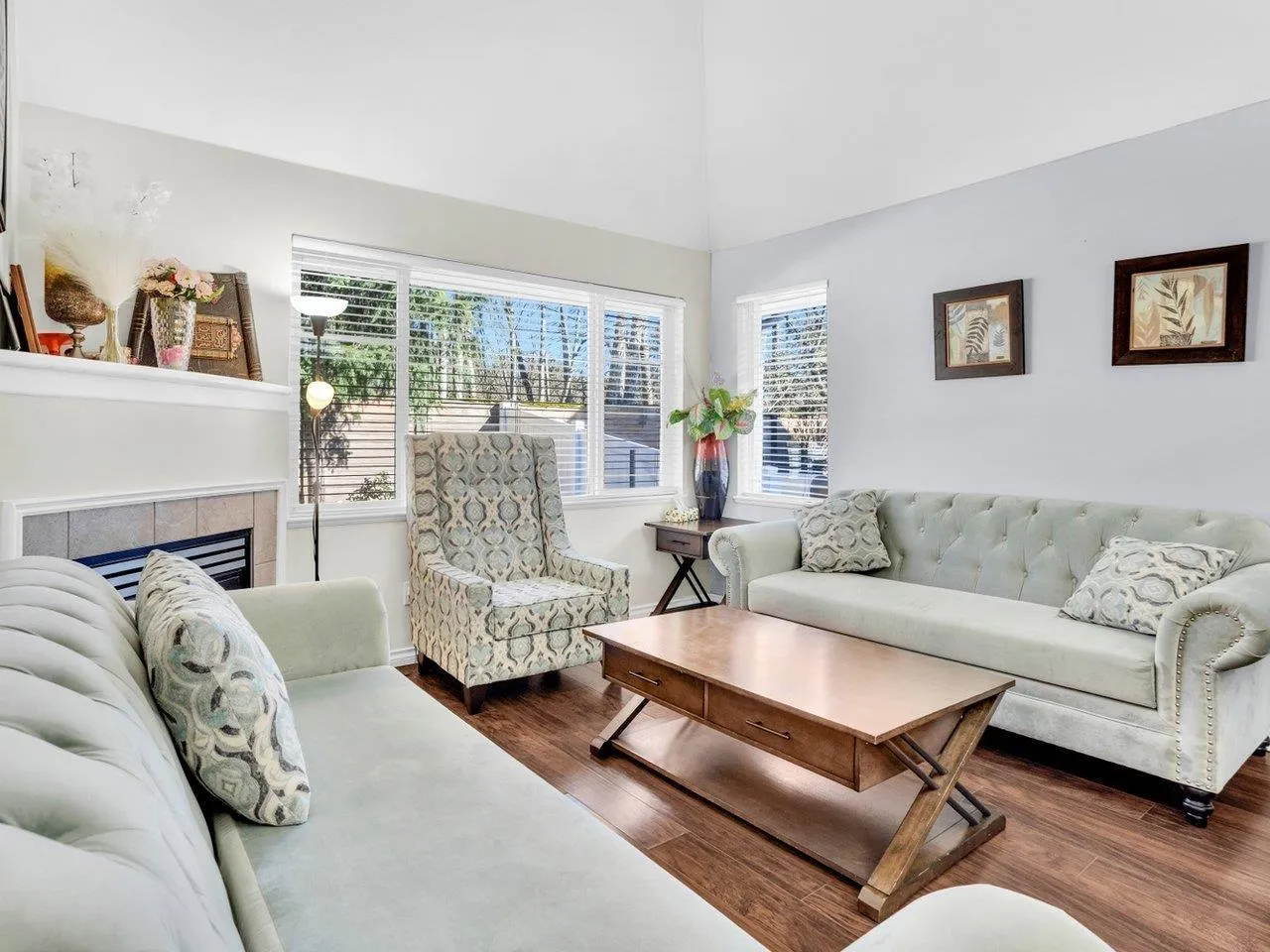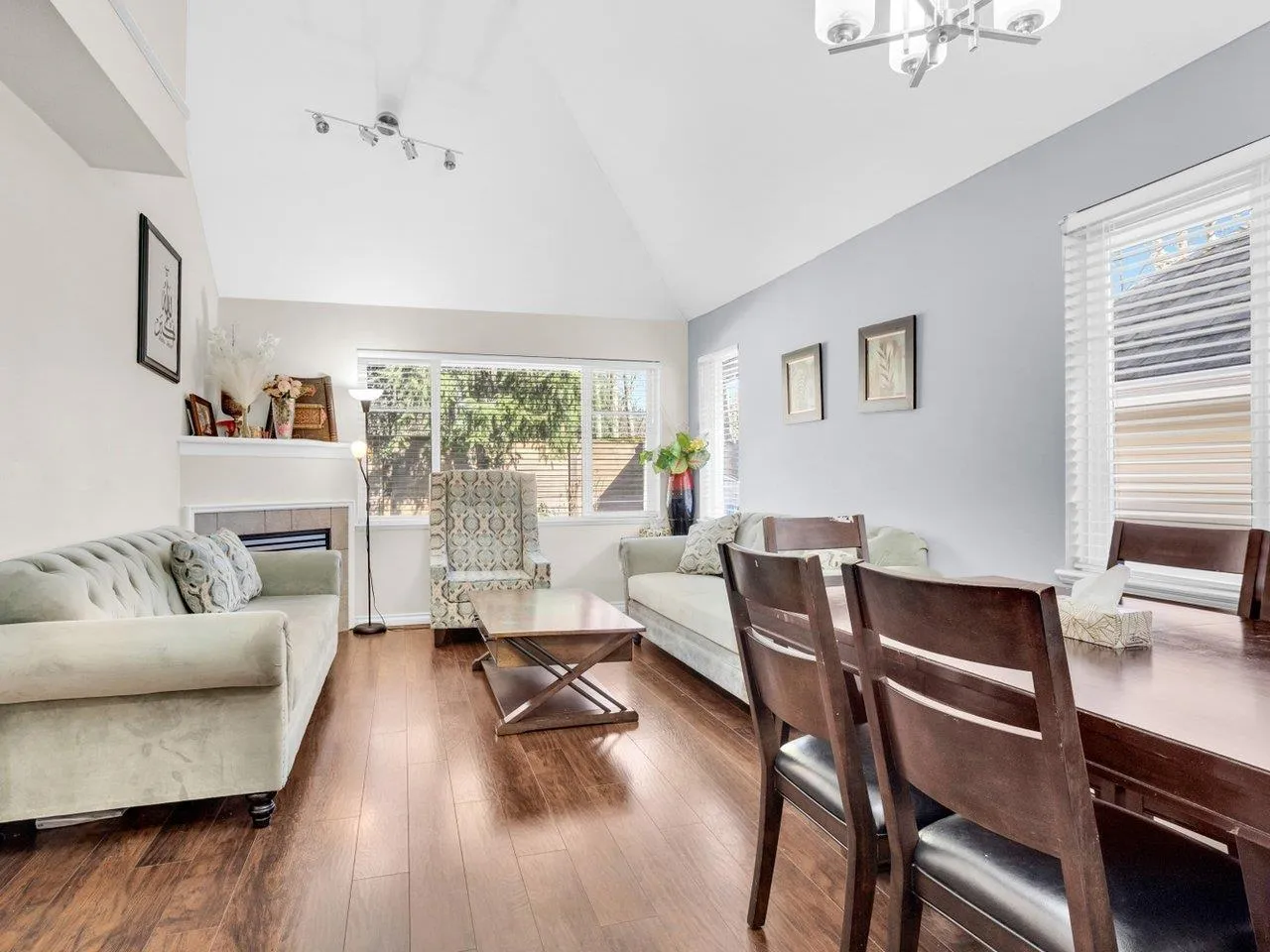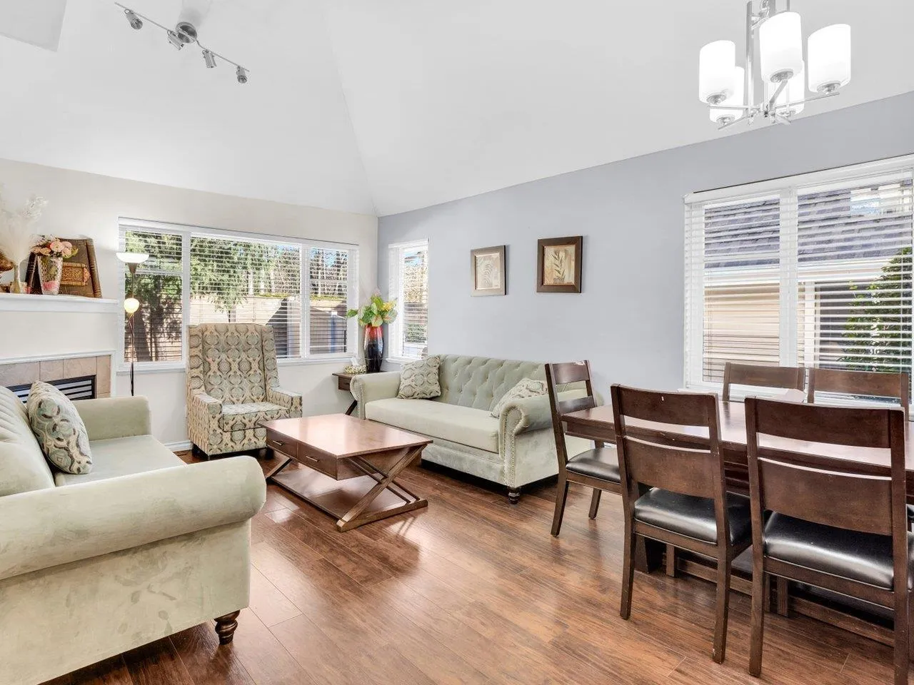 Corner unit townhome offering over 2,300 sq ft of living space. This bright home features 4 bedrooms, 4 bathrooms, a fully finished basement and a private yard. The main living area includes vaulted ceilings and a gas fireplace. The kitchen has a breakfast bar and opens to the family room, making it functional for everyday living and entertaining. Upstairs includes a primary bedroom with ensuite and walk through closet, plus two additional bedrooms. The finished basement offers a fourth bedroom and a large recreation room suitable for a playroom, office, or media space. Large double side-by-side garage. Complex amenities include a children's play area and a community centre. (id:27476)