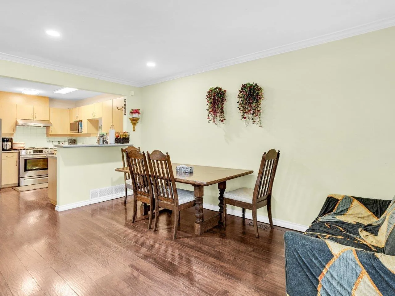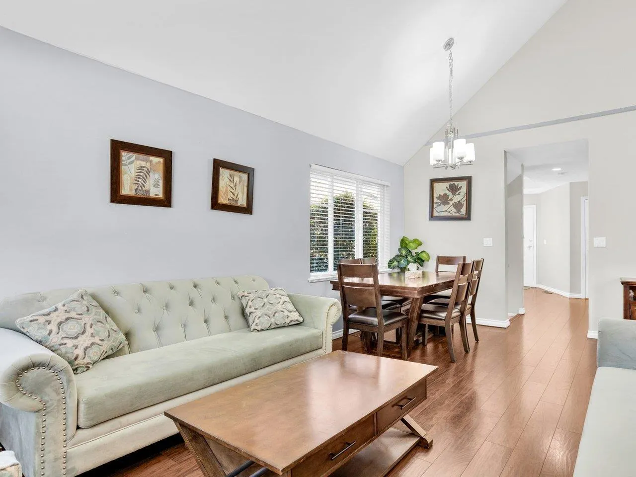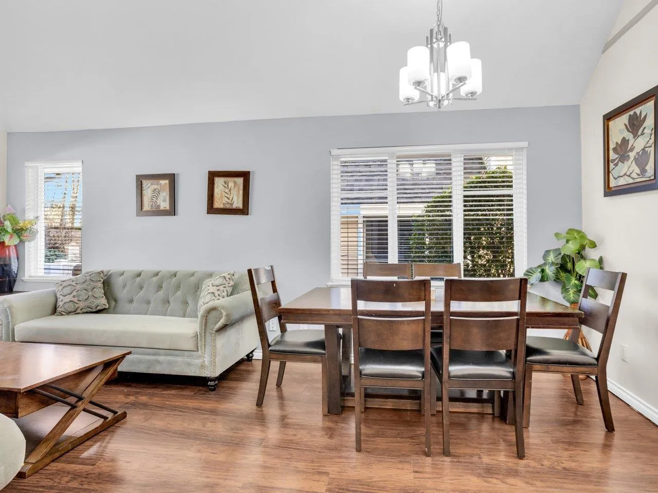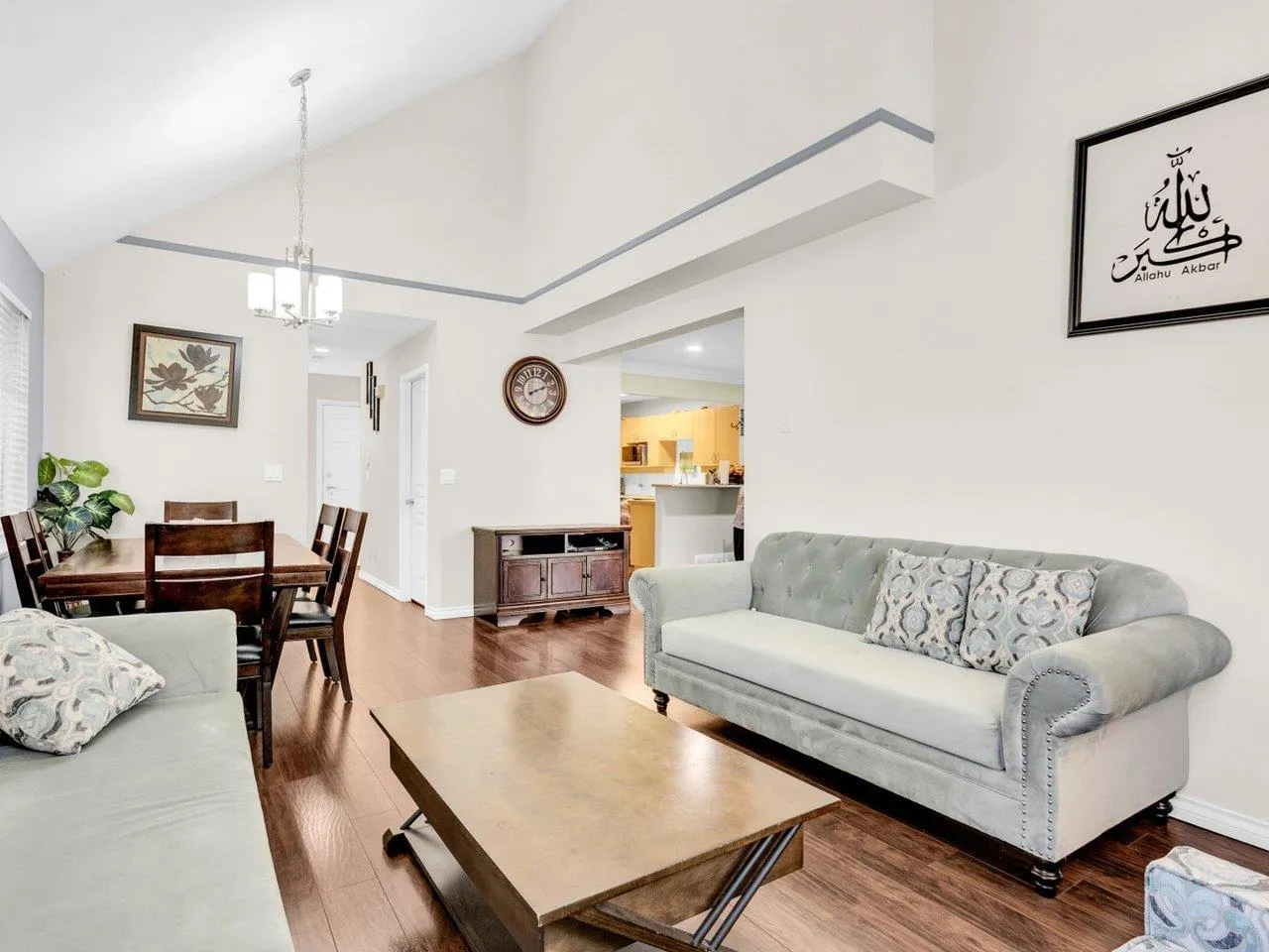 Corner unit townhome offering over 2,300 sq ft of living space. This bright home features 4 bedrooms, 4 bathrooms, a fully finished basement and a private yard. The main living area includes vaulted ceilings and a gas fireplace. The kitchen has a breakfast bar and opens to the family room, making it functional for everyday living and entertaining. Upstairs includes a primary bedroom with ensuite and walk through closet, plus two additional bedrooms. The finished basement offers a fourth bedroom and a large recreation room suitable for a playroom, office, or media space. Large double side-by-side garage. Complex amenities include a children's play area and a community centre. (id:27476)