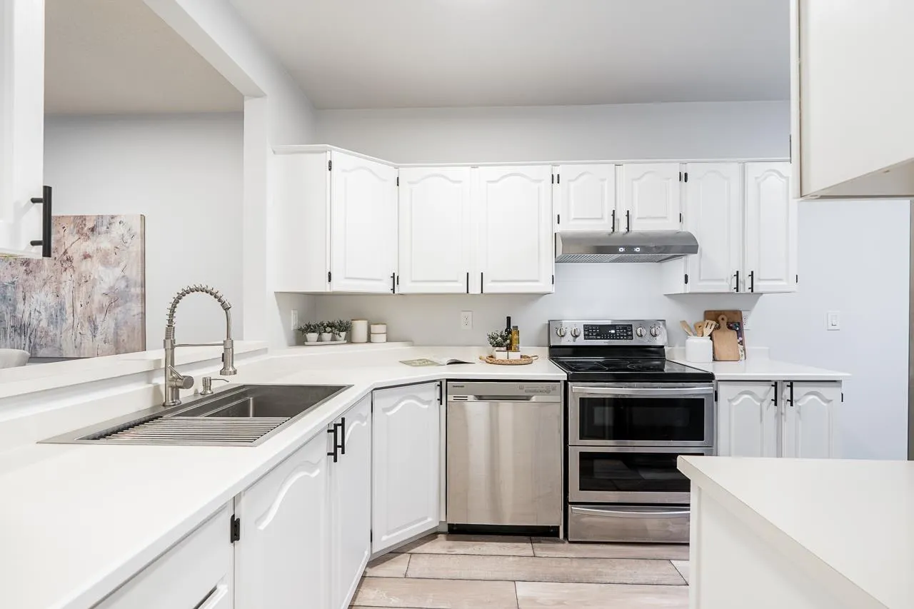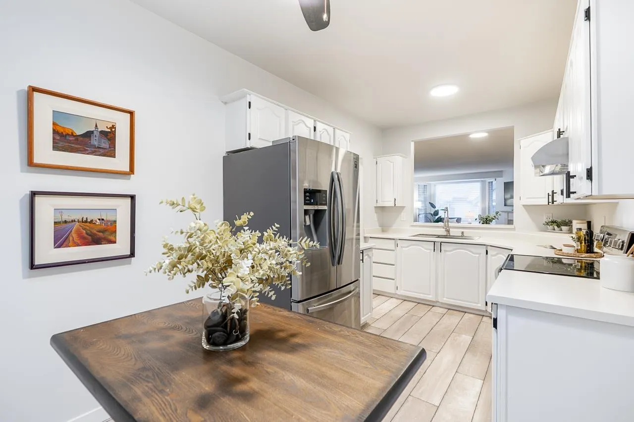 Cambridge 2 - Top floor 2 bed, 2 bath condo offering a spacious 1,451 sq ft layout in a well-maintained building, ideally located near White Rock City Centre but tucked just inside the City of Surrey. This bright, airy home features fully renovated bathrooms, an updated kitchen, and three skylights. The generous floor plan provides excellent separation between bedrooms and plenty of space for full-size furniture. Enjoy the added convenience of a full storage room located on the patio. Quietly positioned yet centrally located, the building is close to shops, restaurants, transit, and everyday amenities. A fantastic opportunity to own a move-in-ready, top-floor condo with size, light, and location all working in your favour. (id:27476)