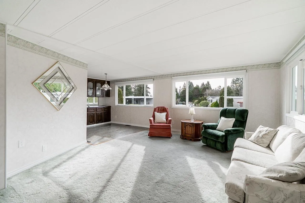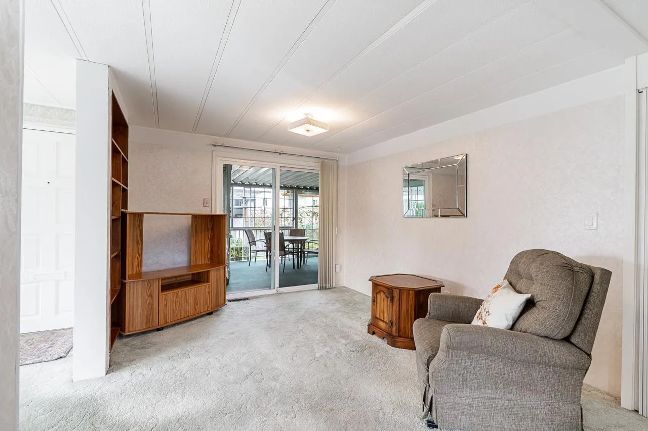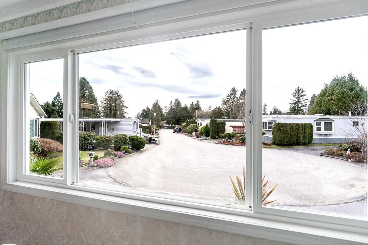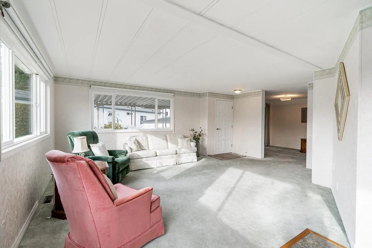 Rare chance to own your land in a desirable Bare Land Strata with no pad rent in a welcoming 55+ pet friendly community near 24th Ave & King George. Peacefully south facing & tucked at the end of the street with lovely neighbourhood views. Bright & tastefully updated rancher style double wide offering 1248 sq ft on a .08 acre lot with 2 beds & 2 baths. Primary suite features a soaker tub & shower. Spacious sun filled living & dining rooms with large windows, cozy TV room, open kitchen with pantry & office, plus separate laundry & mud room. New furnace & heat pump, carport & paved parking for 2 cars, 13x15 closed deck ideal for entertaining, sunny backyard with bonus shed & charming sun shed with swing seats. Just 15 blocks to the ocean & 5 blocks to Morgan Crossing. (id:27476)