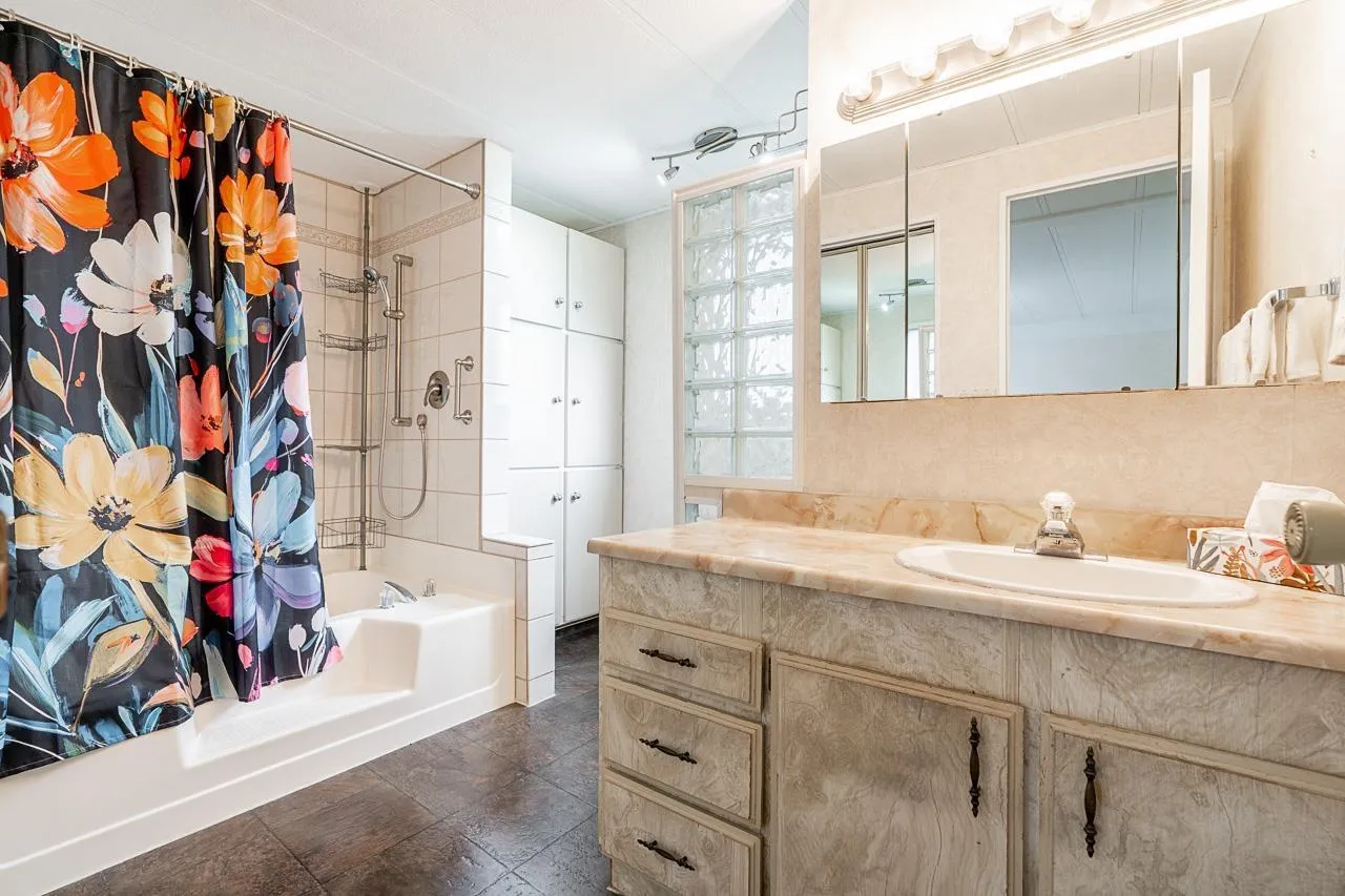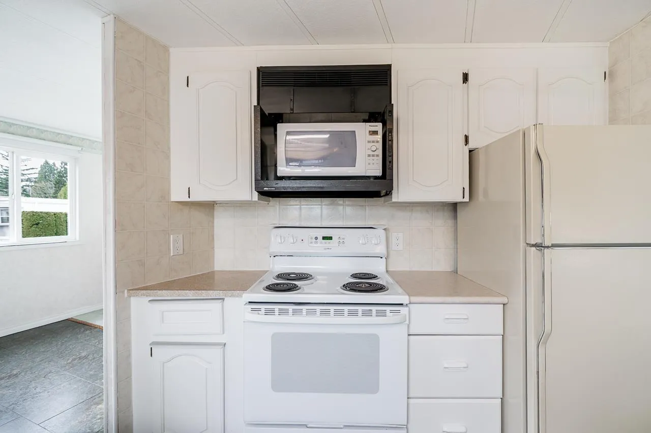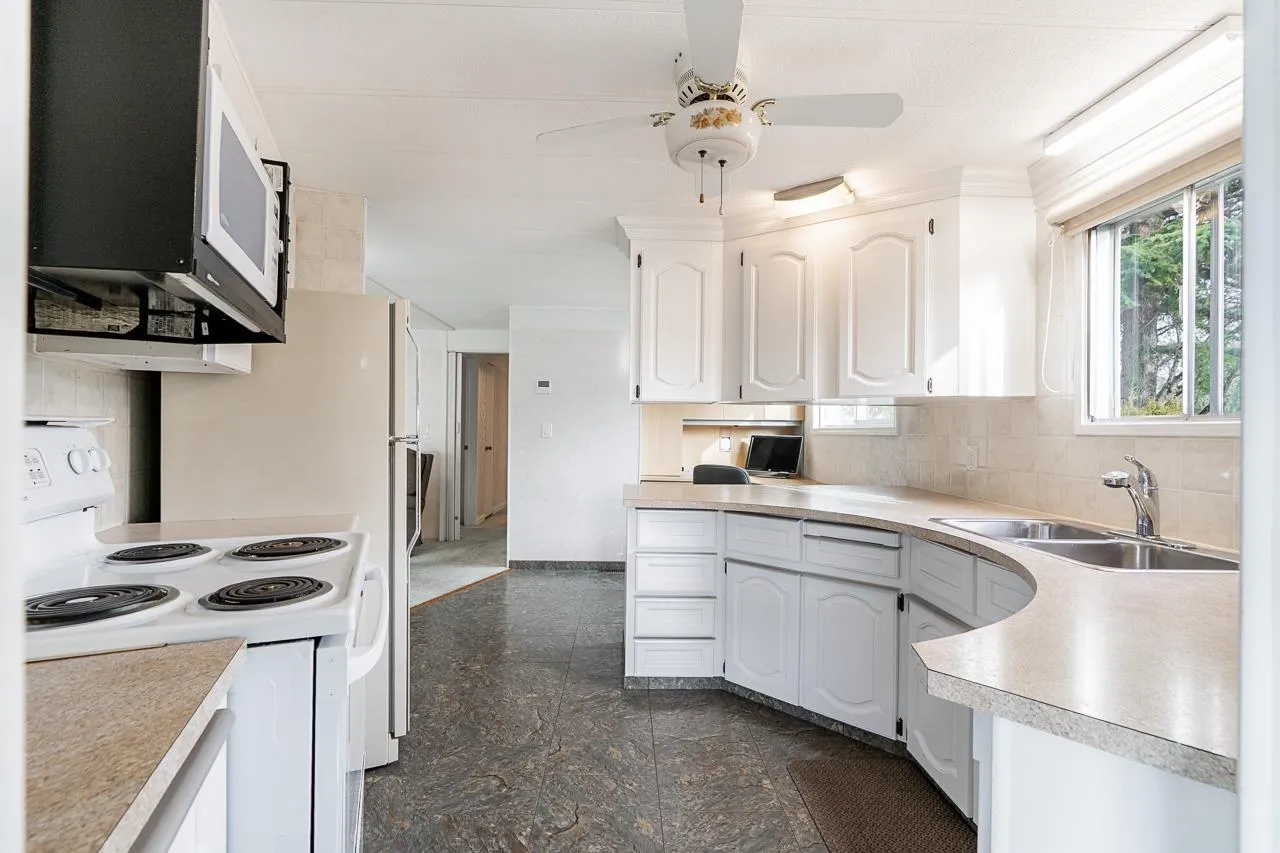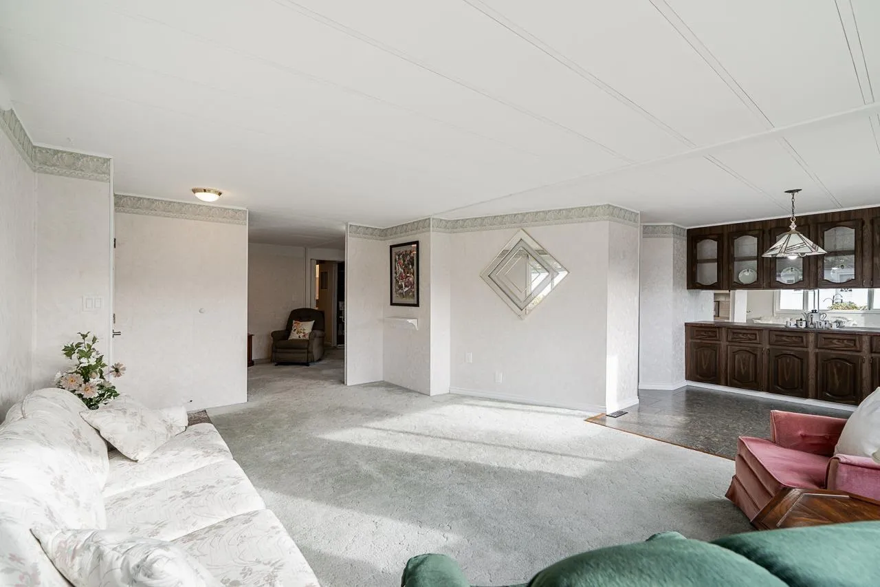 Rare chance to own your land in a desirable Bare Land Strata with no pad rent in a welcoming 55+ pet friendly community near 24th Ave & King George. Peacefully south facing & tucked at the end of the street with lovely neighbourhood views. Bright & tastefully updated rancher style double wide offering 1248 sq ft on a .08 acre lot with 2 beds & 2 baths. Primary suite features a soaker tub & shower. Spacious sun filled living & dining rooms with large windows, cozy TV room, open kitchen with pantry & office, plus separate laundry & mud room. New furnace & heat pump, carport & paved parking for 2 cars, 13x15 closed deck ideal for entertaining, sunny backyard with bonus shed & charming sun shed with swing seats. Just 15 blocks to the ocean & 5 blocks to Morgan Crossing. (id:27476)