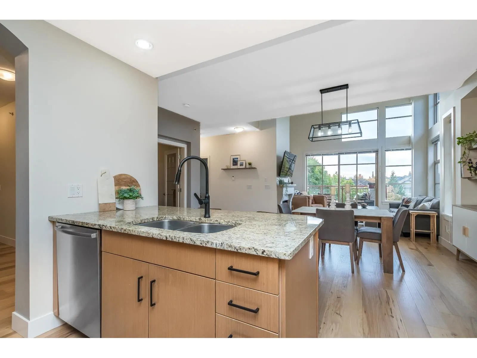 Top floor sought after PENTHOUSE suite w/14 ft vaulted ceilings, ample sunlight & south facing balcony. This spacious 2 bed 2 full bath & den in St. Andrews has so much to offer. RENOVATED with newer hard wood flooring, California closet in primary. Open concept w/ large kitchen & island, ample cupboard space, granite countertops, S/S appliances incl. 1 year old fridge. The primary is bright & airy, boasts a beautiful ensuite & w/I closet. Other features include an office or spare room, good sized 2nd bdrm, large storage locker on same floor as unit, 2 covered parking, proactive strata PLUS RESORT-style amenities incl club house, fireside lounge, POOL, hot tub, theatre, exercise room, games room, guest suite & more)! Gated community, pet friendly, close to golf course, transit & shopping. (id:27476)