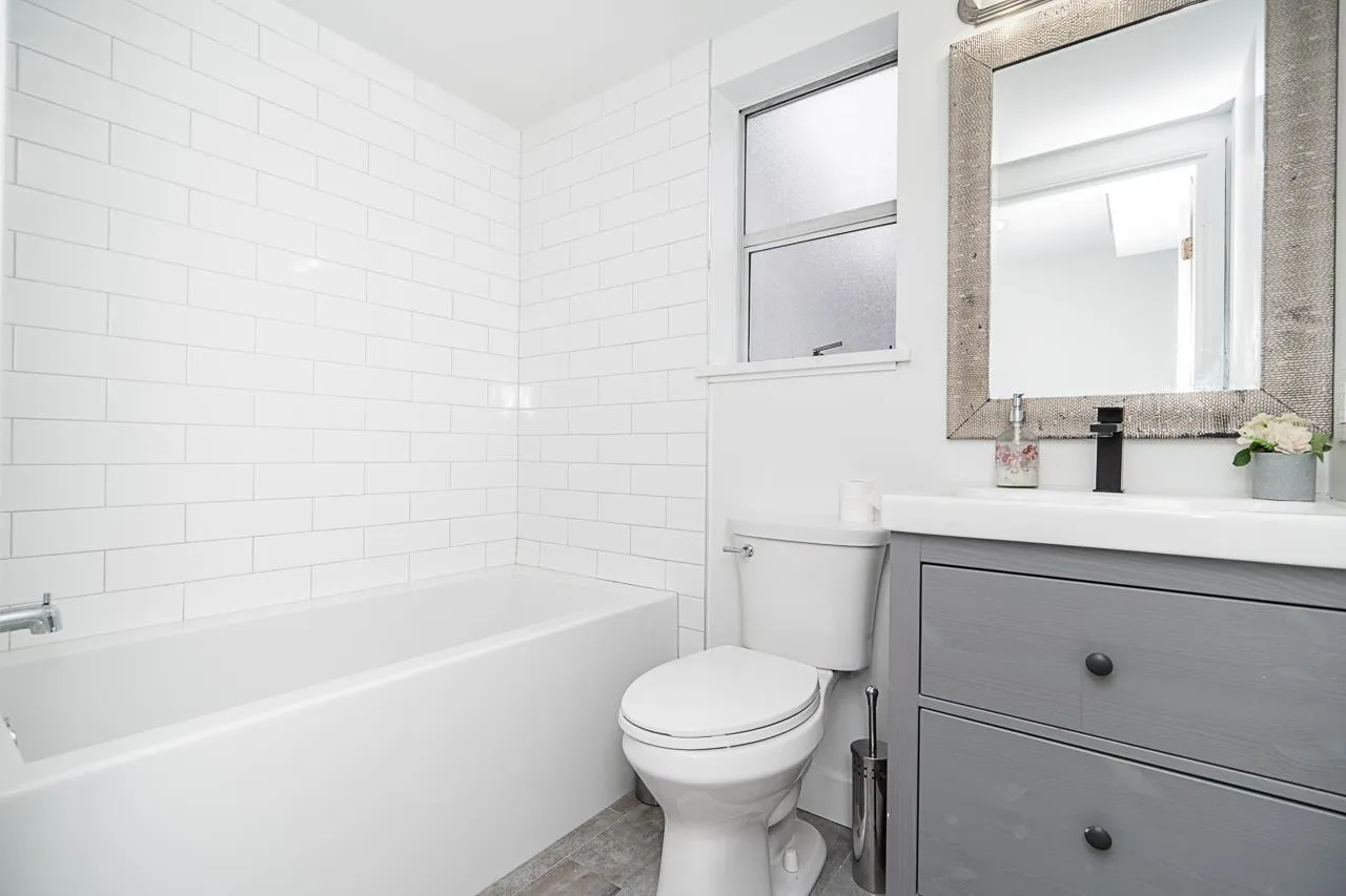 Welcome to this Fully Renovated 4 BED+Huge REC room, 3 Full bath home nestled in popular family oriented neighborhood. Upstairs you have Beautiful Open concept Living/Gourmet Kitchen area with exposed beams. 3 Good size bedrooms w/ 2 Full baths. Downstairs you have HUGE Rec rooms w/ Fireplace, Living room, Kitchen, bedroom and Full bath with 2 separate ground level entrances. Possible to make 2 suites 1 bdrm each. Large sundeck overlooking private eastern exposed backyard with views of Mt Baker. Recent updates include all new bathrms, New Flooring, New lighting fixtures, vinyl deck(6yrs),Roof(10yrs) & the list goes on. Centrally located with walking distance to Sunrise Ridge Elementary, parks, shops & transit. (id:27476)