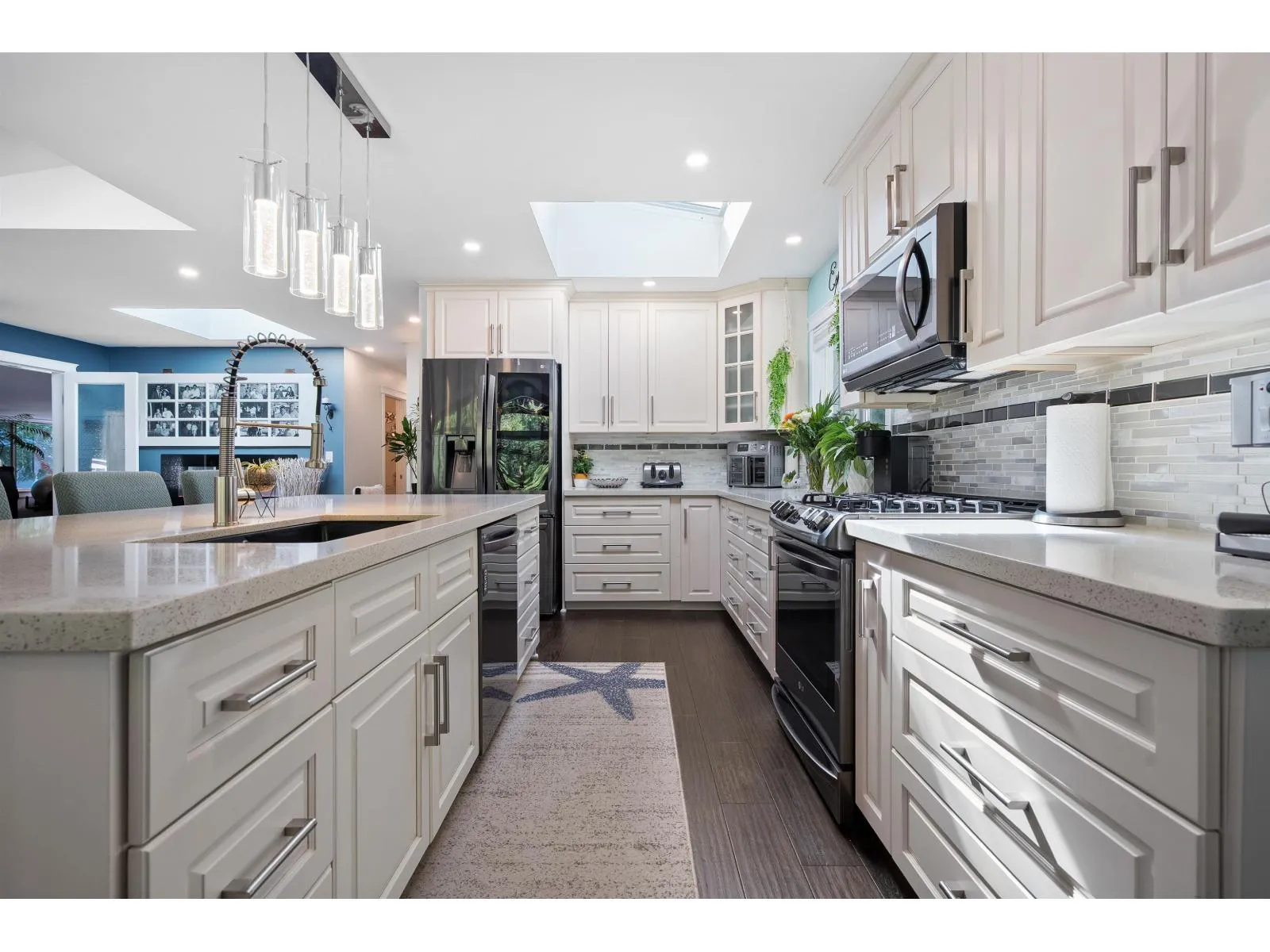 A Breakaway Bays Gem! Located minutes from Whiterock beach. This beautifully upgraded 2-bedroom, 3-bathroom home boasts 1,676sq.ft and is one of the largest homes in the complex. Greeted by vaulted windows that flood the space with natural light. This unique Open concept floor plan features new engineered hardwood flooring, stone countertops, high end S/S appliances, new heat pump, fresh paint, functional blinds and so much more.Each spacious bedroom includes its own private en suite, offering ultimate comfort ,privacy and ample closet space. The home includes 4 parking, two decks, 1 patio, 2 storage sheds and impressive landscape. Shopping, parks, restaurants, schools, and transit are at your door step. This home combines convenience, and lifestyle in one perfect package. (id:27476)