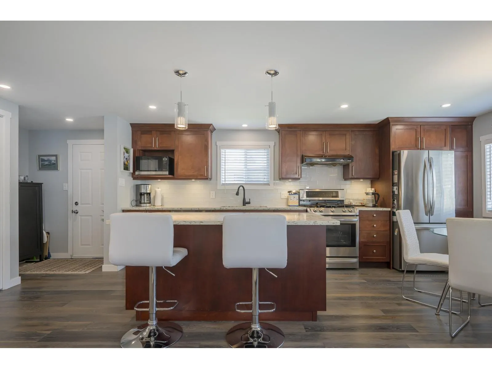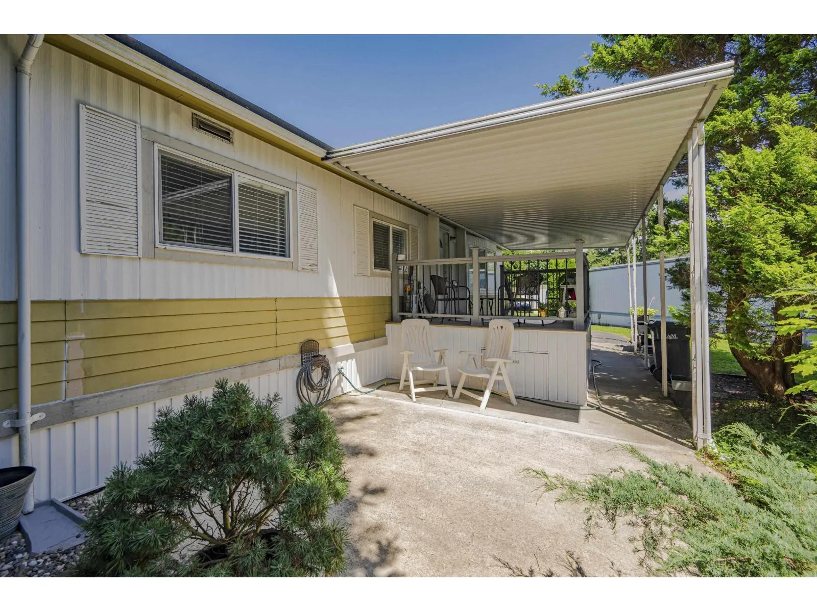 Breakaway Bays, a great community for retirees and families. This renovated home is nestled in a peaceful cul-de-sac steps to the Clubhouse and outdoor heated pool. 2 bdrms, 2bths, spacious open concept living area with large island! Great space to entertain! Large covered sundeck, 7' X 7' new shed, fantastic amenities, including an outdoor heated pool, activity hall for socials, green spaces for relaxation and recreation. With no age restrictions and a welcoming 2 pet policy (Max height 17" at withers) everyone can feel at home here. just a short 5-minute drive to the beach, major shopping centers, and the U.S. border. Recent updates in the last 6 years: furnace/fridge/gas stove/dishwasher. 2025 Updates - New Hot Water tank & Silver Label, Electricity is included in the pad rent! (id:27476)