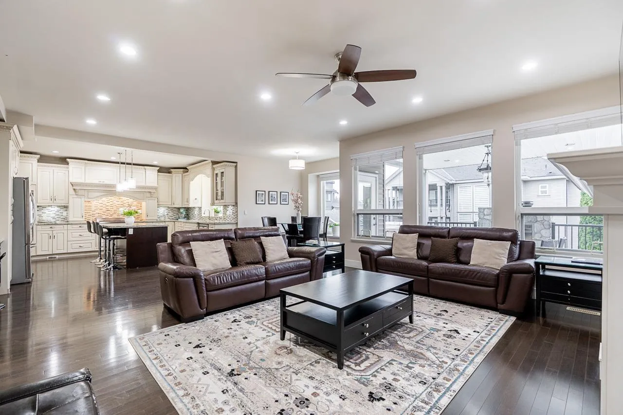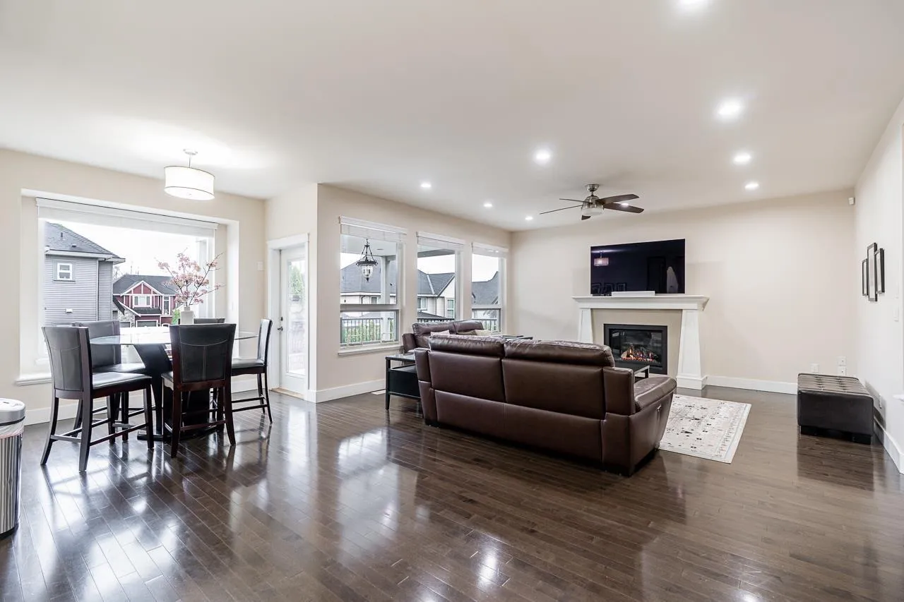 This custom-built home in Cloverdale stands out with thoughtful upgrades such as A/C & quality finishings. The main floor is bright & open with 10' ceilings. The kitchen boasts a gas cooktop, antique white cabinets, granite countertops, S/S appliances & large island, perfect for gatherings. The living & dining area seamlessly flows out to a huge covered patio w/a outdoor Napoleon fireplace, great for BBQs. Upstairs, a spacious prim bdrm w/spa like ensuite & large walkin closet, w/private access to a covered balcony. In addition to 3 generously sized bdrms & main bathrm. Downstairs a theatre room, perfect for teens. The fully fenced, south-facing backyard is perfect for year-round entertaining. Close to shopping, recreation & parks. (id:27476)