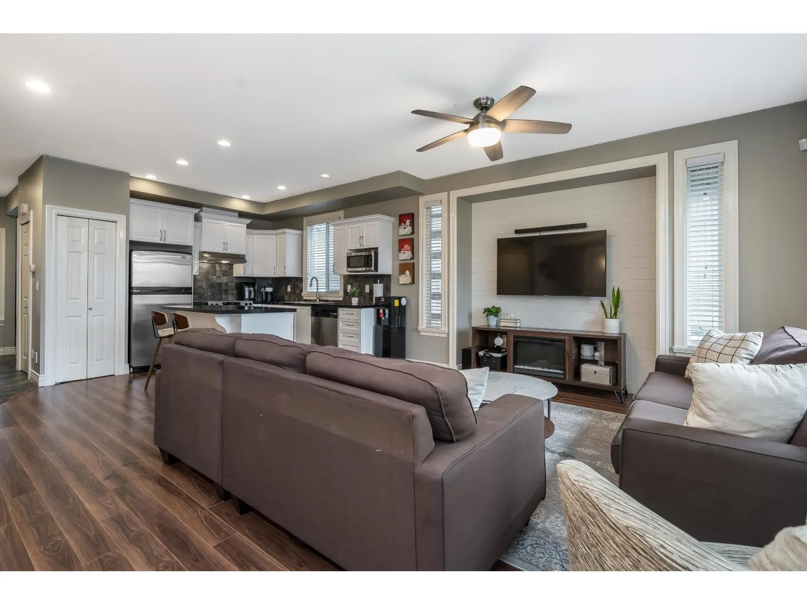 Rarely available reverse floor plan home in the heart of Clayton, built by Italian builder MOSCONE! Features a gourmet kitchen with freshly painted cabinets, granite counters and stainless steel appliances, plus an open-concept main floor with a den. New composite decking backs onto the Katzie Greenway greenbelt. The primary bedroom offers a walk-in closet and a spa-like ensuite with separate tub and shower. New flooring in both upstairs bathrooms. One-bedroom basement suite with separate entry and own laundry. Detached coach home also has private laundry. In Katzie Elementary and Clayton Heights Secondary catchment. (id:27476)