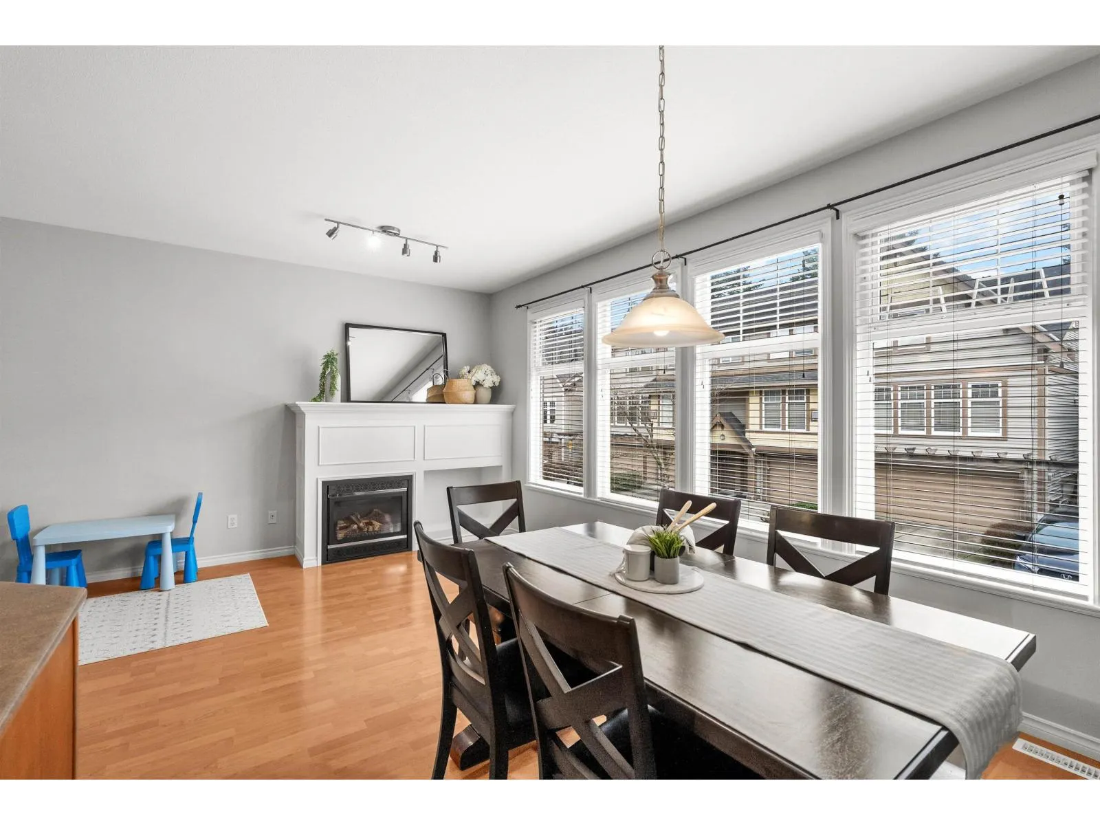 Townhouse living without compromise! This 4 bed, 3 bath home in Hillcrest Place, located in Cloverdale, offers space, comfort, and convenience in a walkable neighbourhood close to schools, parks, shopping, and future SkyTrain access. Rare parking for 4 cars provides flexibility for multiple drivers or option to create the garage home gym you've always wanted. This home feels move-in ready with newer laminate flooring throughout, fresh paint, brand new carpet on the stairwells, maple shaker cabinets, s/s appliances and AC! Spacious primary suite with a walk-in closet and additional storage. Walk-out patio with easy access to green space perfect for kids & pets. The 4th bedroom offers versatility as a home office, gym, or rec room. Walking distance to both elementary and secondary schools! (id:27476)
