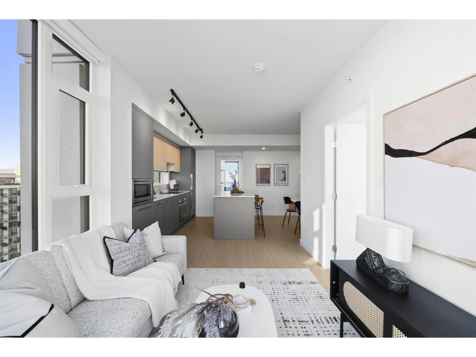 Discover elevated urban living at PLAZA TWO by PCI Developments. This bright WEST facing unit showcases floor-to-ceiling windows, sleek integrated kitchen, spa-inspired bath, large entertainer's patio, insuite COOLING & the BEST LAYOUT in the tower! Amazing Amenities : Full-time Caretaker, Rooftop Lounges w/ BBQs, Kids' Play Area, Co-working & Library Spaces, Theatre & Fitness Centres. Live in the heart of it all! Steps to SkyTrain, Save-On-Foods, Rexall, Browns Socialhouse, Central City Mall, T&T, SFU & Kwantlen campuses. Style, comfort & convenience come together right here at the King George Hub. (id:27476)