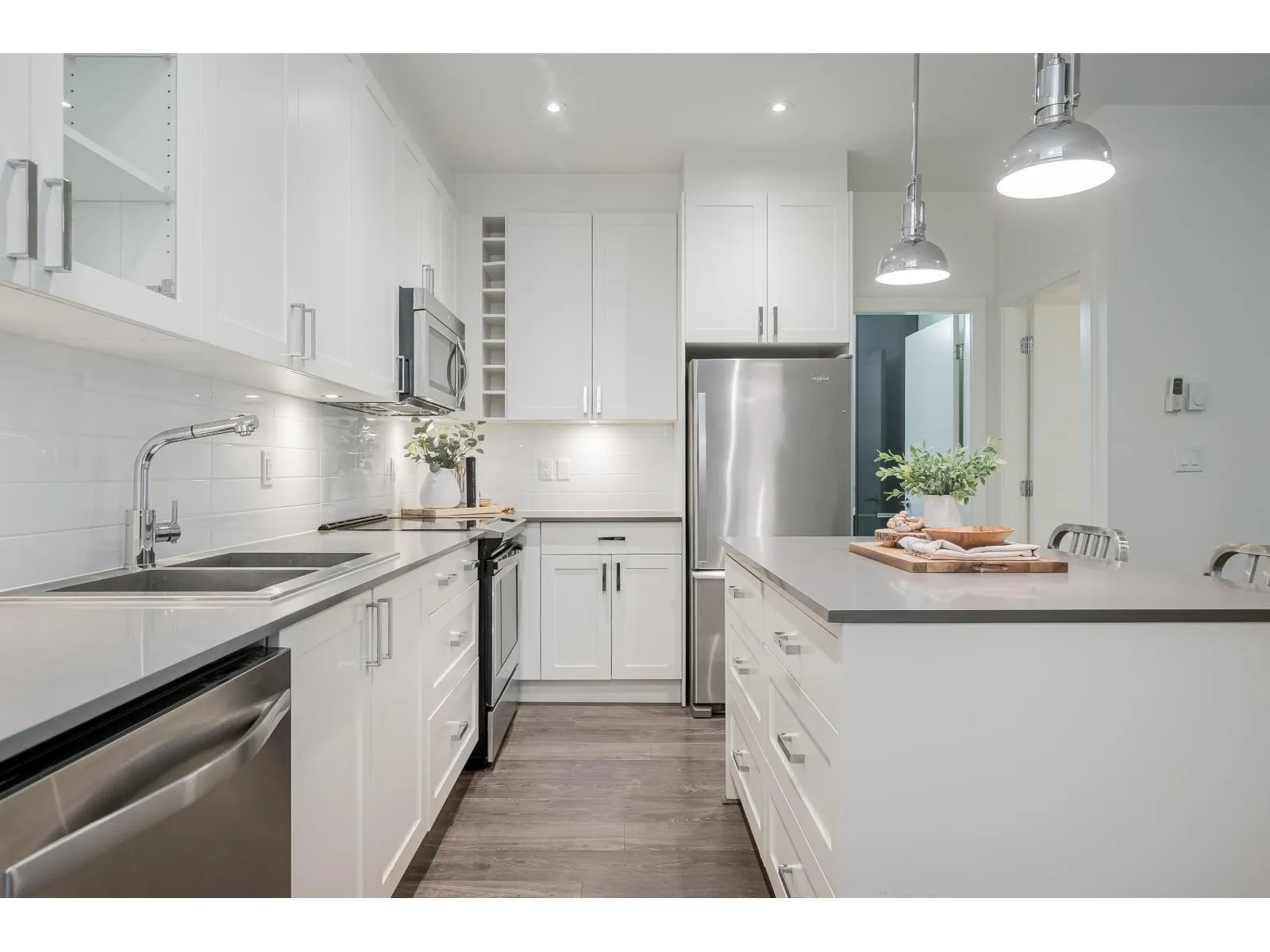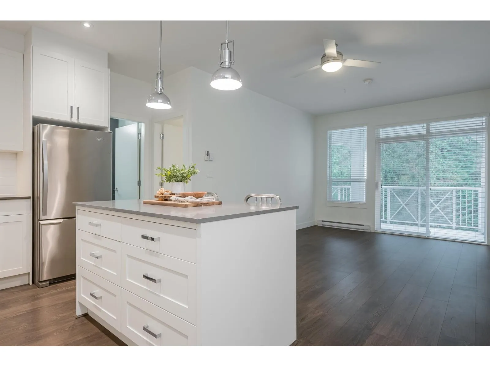 Wake up to forest views at The Ridge at Bose Farms! This private, south facing 846 sqft, 2 bed, 2 bath condo offers a bright, open-concept layout designed for both comfort and style. The modern kitchen features stainless steel appliances, quartz countertops, and an oversized island. Opposing bedrooms provide maximum privacy. Enjoy the convenience of in-suite laundry and unwind on your spacious, fully covered balcony overlooking the serene Bose Forest Park. Resort style living with great amenities, heritage barn clubhouse with valley views, garden plots, playground, gym, yoga studio, craft room, library, theatre and more. Located close to parks, transportation, schools, easy access to Hwy 10, Hwy 15 and Fraser Hwy. (id:27476)
