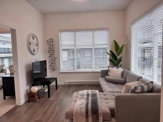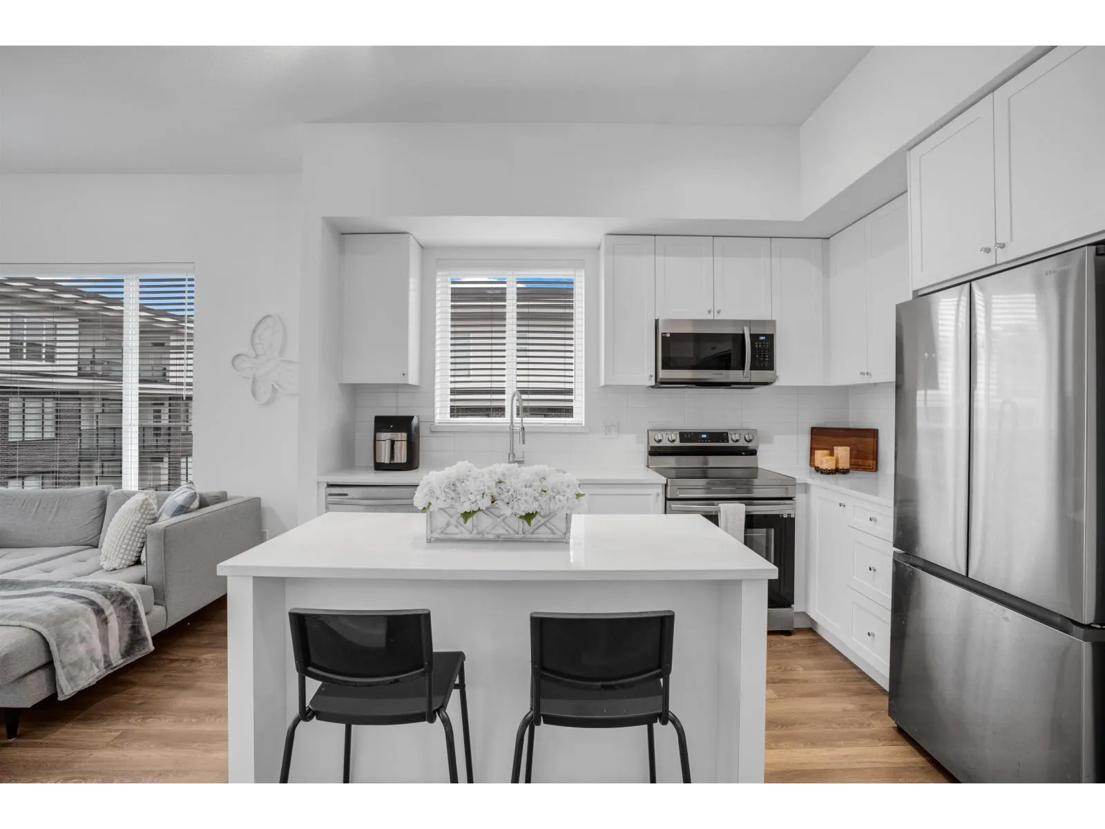 Welcome to your new home in Fleetwood Village, Surrey! This 3-year-old 3-bedroom, 2-bath upper unit by Dawson Sawyer features modern stainless steel Samsung appliances, quartz countertops with island, soft-touch cabinetry, and a spacious open-concept living and dining area. Enjoy hardwood laminate flooring with cozy bedroom carpets. The community offers 36,000+ sq. ft. of exclusive indoor and outdoor amenities, including an exercise centre and garden. Comes with 1 parking, 1 storage, and 2-5-10 home warranty. Located in Surrey's vibrant town centre-steps to Walnut Road Elementary, Fresh St. Market, Fleetwood Park Village Shopping, Fraser Highway, shopping, dining, entertainment, and the future SkyTrain station. Don't miss it! OPEN HOUSE Sat-Sun 2-4pm. (id:27476)