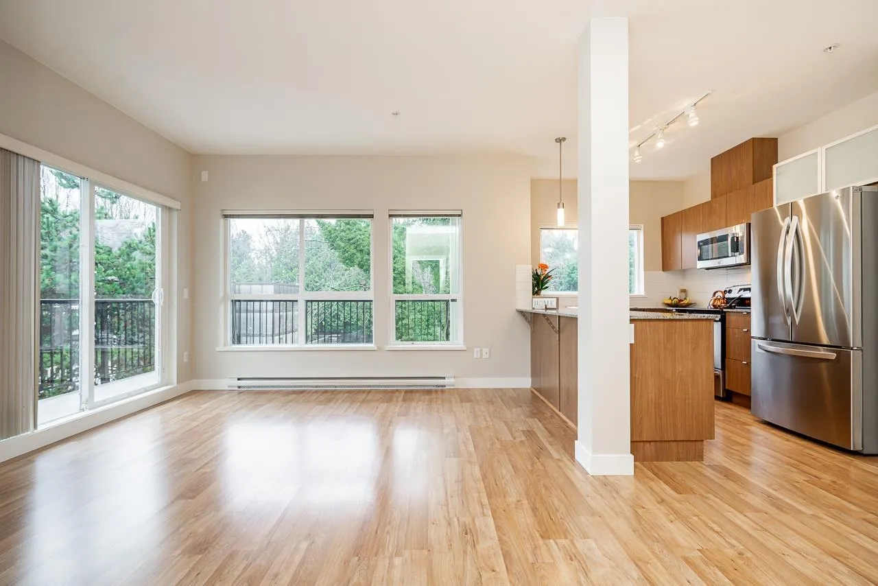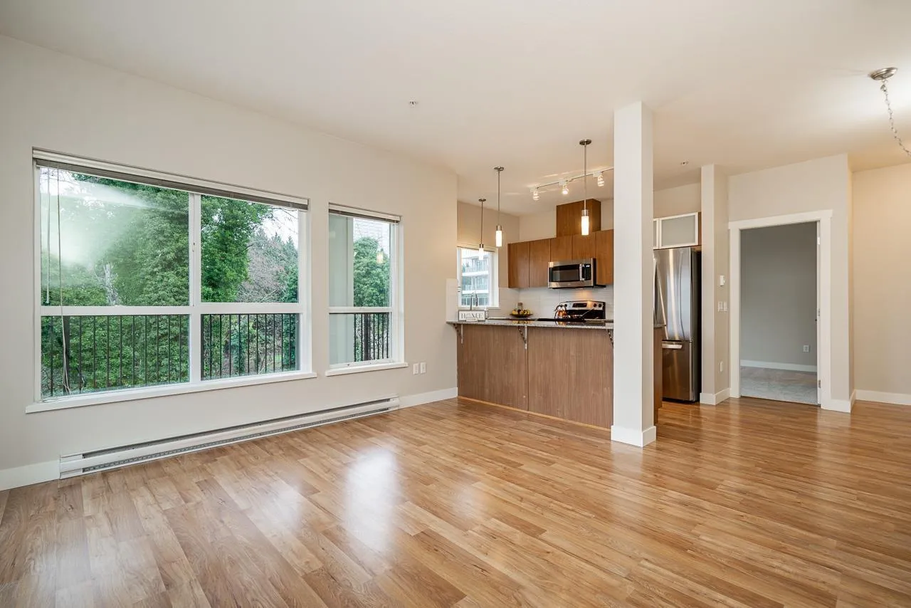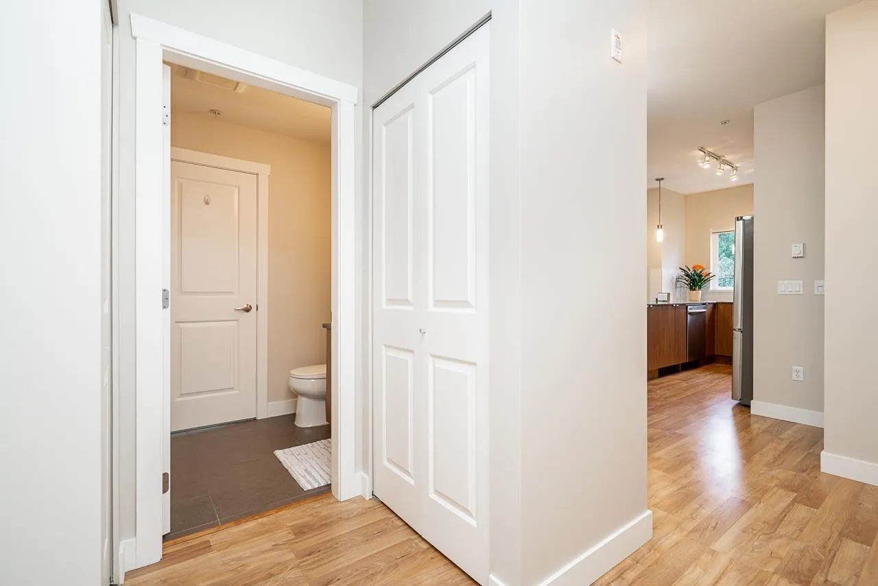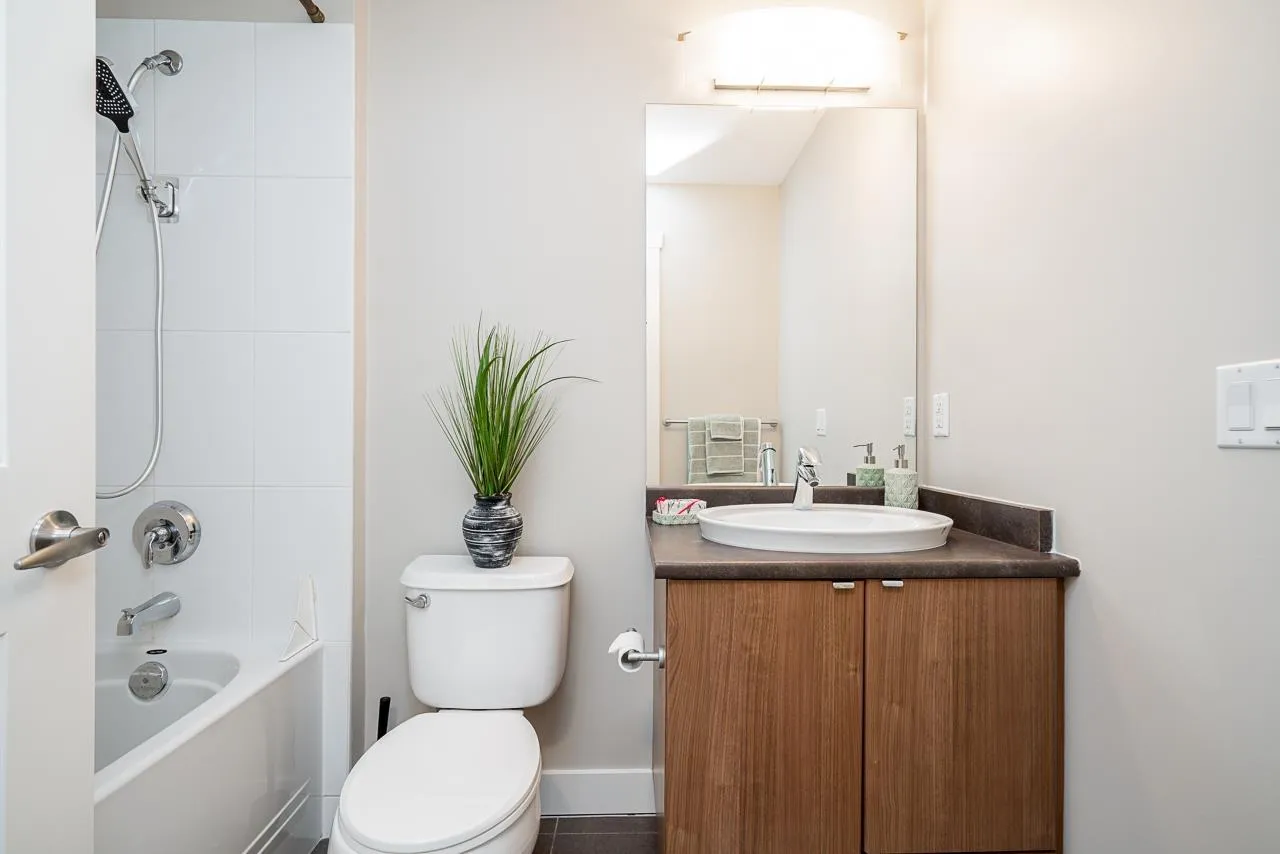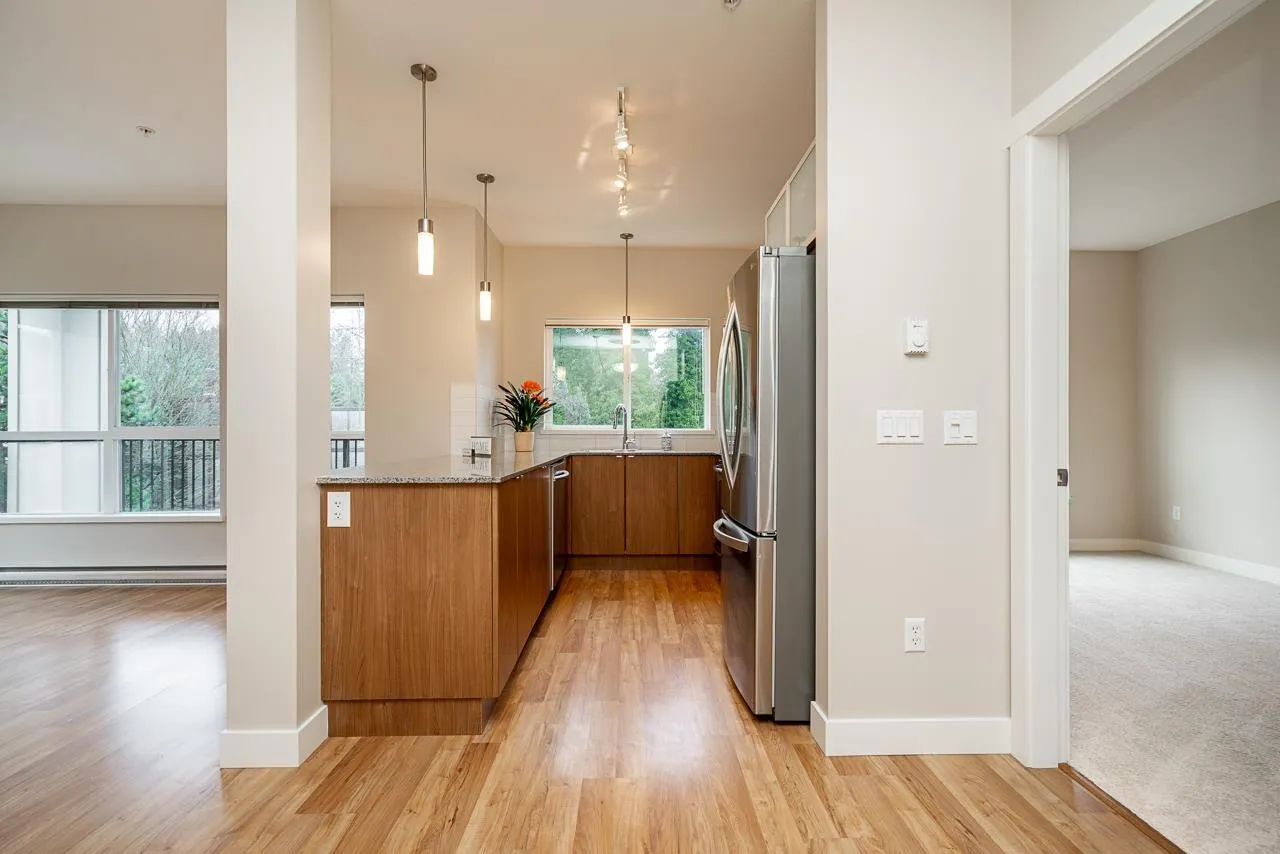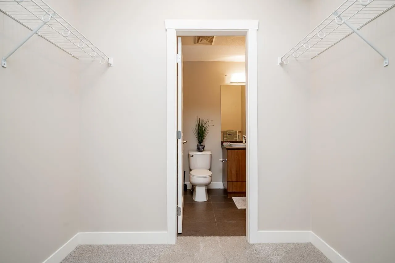 Hurry to view this spotless, quiet, corner apartment at GRUV. Like new condition, both bdrms are spacious & both have their own bathrooms. Large wrap around covered NW facing balcony overlooking peaceful greenbelt. S/S appliances,fridge & dishwasher less than 2 years old, granite countertops, new carpets in bedrooms & fresh interior paint throughout. Open plan with breakfast bar, window in kitchen with plenty of natural light. Walk through closet in primary bedroom.Updated washer/dryer. Gym & amenity room, central hot water. Plenty of visitor parking with ample EV outlets. Walk to King George Station, SFU, Central City Mall, Holland Park & Surrey Memorial Hospital. Possession anytime. Underground secure parking & bike area. Pet friendly. Competitive price you won't be disappointed. (id:27476)