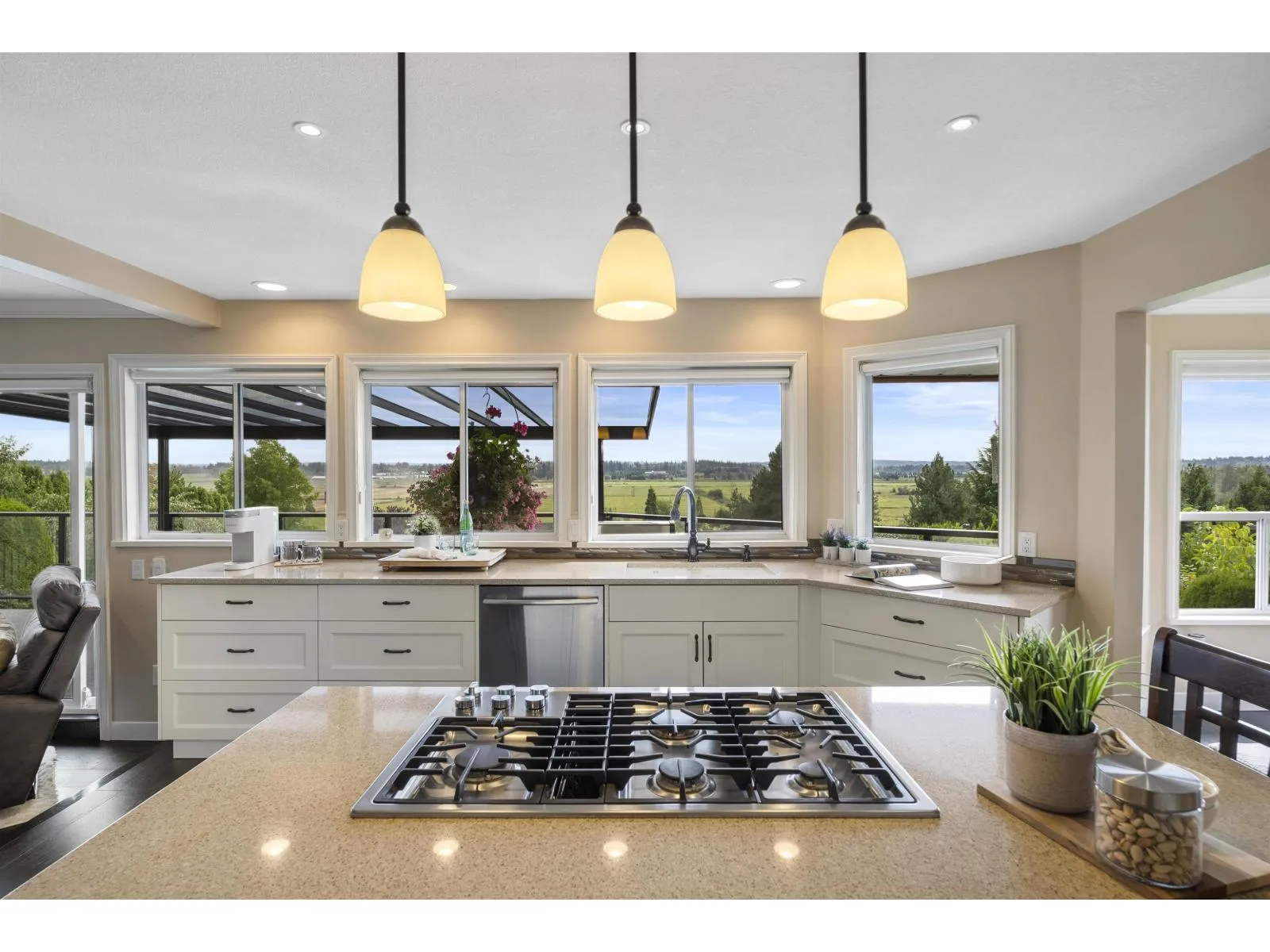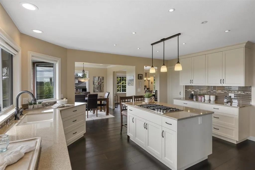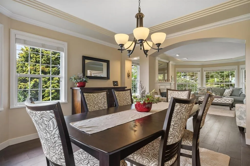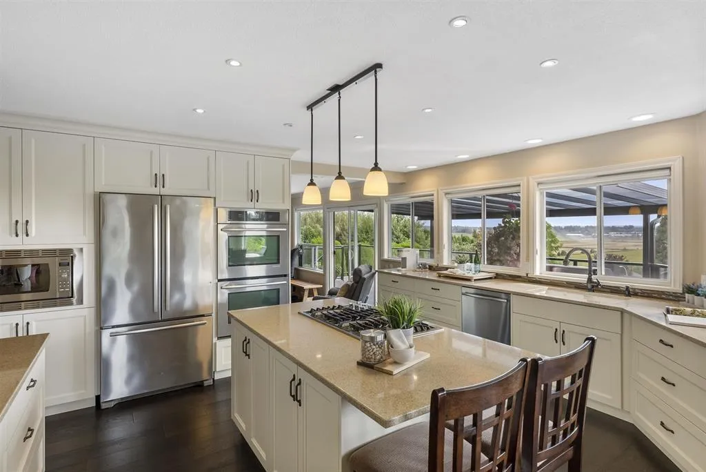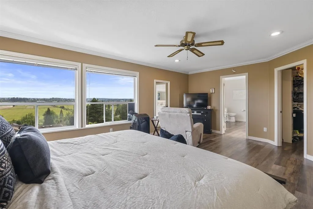 Palatial 6BR 4.5BTH in prestigious Coast Meridian Estates. This luxurious 4,800 sqft residence sits atop a tastefully manicured 12,000 sqft+ corner lot w/ 3car garage & expansive driveway. French doors open into a bright & airy foyer drawing you into elegant, refined spaces w/ thoughtful details throughout. Your chef-inspired kitchen features crisp, granite counters alongside stainless steel Jenn-Air appliances & a walk-in pantry. Enjoy unobstructed views of Northview Golf, Serpentine River Valley & Mt Baker from the comfort of your sprawling, 442 sqft covered balcony or your spacious primary bedroom boasting an enviable, spa-like ensuite. Updated ground level 2BR 1BTH w/ sauna below leads to a private, south-facing backyard w/ in-ground pool - perfect for in laws or as a mortgage helper. (id:27476)