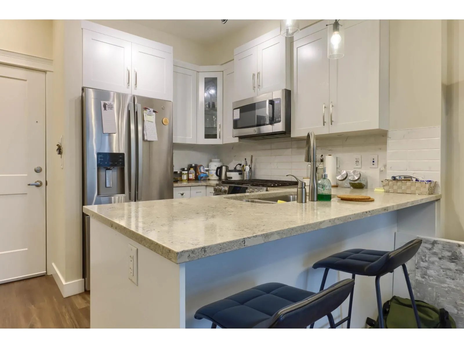 Experience luxury living at Ledgeview by Quadra Homes! This 1-bedroom, 1-bathroom condo in Whalley offers a bright, modern layout with air conditioning, quartz countertops, a gas range, shaker-style cabinets, and high-end appliances. Triple-glazed windows, 9-foot ceilings, heated bathroom tiles, and oak-toned finishes add sophistication. Enjoy a west-facing patio, secure underground parking, and resort-style amenities, including a gym, party hall, rooftop patio with mountain views, playground, and more. Pet and rental-friendly. Month-to-month tenancy in place. (id:27476)