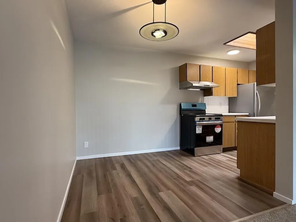 Top Floor with East facing Sunrise exposure. Beautifully updated 1 bedroom condo in the heart of Surrey! This spacious floorplan has bright, well-lit rooms with large windows, a kitchen skylight, Napoleon gas fireplace plus a private covered balcony-perfect for relaxing or BBQing. Features large primary living area, lots of storage and a walk-in laundry room. Gas and hot water included in strata fees. Located just minutes from Surrey Memorial Hospital, Save-on Foods, King George Station, T&T market and Walmart. A great opportunity for first-time investors or anyone looking to downsize to a central location with a view! (id:27476)