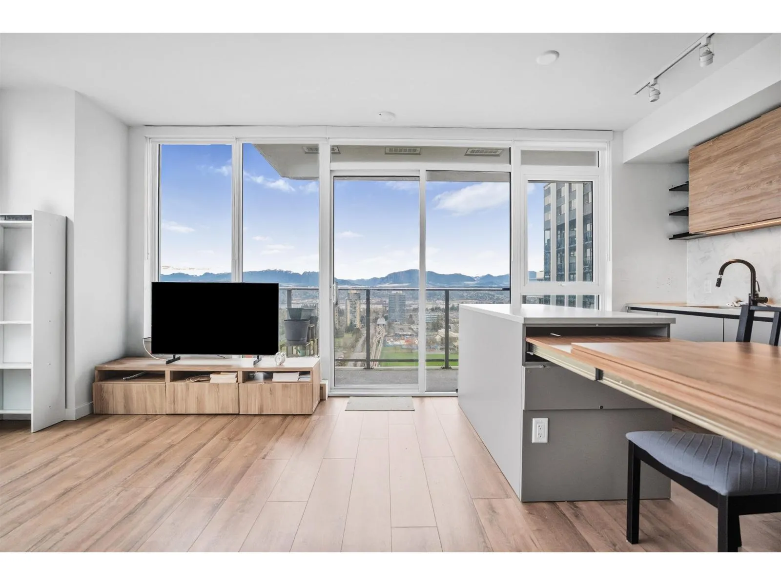 Built by renowned Bosa Properties, welcome to the best corner unit in the building! This 2 bedroom, 2 bathroom home offers bright north-west exposure with sweeping views and natural light throughout. The sleek, modern kitchen features quartz countertops, premium appliances, & an expandable dining table and featuring two balconies-a private balcony off the primary bedroom and a balcony extending from the main living area. This unit includes 1 parking stall & 1 storage locker. Residents enjoy access to a six-storey amenity building featuring a fitness centre, spin and yoga studios, outdoor pool with BBQ area, multiple meeting rooms, quiet workspaces, and a 24-hour concierge. You're just steps from the SkyTrain, shopping, dining, and top educational institutions including SFU and UBC. (id:27476)