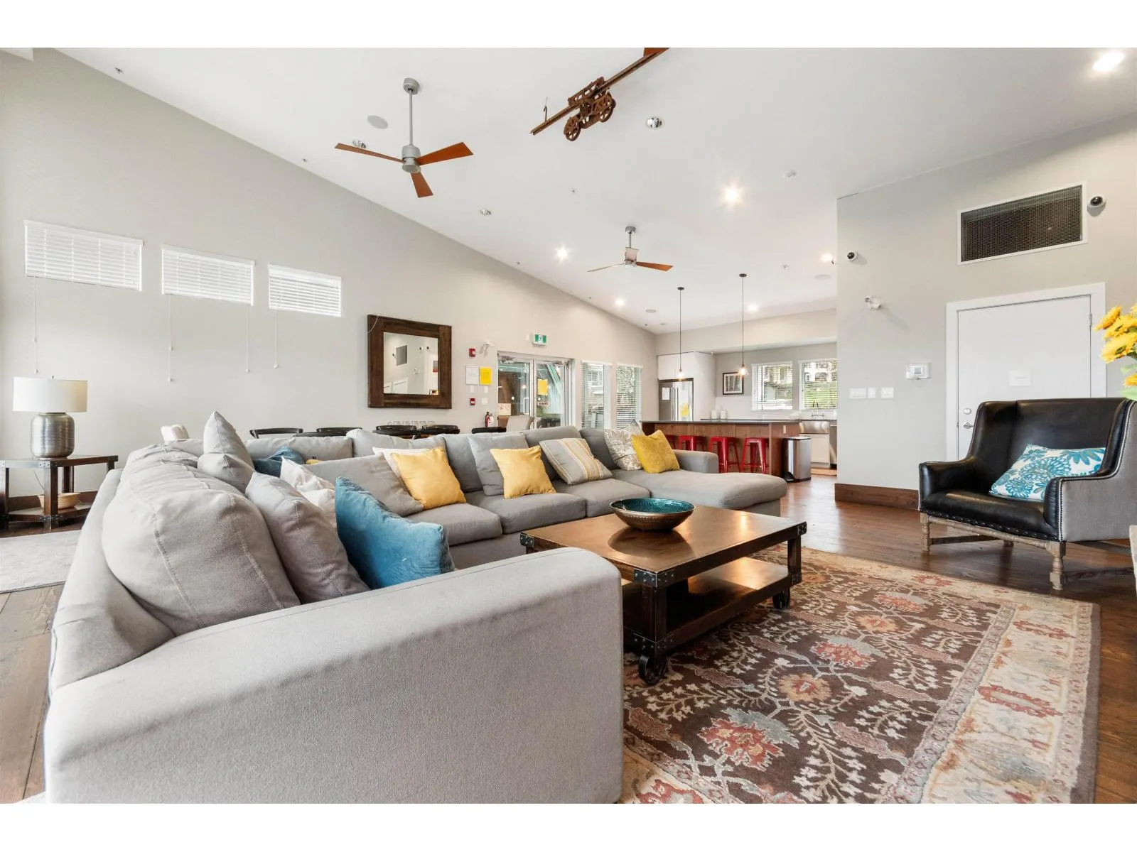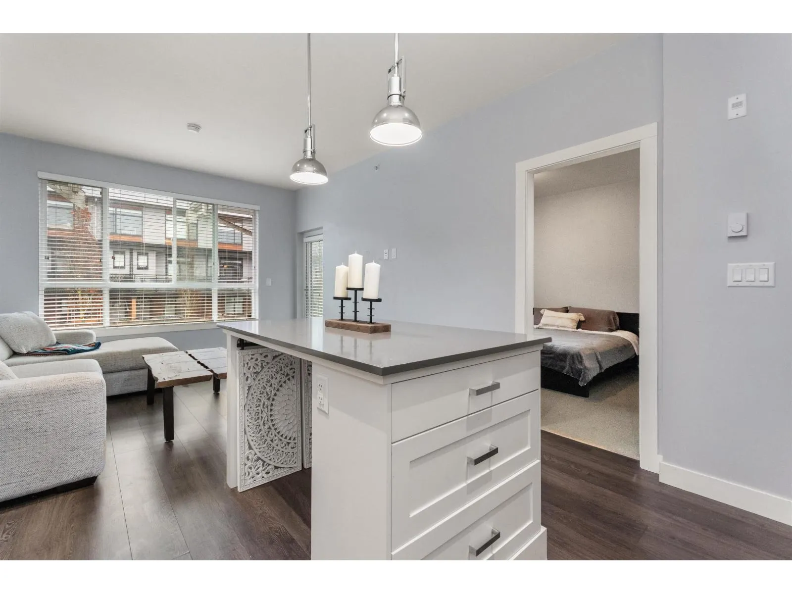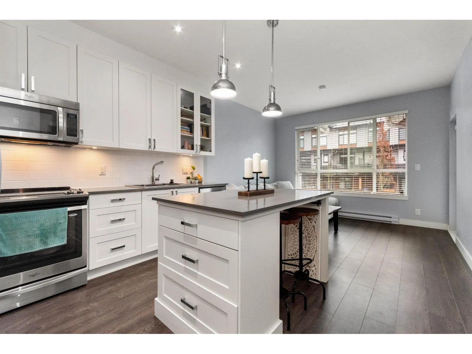Top floor 1 bedroom plus den, featuring two parking stalls and a storage locker! Enjoy a covered patio, a spacious living room and primary bedroom, and a versatile den perfect for a home office. The modern kitchen features stainless steel appliances and high-end finishes throughout. The amenities here are next level-a beautifully designed amenities building with a fully equipped gym, theatre room, and a gourmet kitchen. There is also a stunning second amenities hall ideal for hosting events or parties. Even better, the complex offers 3 guest suites available for owners to rent for a low cost! A fantastic opportunity in one of Cloverdale's most desirable communities, The Ridge at Bose Farms. (id:27476)