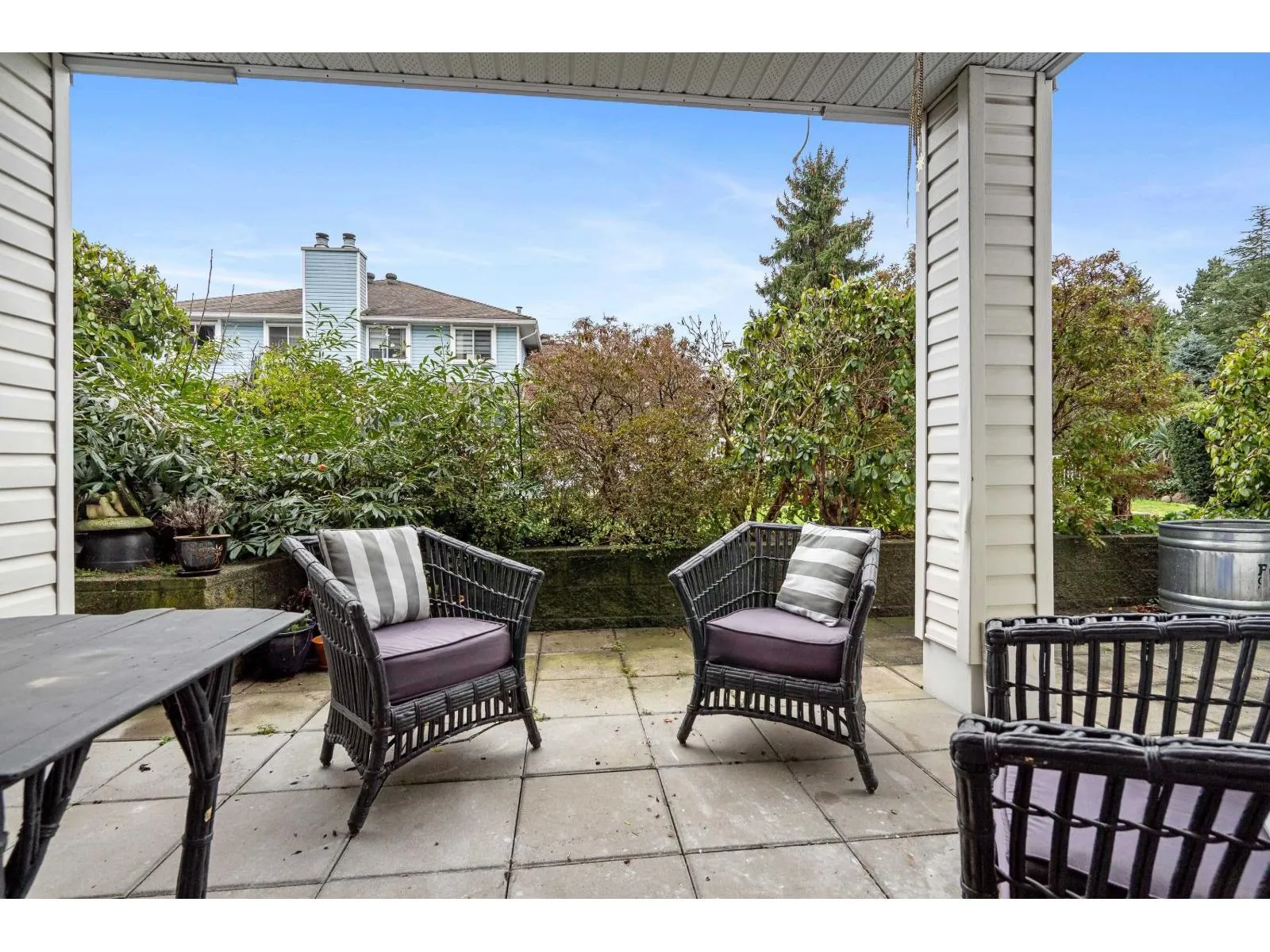 Large 2 bedroom/2 bath condo at Tudor Park In East Newton. Over 1200 square feet on the ground level and walk out to your private quiet patio looking out to the south facing garden area. Good size kitchen w/granite counters, stainless steel appliances. Extra large living room and separate dining space. Cozy gas fireplace w/ gas included in strata fee. Very well maintained complex with resort living amenities: outdoor swimming pool, hot tub, exercise centre, tennis courts, party room and guest suite. Walking distance bus routes and Newton Town centre. (id:27476)