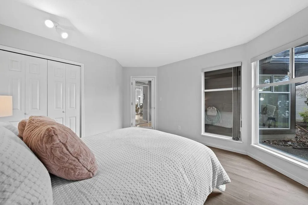 Welcome to PONDEROSA, a highly sought-after gated community in the heart of Fleetwood. This well-maintained townhome offers over 1,900 sq ft of thoughtfully designed living space. The main level features a bright family room, a well-appointed kitchen with a skylight that fills the space with natural light, and a dedicated dining area with access to a private patio. Also on the main floor are a generous bedroom, laundry room, full bathroom, and a separate living area ideal for entertaining. Recent updates include new laminate flooring throughout and a new heat pump, providing efficient year-round comfort. Upstairs, you'll find two spacious bedrooms, including the primary suite with a full ensuite and access to a partially covered private sundeck. Walking distance to schools, parks, and more (id:27476)