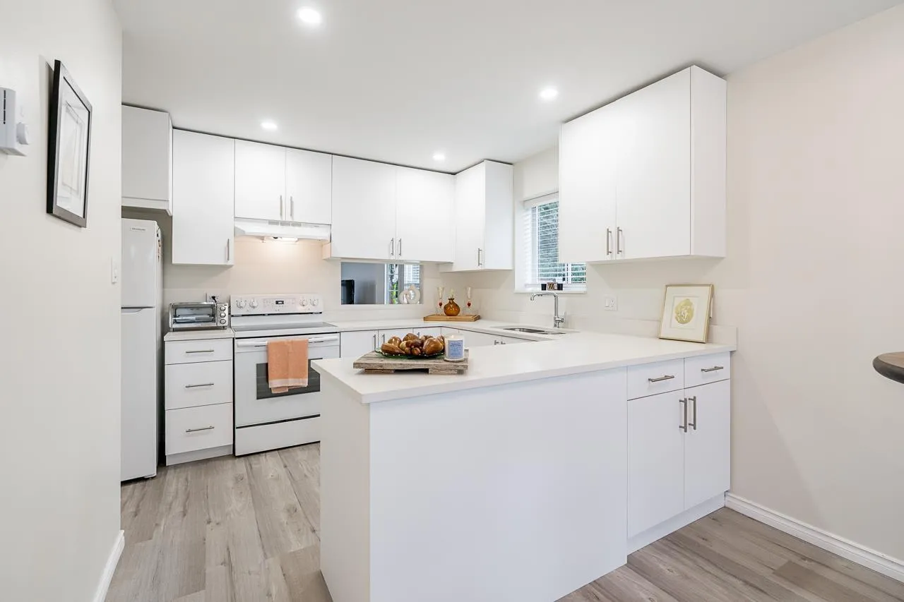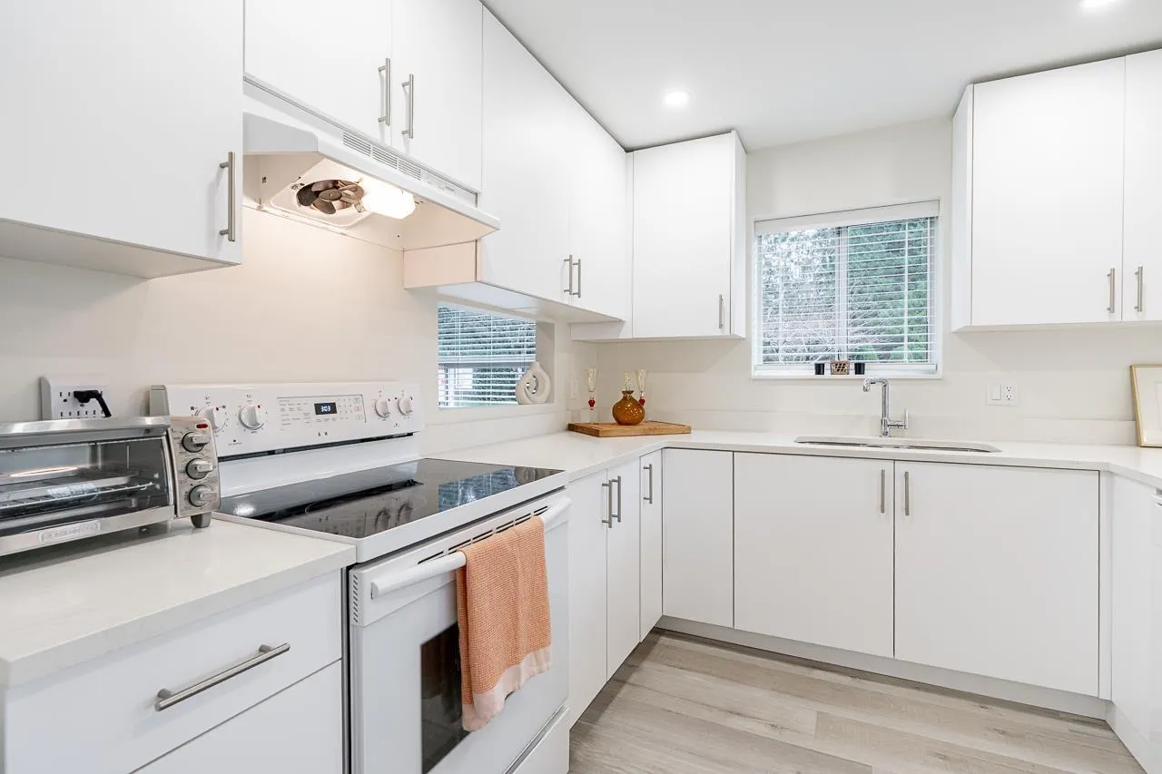 A Rare & unique Find! This immaculate end unit townhouse in the gated 55+ Charleston Green community is the largest in the complex and features a second private driveway right at your door beside the single car garage - feels like a detached home. Quiet, private and safe, this lovely home features the Master Bedroom on the main level (with a full ensuite and a walk in jetted tub). With an open concept this home has large windows making it very bright. 40k in Renos include new kitchen, vinyl flooring throughout, freshly painted, new blinds & new baseboard heaters. The spacious Dining & Living Room (with gas fireplace) open onto a private patio with a little garden area. Central Location Close to Costco, shopping, parks etc. Private and quiet location... one of the best spots in Surrey, local traffic only. Bonus 2 large storage areas. Open House Sat Jan 24th 3-5pm (id:27476)