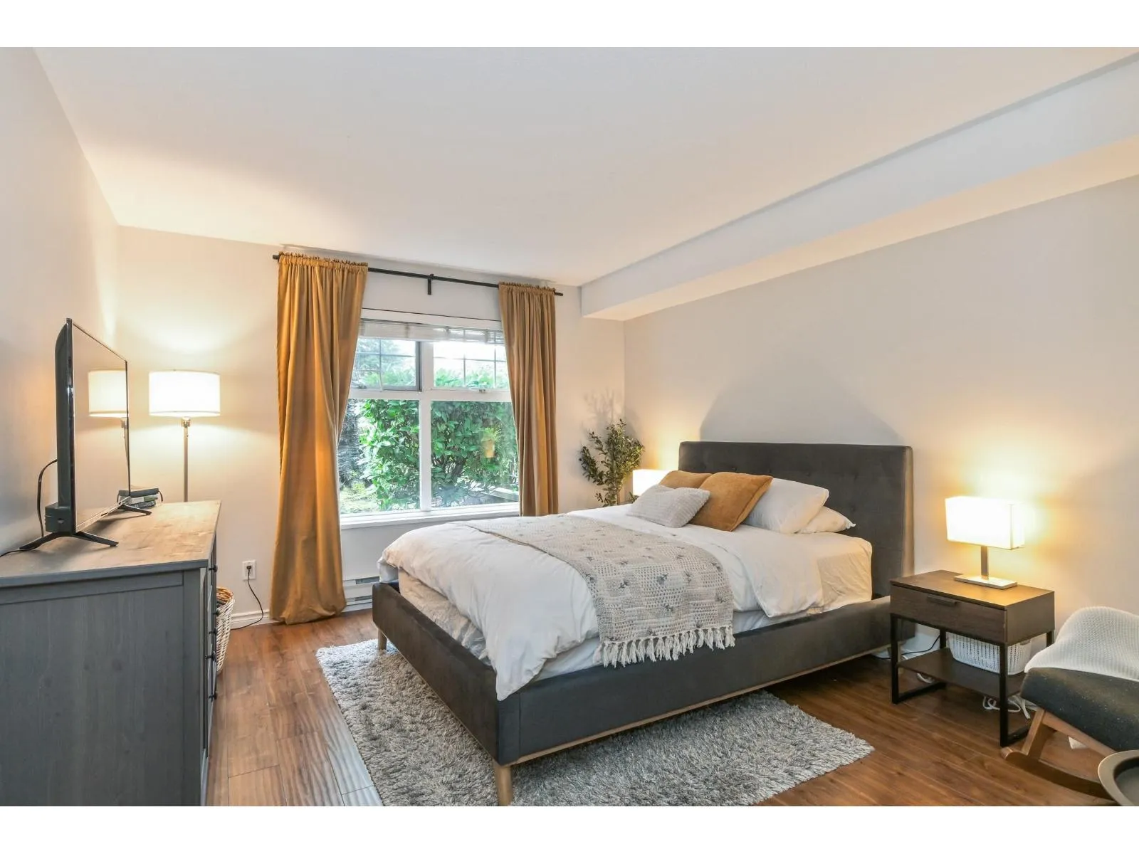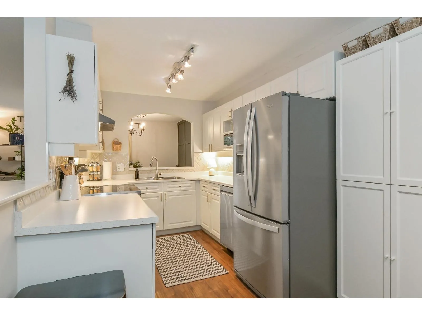 VERY WELL MAINTAINED AND HIGHLY SOUGHT AFTER LOCATION. Spacious, contemporary Two Bedroom, Two Bath, Main Floor Corner Suite nestled in the heart of Fleetwood. Minutes walk to Parks, Sky Train, Library, Community Centre, Leisure Centre & Schools. Updated Kitchen w/pass through, newer stainless steel appliances. Upgraded Ensuite w/Quartz countertops and ceramic sinks. Large Primary Bedroom w/walk-in closet. Wood tone laminate flooring throughout. Freshly painted with neutral tones. BRIGHT OPEN FLOOR PLAN. South-facing back yard with walkout Patio. Low monthly utilities. Close to 3 underground Parking Stalls and Storage Locker. PERFECT FOR FAMILIES. Highly Attentive Strata Council and Property Management; Healthy Contingency Reserve Fund. Sellers are related to Listing Agent. (id:27476)