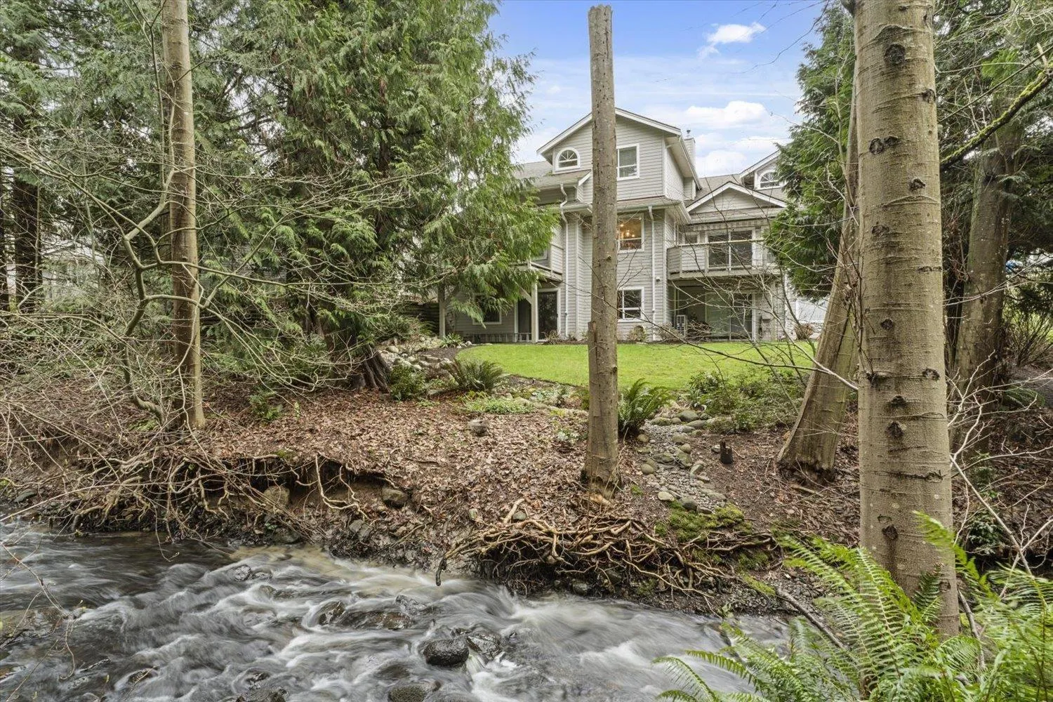 First time on the market in almost 30 years! If you're looking for a townhouse that feels like a house, welcome to a gorgeous home at Westwinds. This 3 storey townhouse has been recently renovated and backs on to serene Carlson Creek and a quiet greenbelt of mature trees. Featuring 2 bedrooms plus a den that could easily be a third bedroom, 4 bathrooms, including a luxurious primary suite with ensuite bath that feels like a hotel, a gourmet kitchen with a farmhouse sink and banquette seating that over looks the creek, a bright living room with a gas fireplace, a cozy family room right off the kitchen, AND a fully finished walk out basement with a large rec room with a wet bar and more. Plus there is plenty of parking in the double garage. (id:27476)