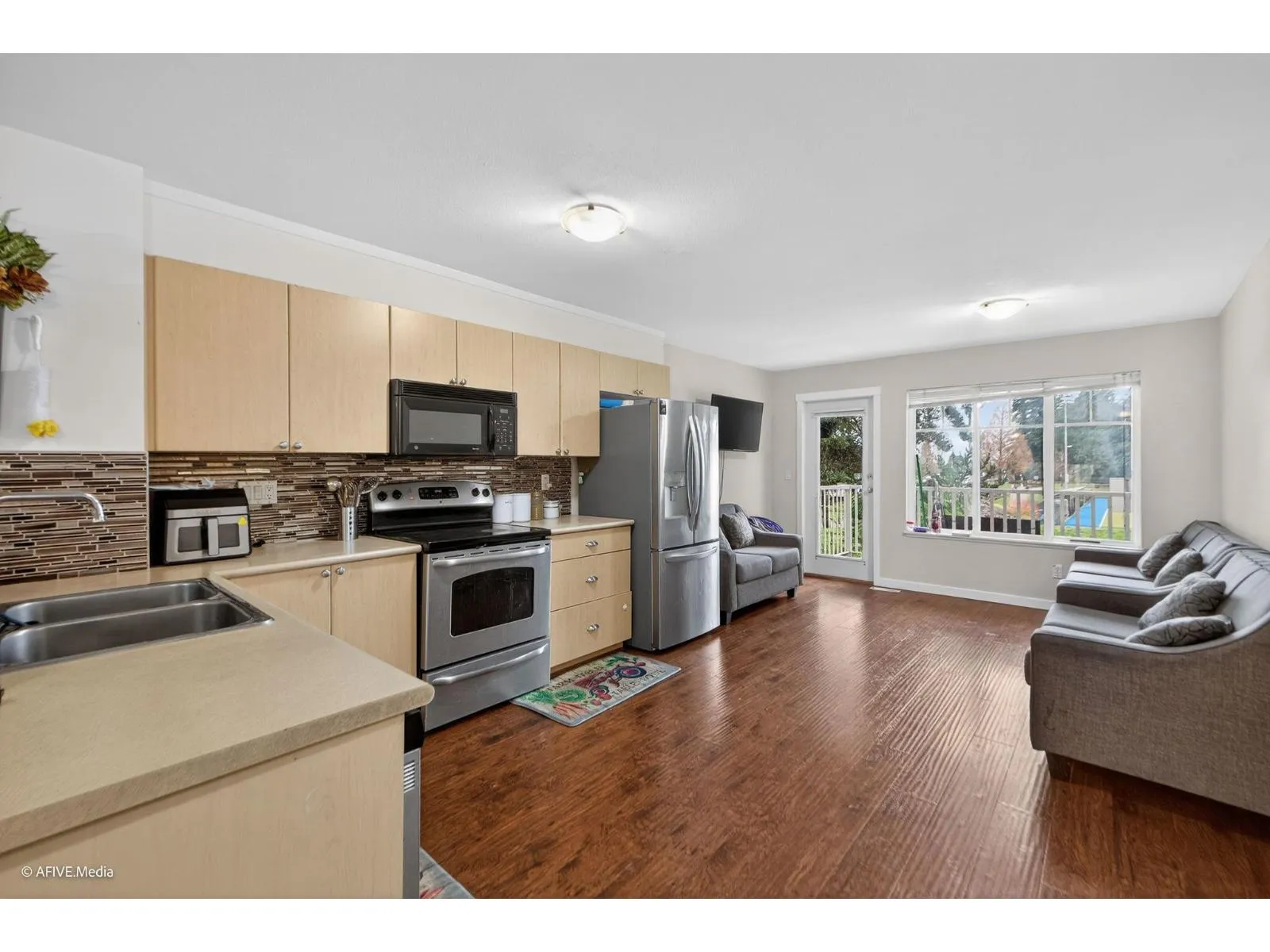 Welcome to this beautifully laid-out townhouse offering space, comfort, and an unbeatable location. Featuring 3 bedrooms and 2 full bathrooms, the home boasts a HUGE primary bedroom plus two additional generously sized bedrooms. The main floor is perfect for everyday living and entertaining, with both a bright living room and a separate family room, a dedicated dining area, and a functional kitchen. Step out from the family room onto a balcony overlooking a very decent-sized backyard that backs directly onto Tamanawis Park. Recent updates include a new hot water tank, new laminate flooring, and fresh new paint throughout. Centrally located with easy access to shopping, parks, schools, transit, and major routes, this home truly checks all the boxes. (id:27476)